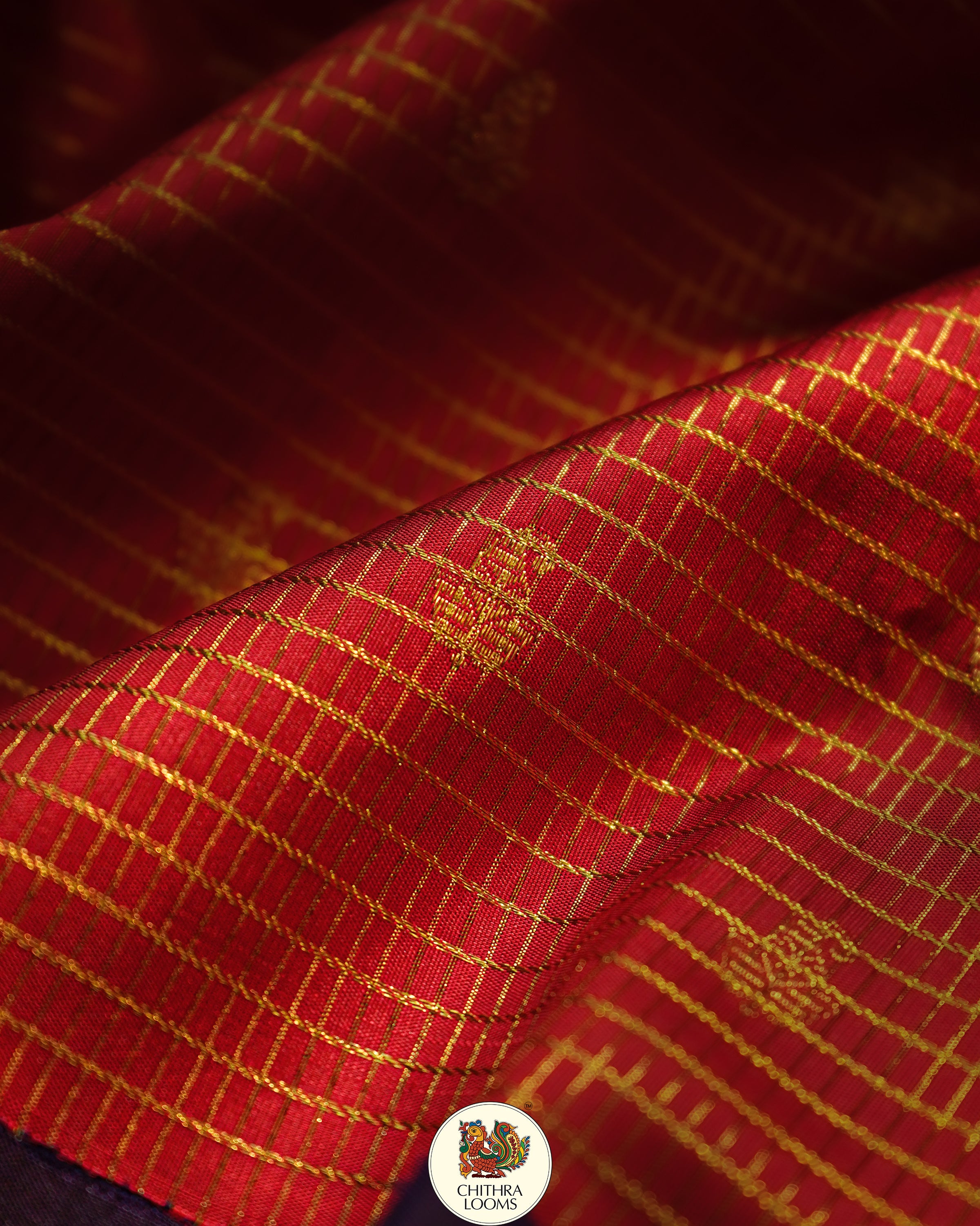 The saree is absolute stunner a v old vintage inspired thick Zari Kattam in milaga palam (chilli) red with paisley woven motifs in Adai and the borders is naaval pazha border old style paimadi Kamalam and Beñaras pet and Palla all woven in pure Zari and blouse