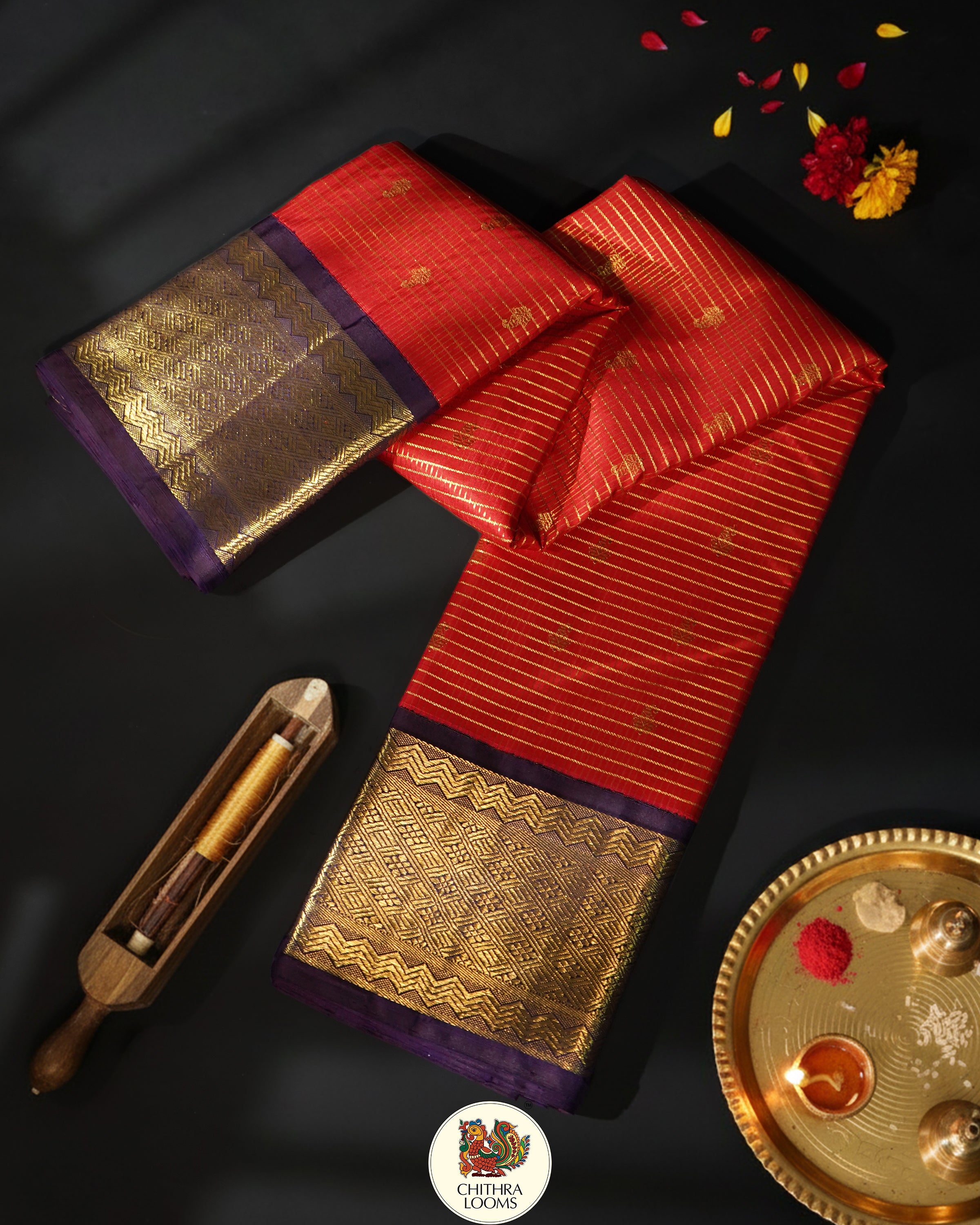 Rare find vintage inspired Korvai Zari Kattam kanjipuram silk.