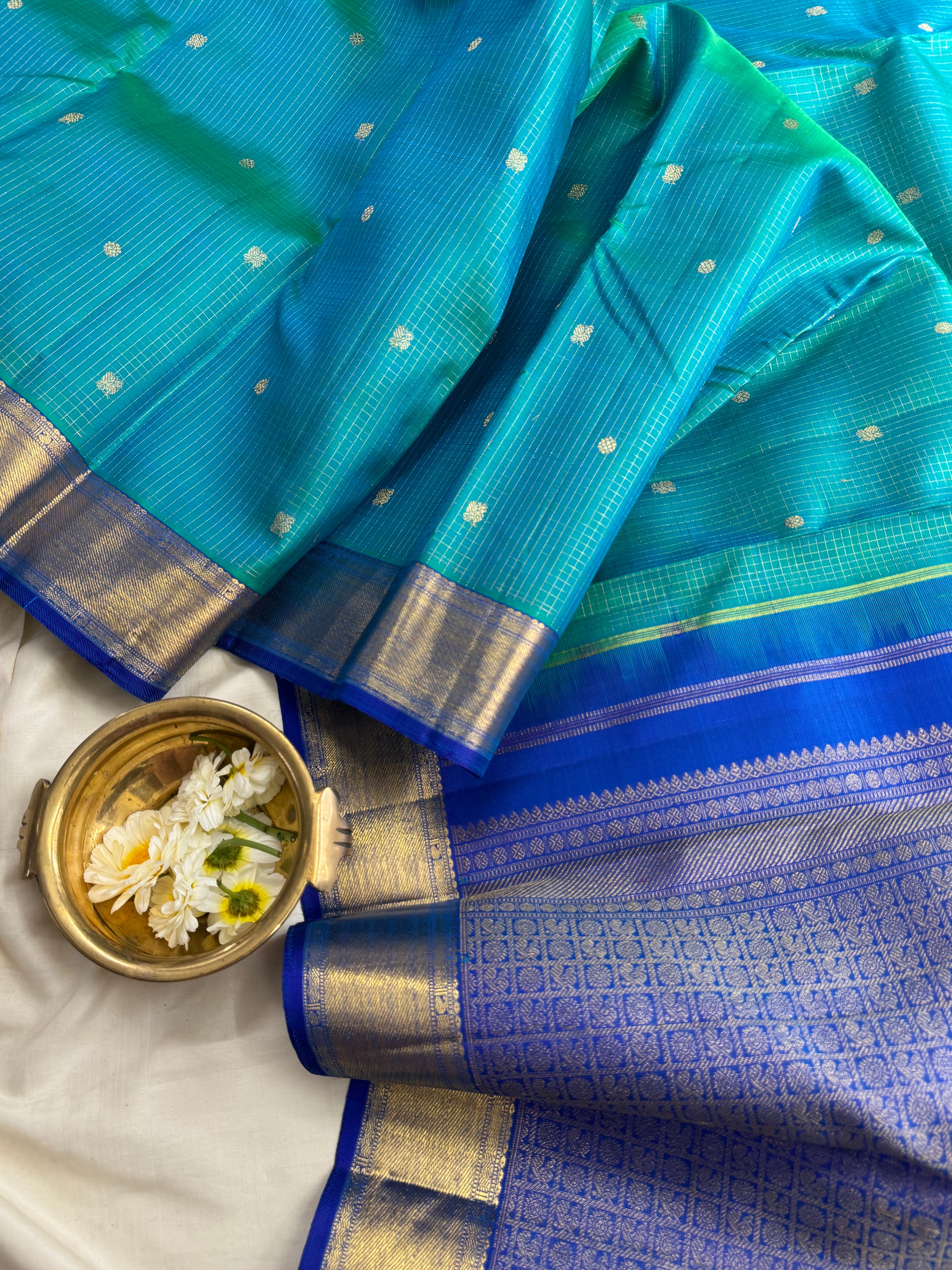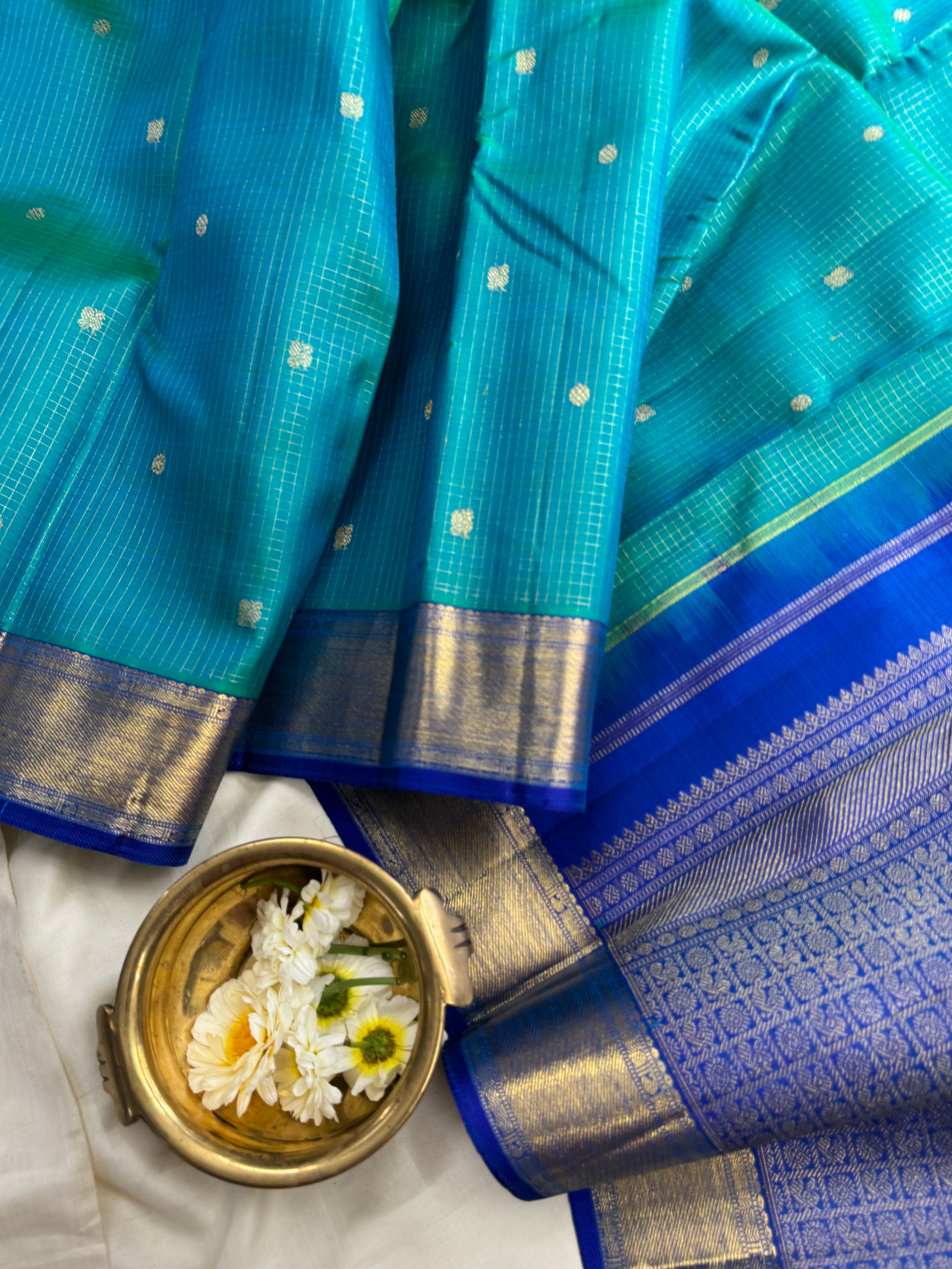 Sea blue zari kattam / kanjipuram silk