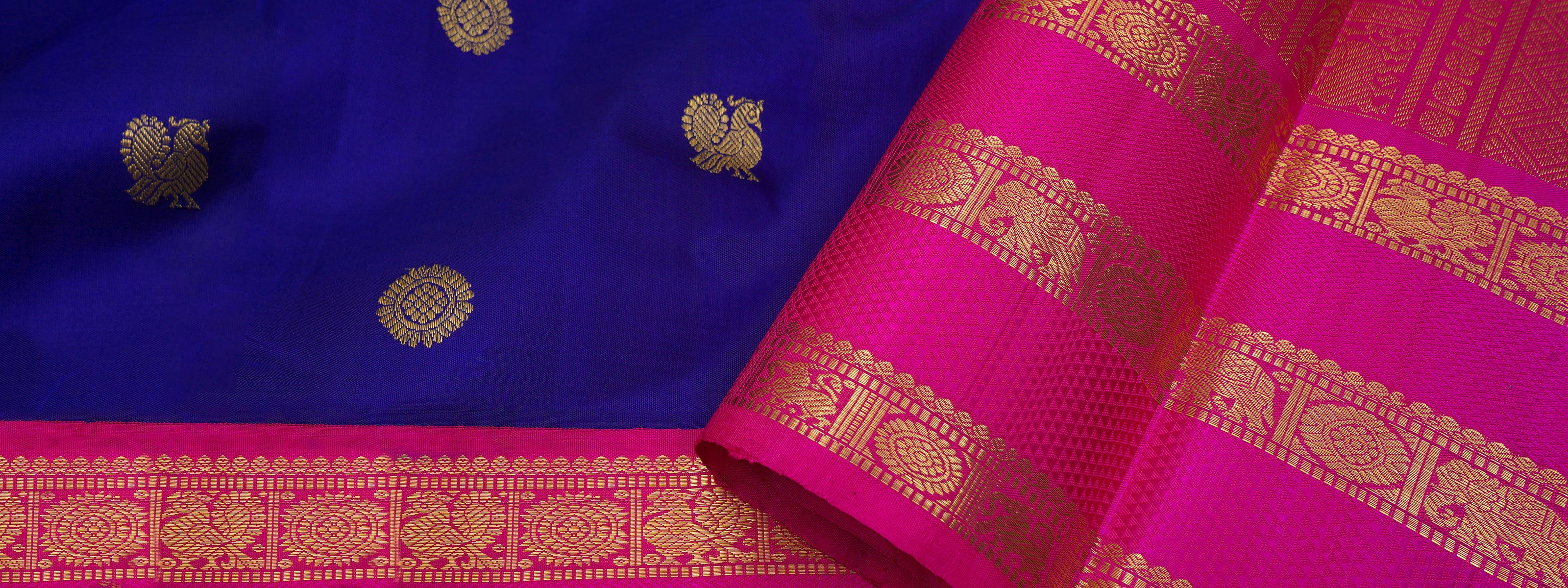Orange and blue morning and evening border / Gadwal Silk CLSA4141