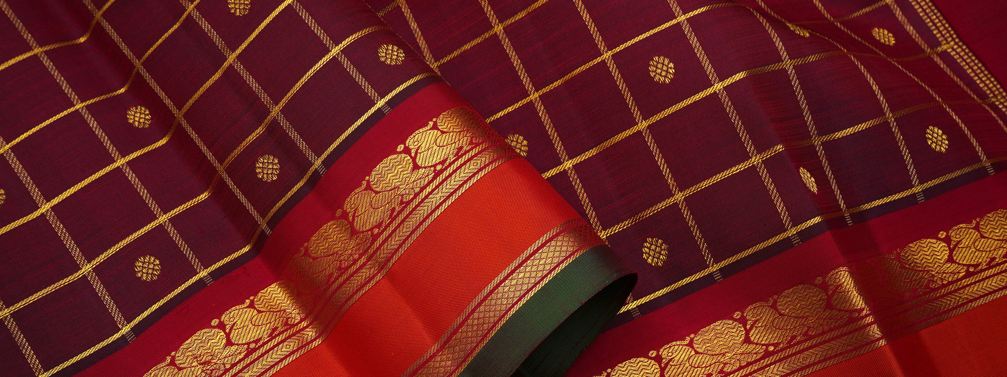 Grey and brown checked border / Kanjipuram Silk