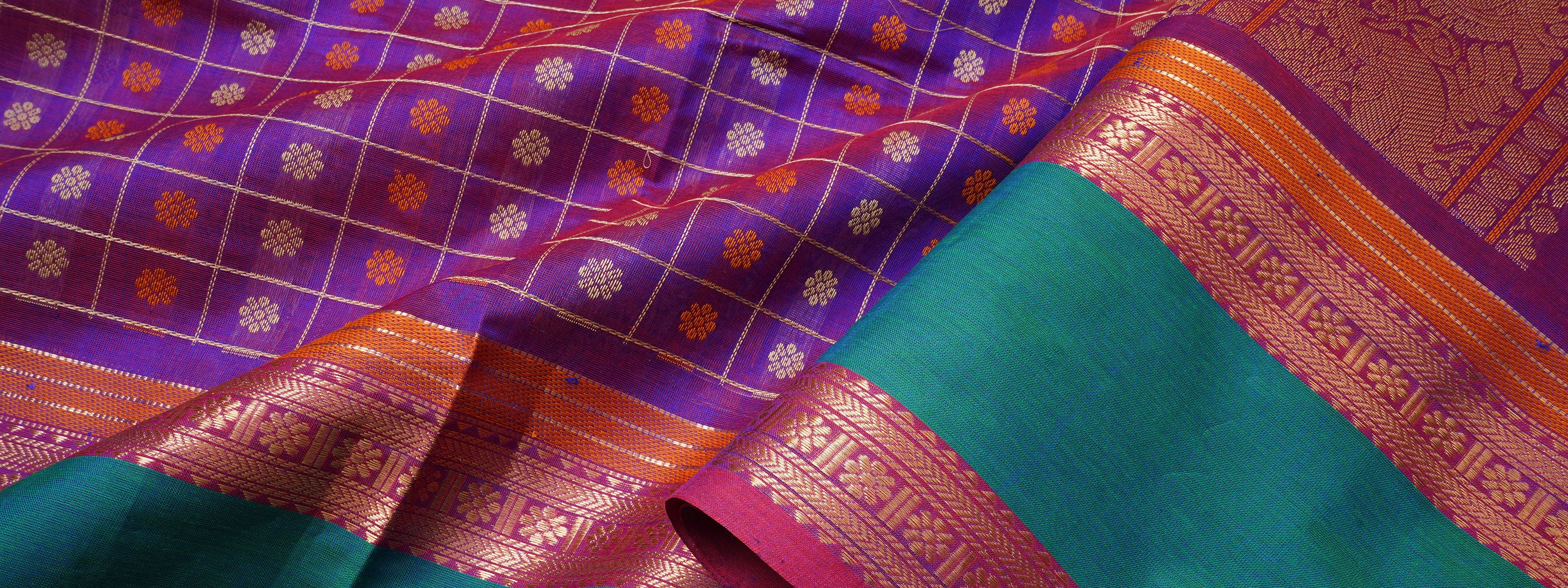 Purple and turquoise blue morning and evening border/ Gadwal Silk CLSA4142