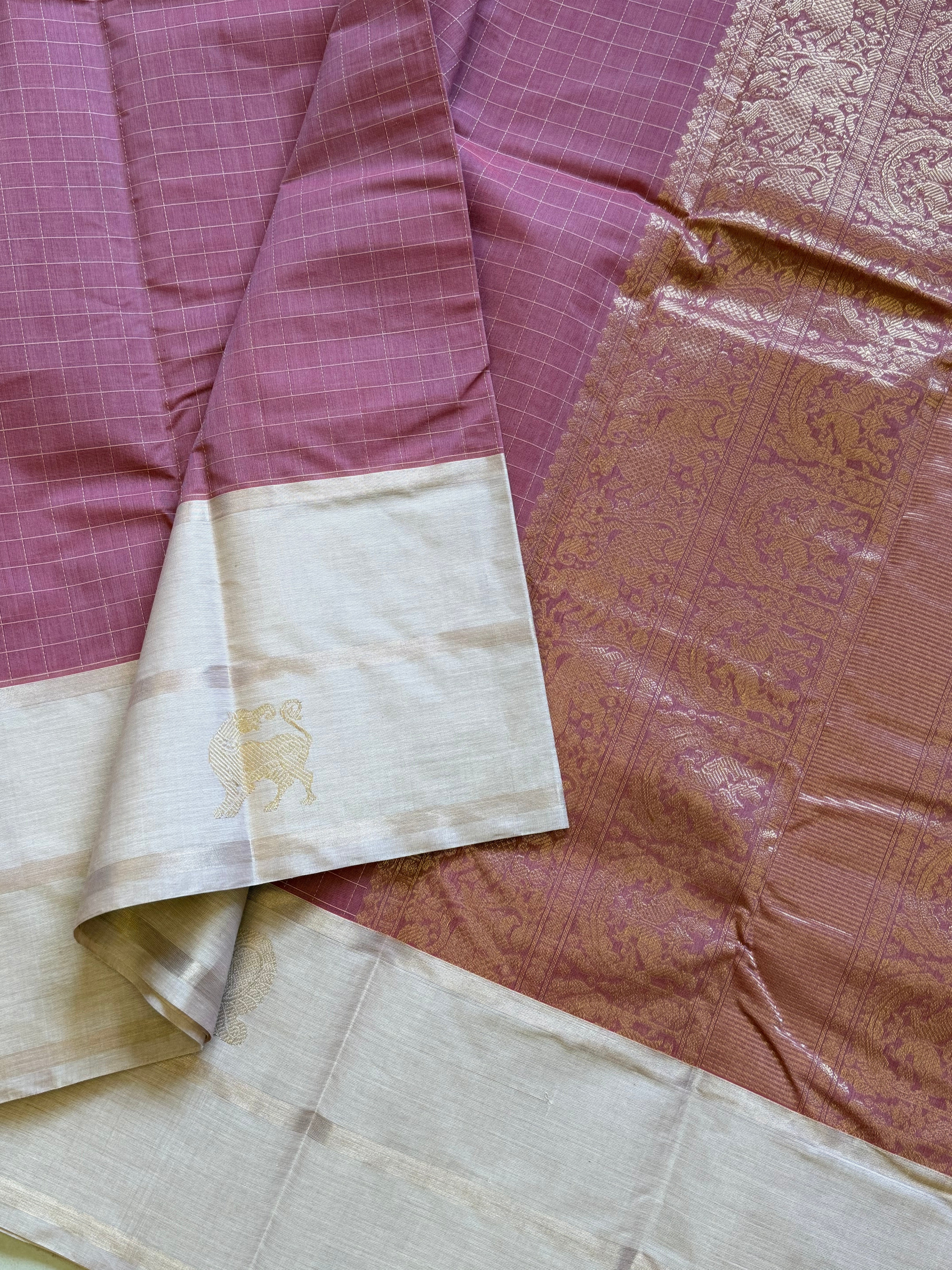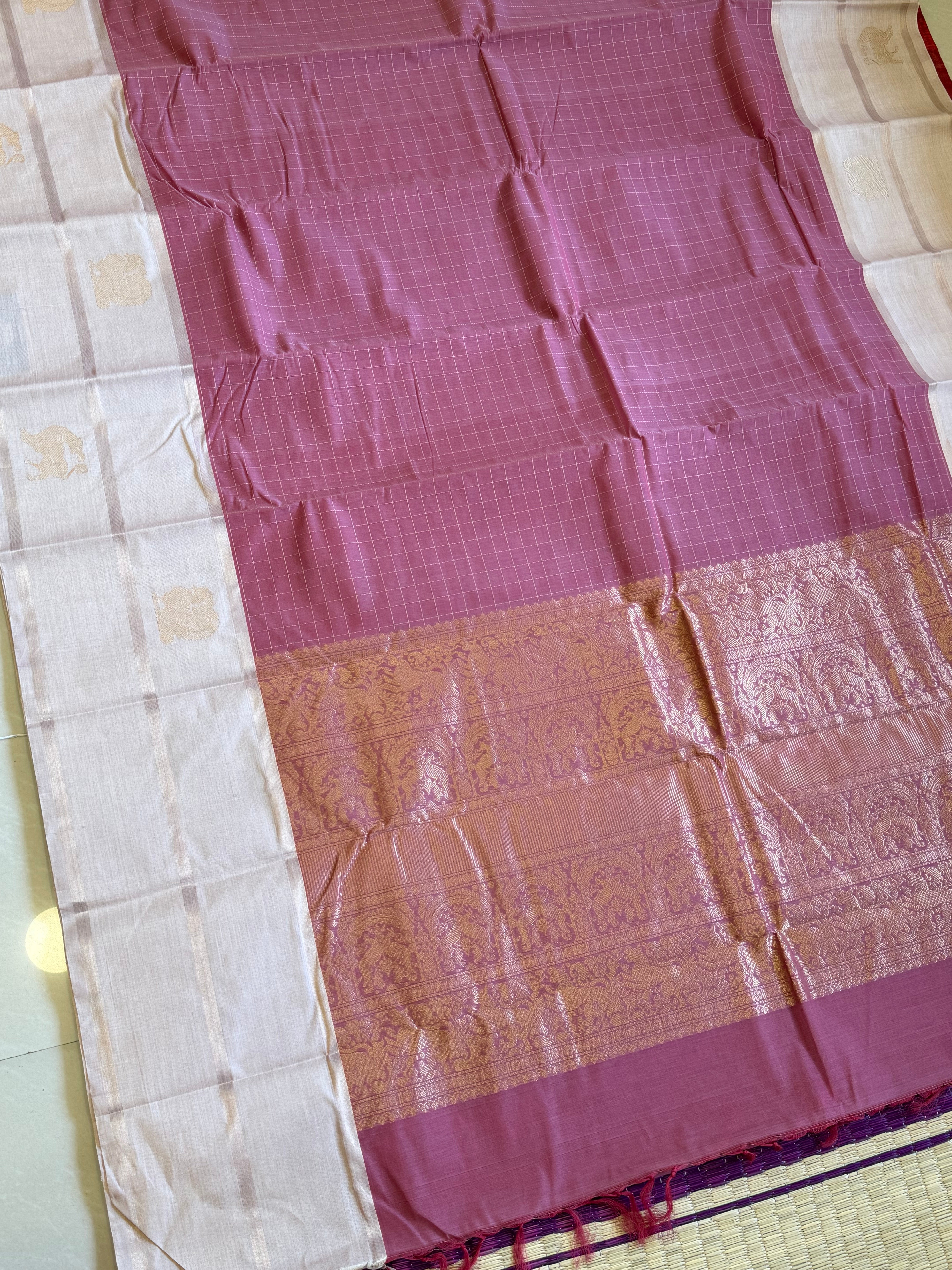 Mauve pink Zari Kattam star Butta / kanjipuram silk