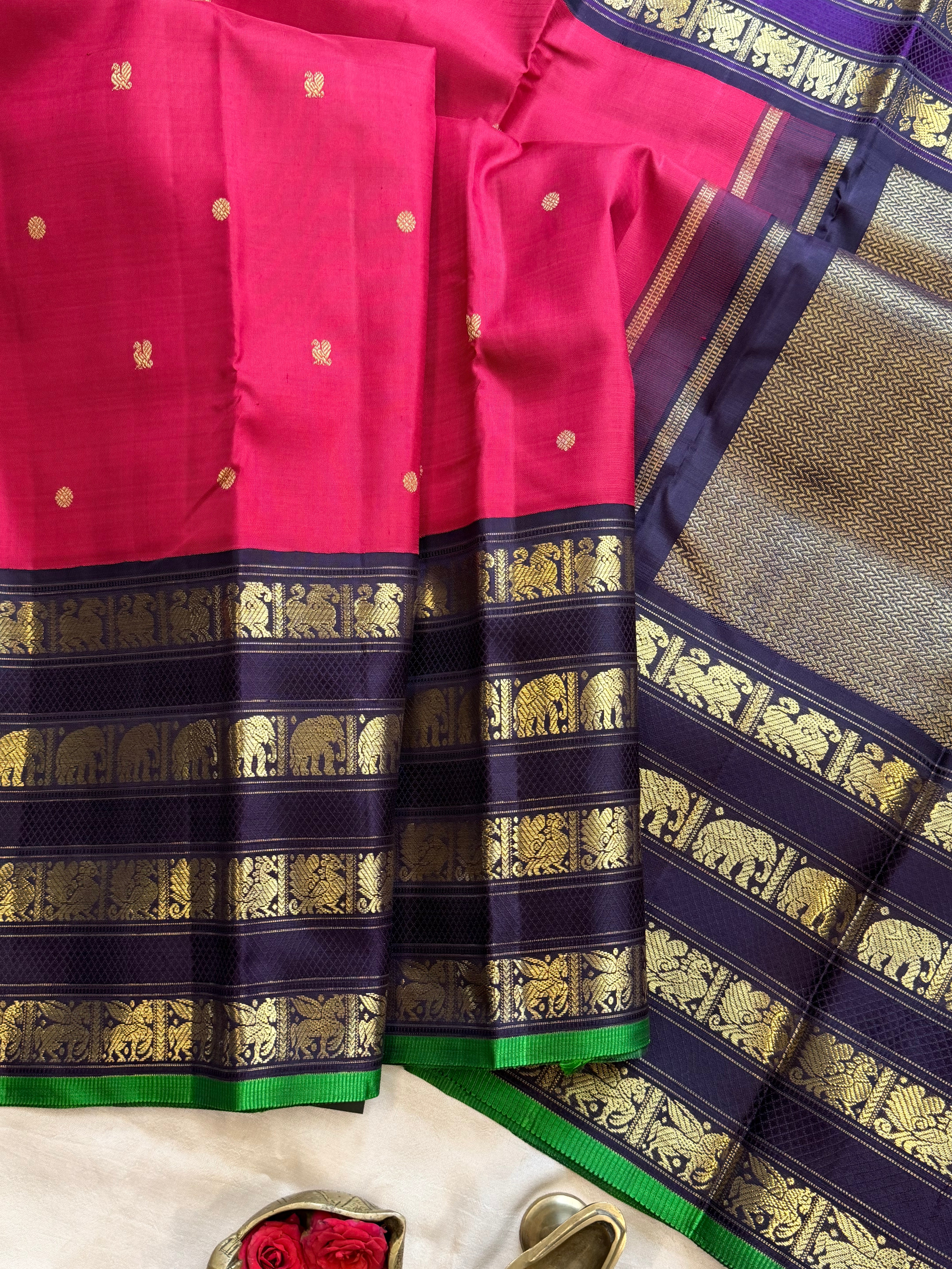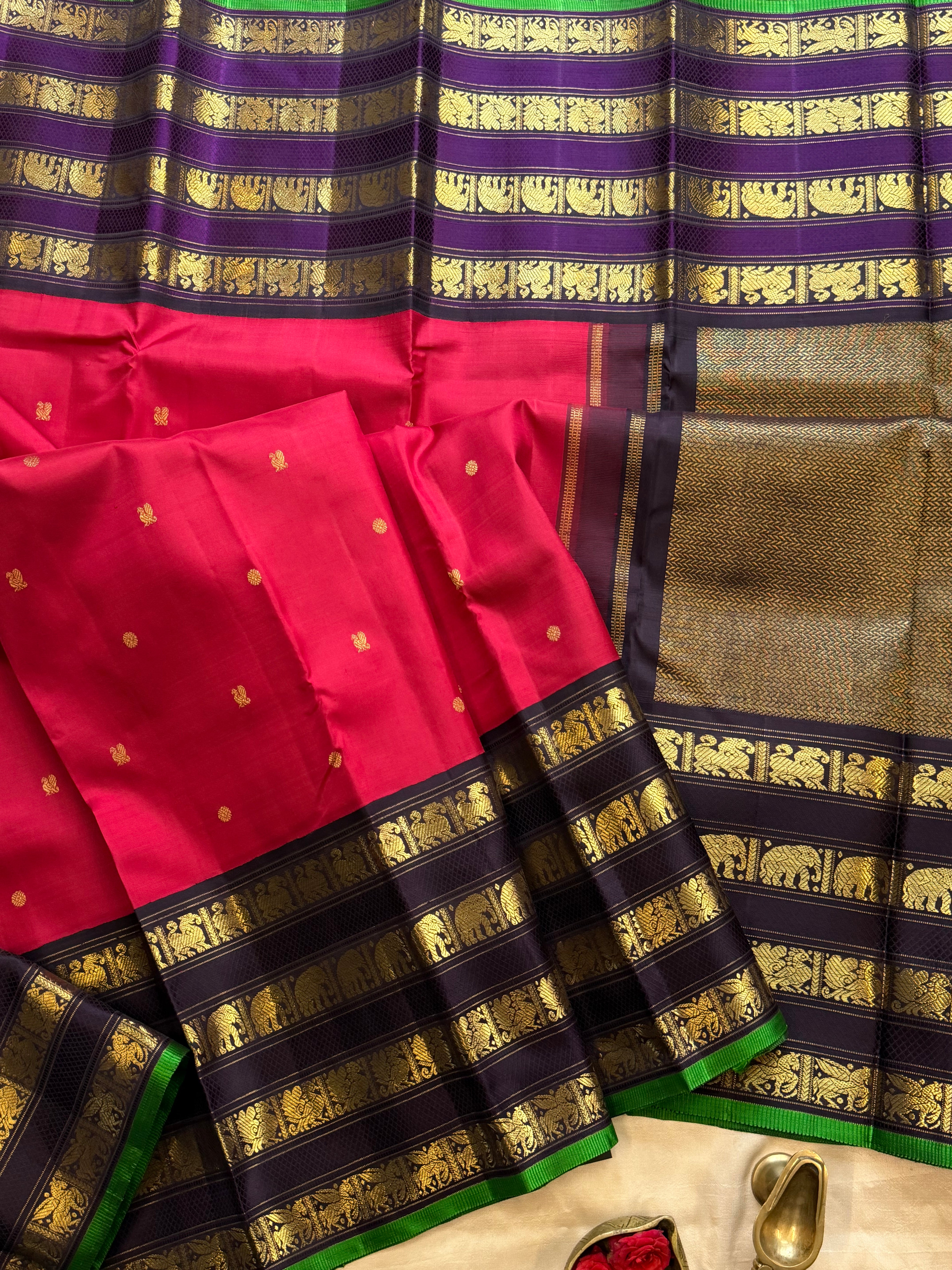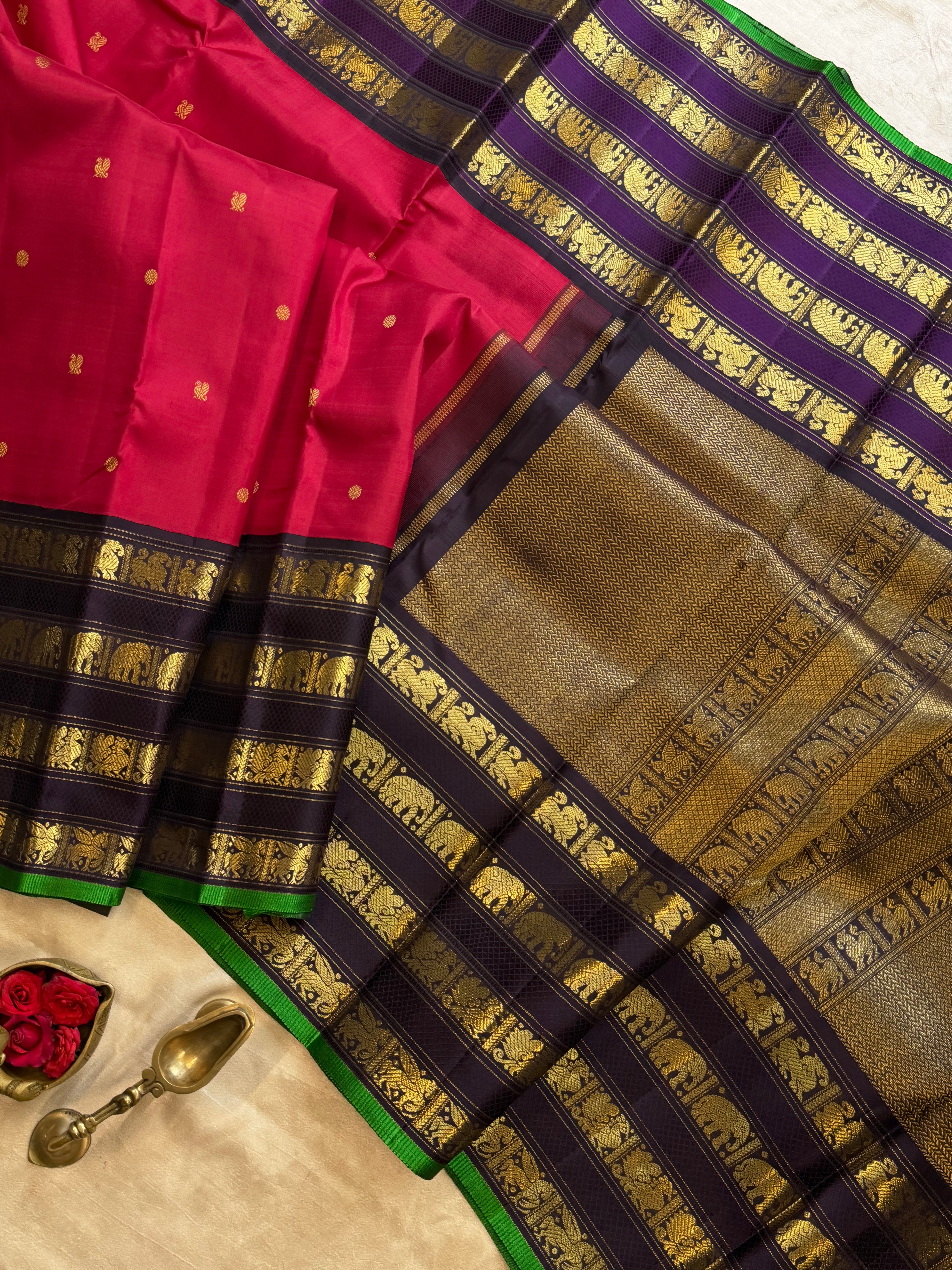Beeetroot colour parrot Butta Korvai / kanjipuram silk