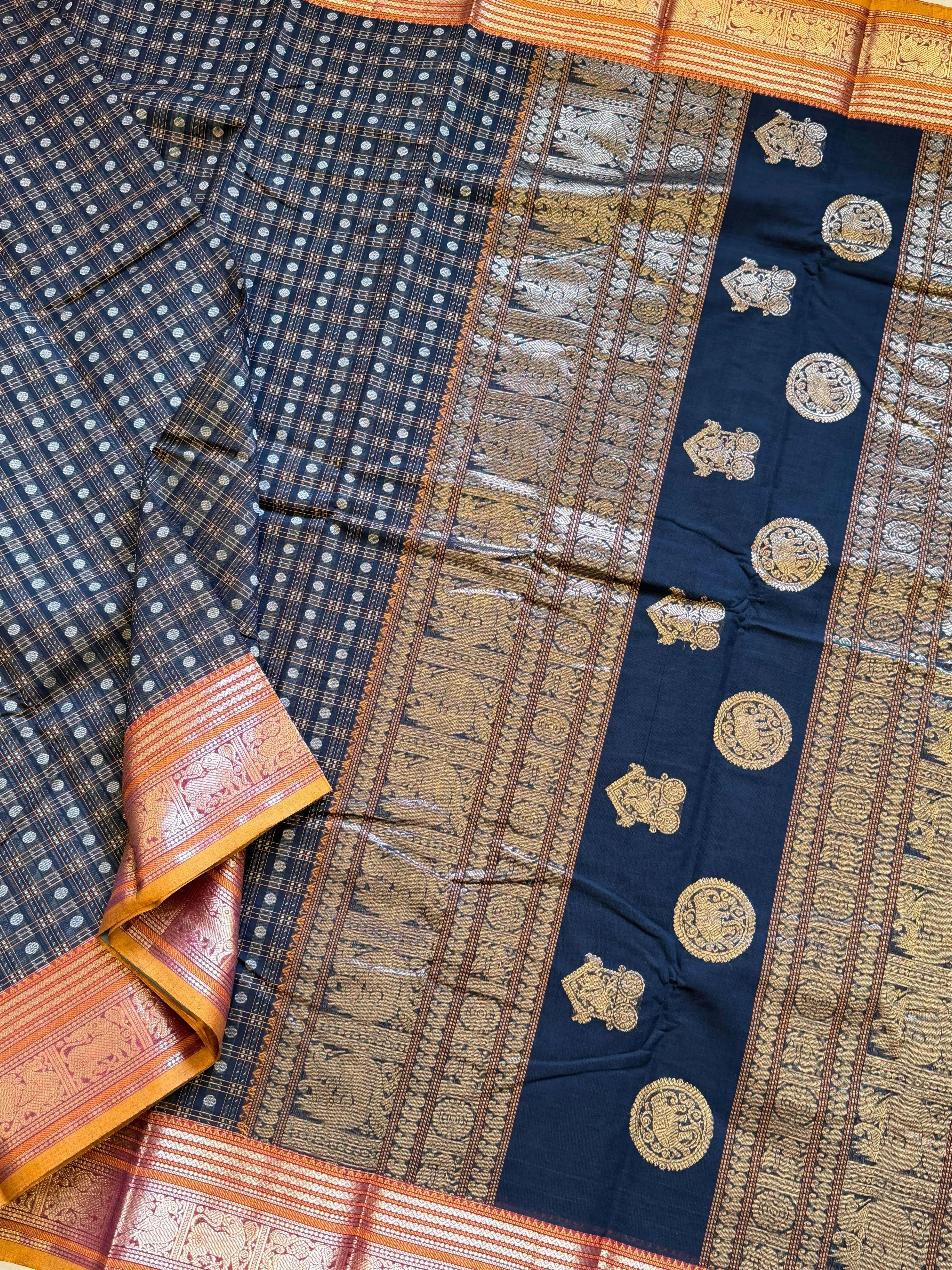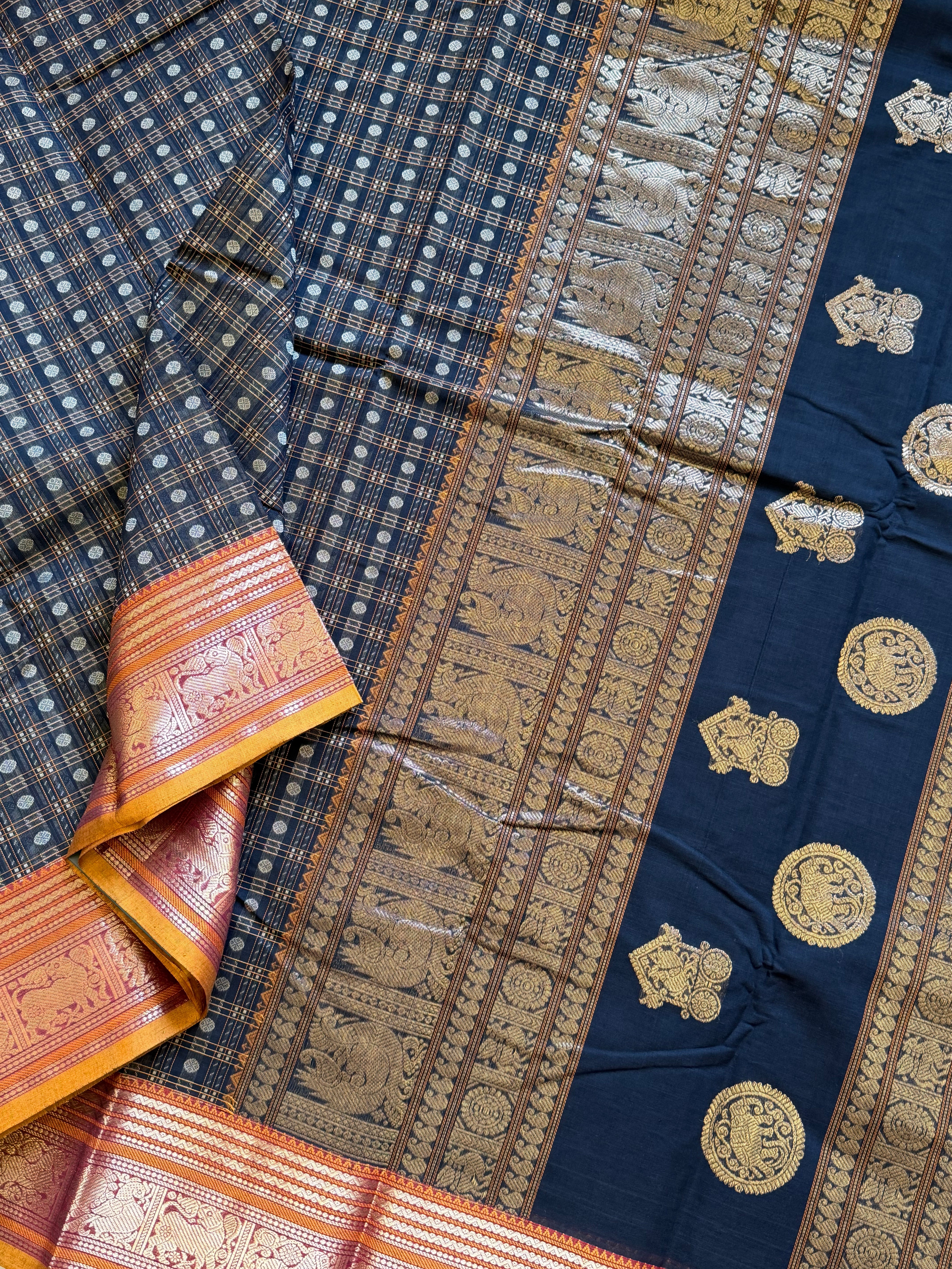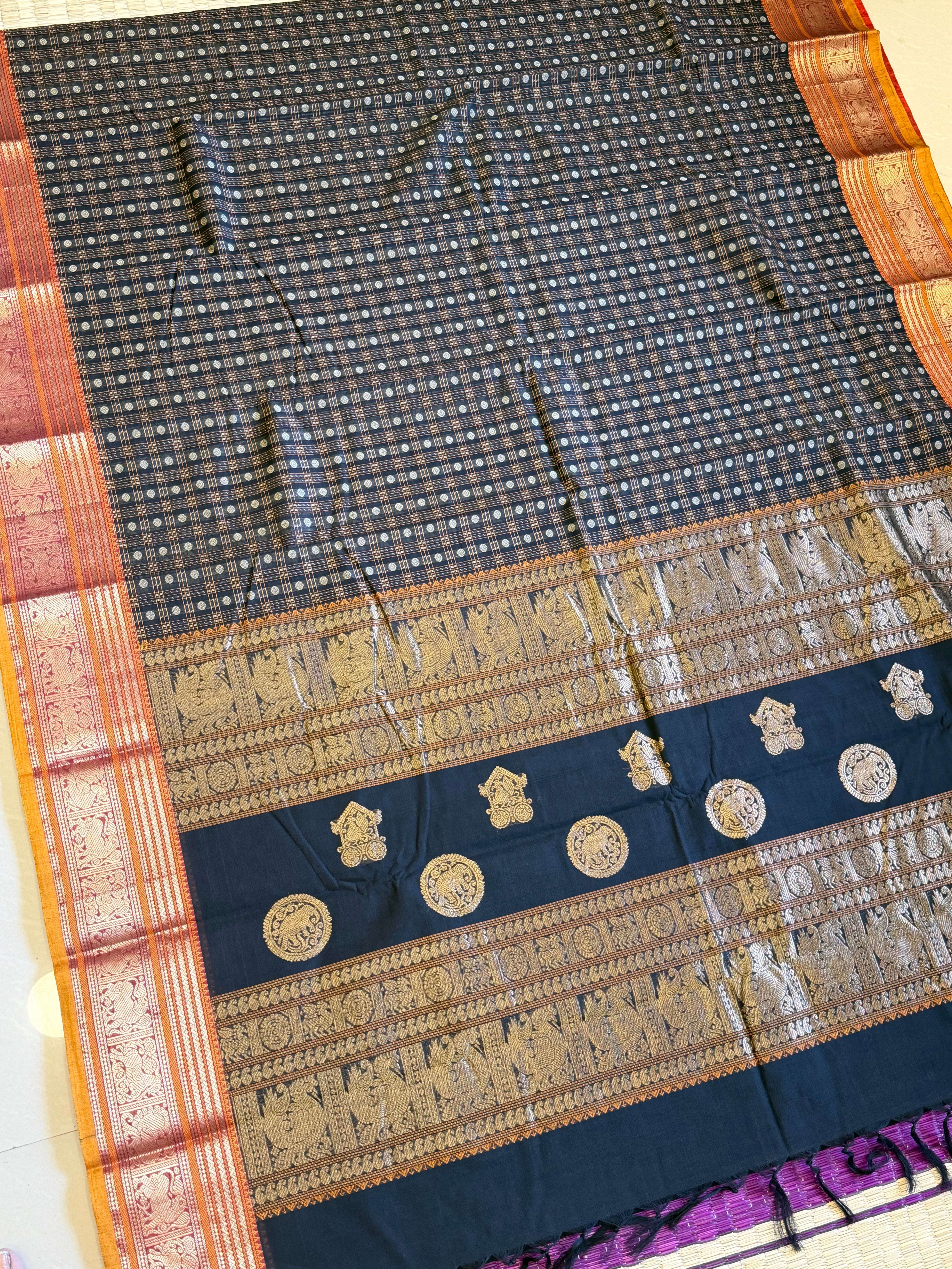 Black Zari pet round Laksham Butta / Kanchi cotton