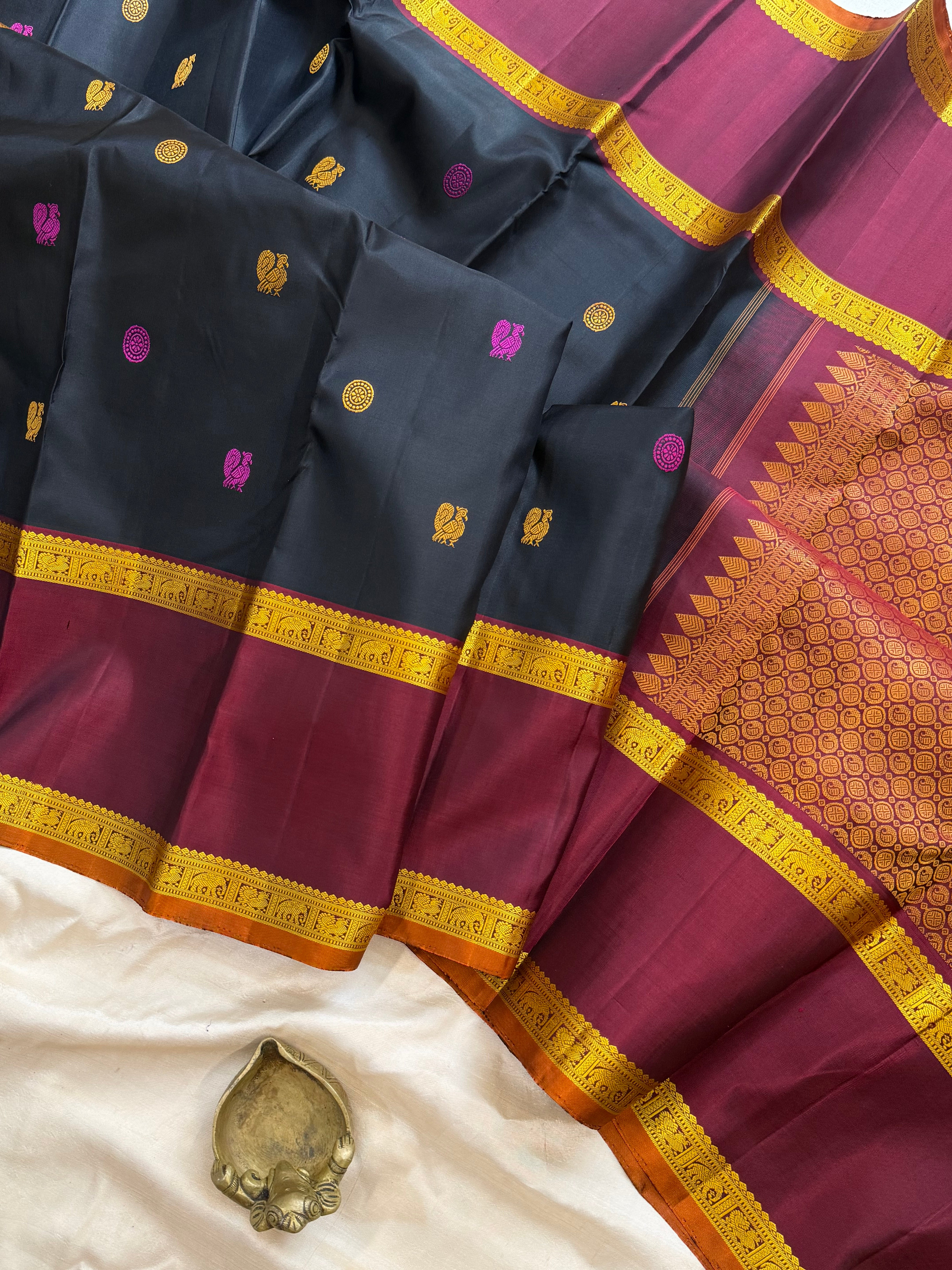 Black meenakari butta kaal erangina border/ kanjipuram silk