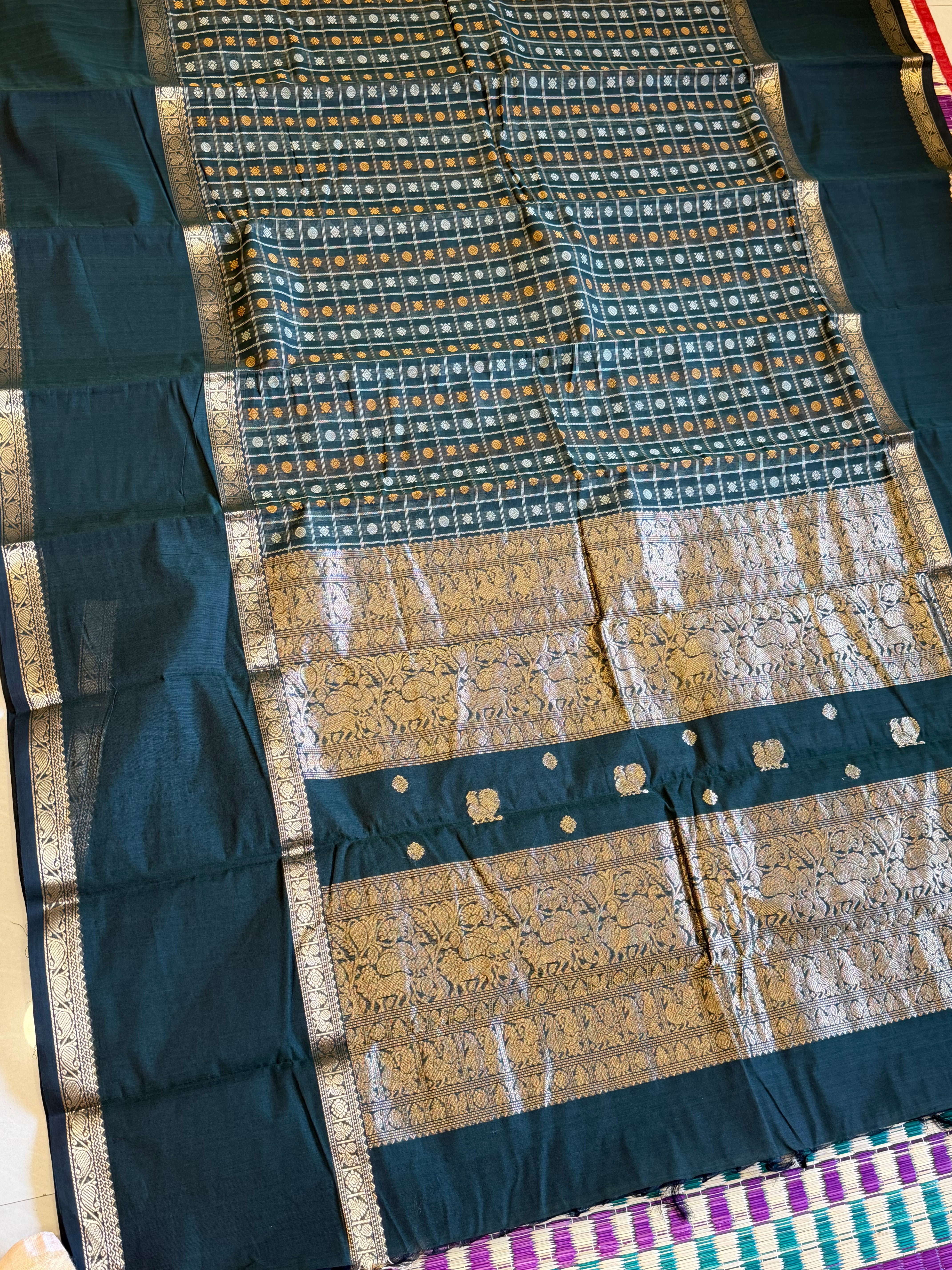 Dark green 1000 Butta Long border / Kanchi cotton