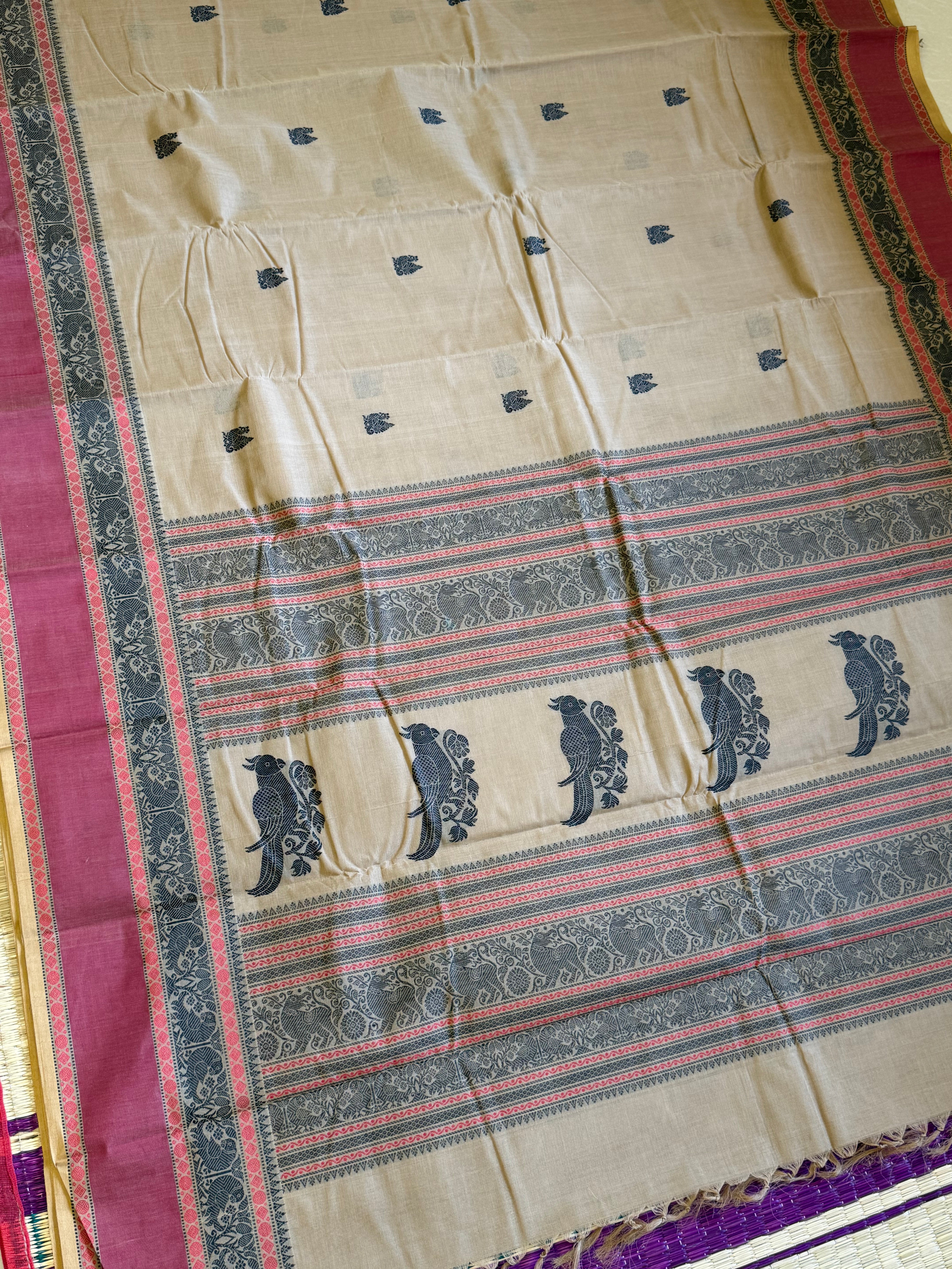 Cream off white Jodi peacock pet / Kanchi cotton