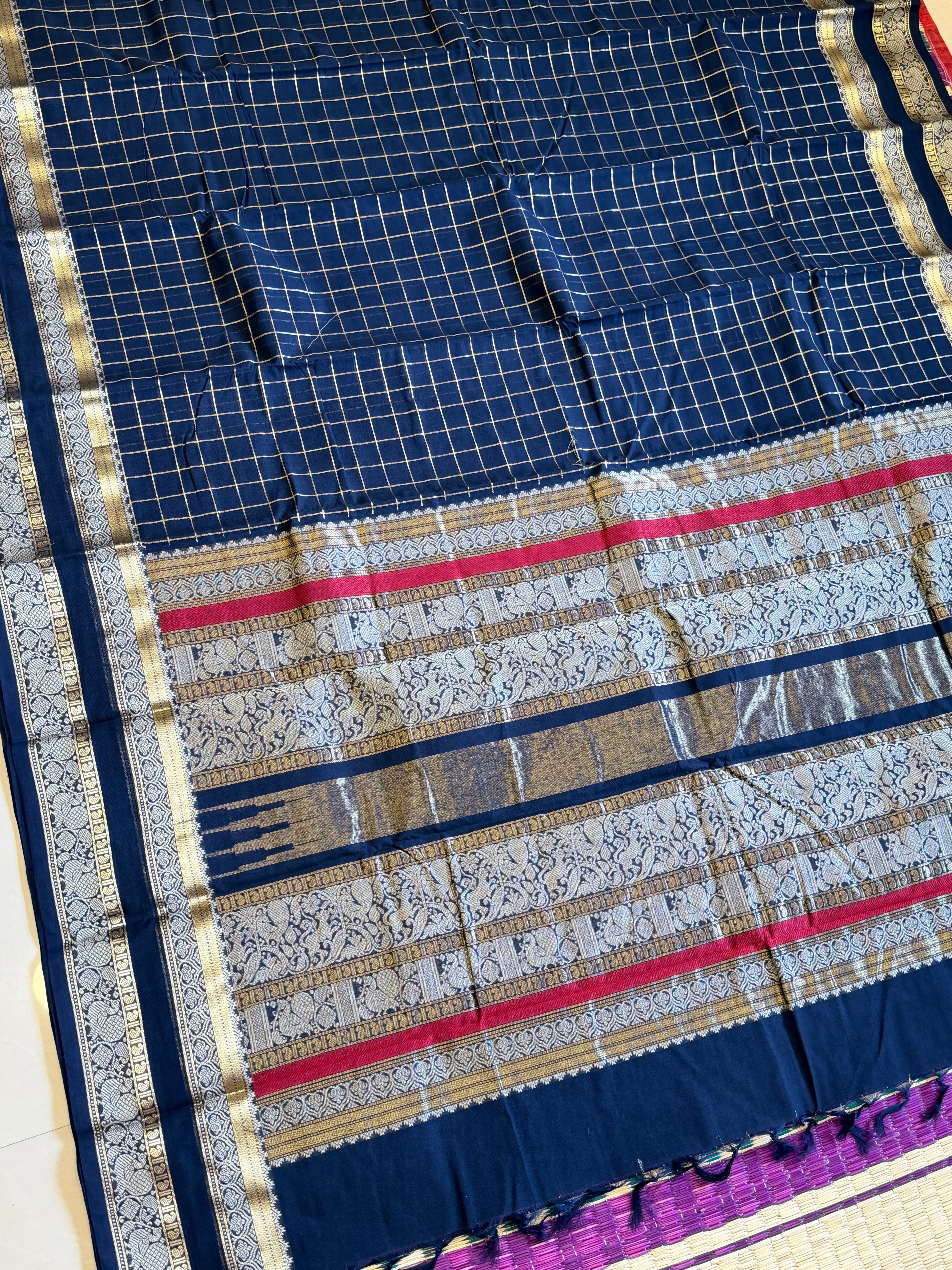 Dark navy blue cotton body - Araku silk border