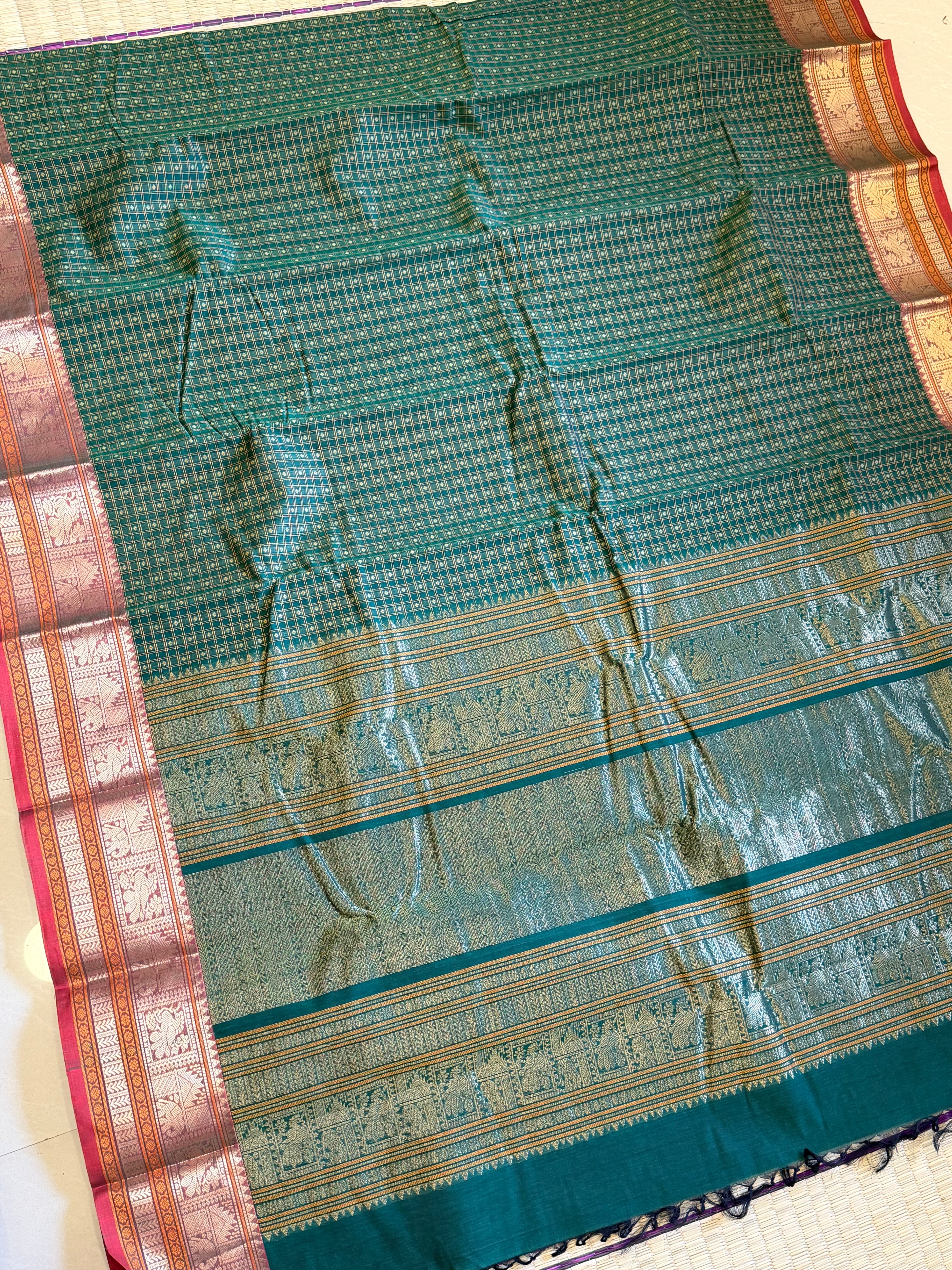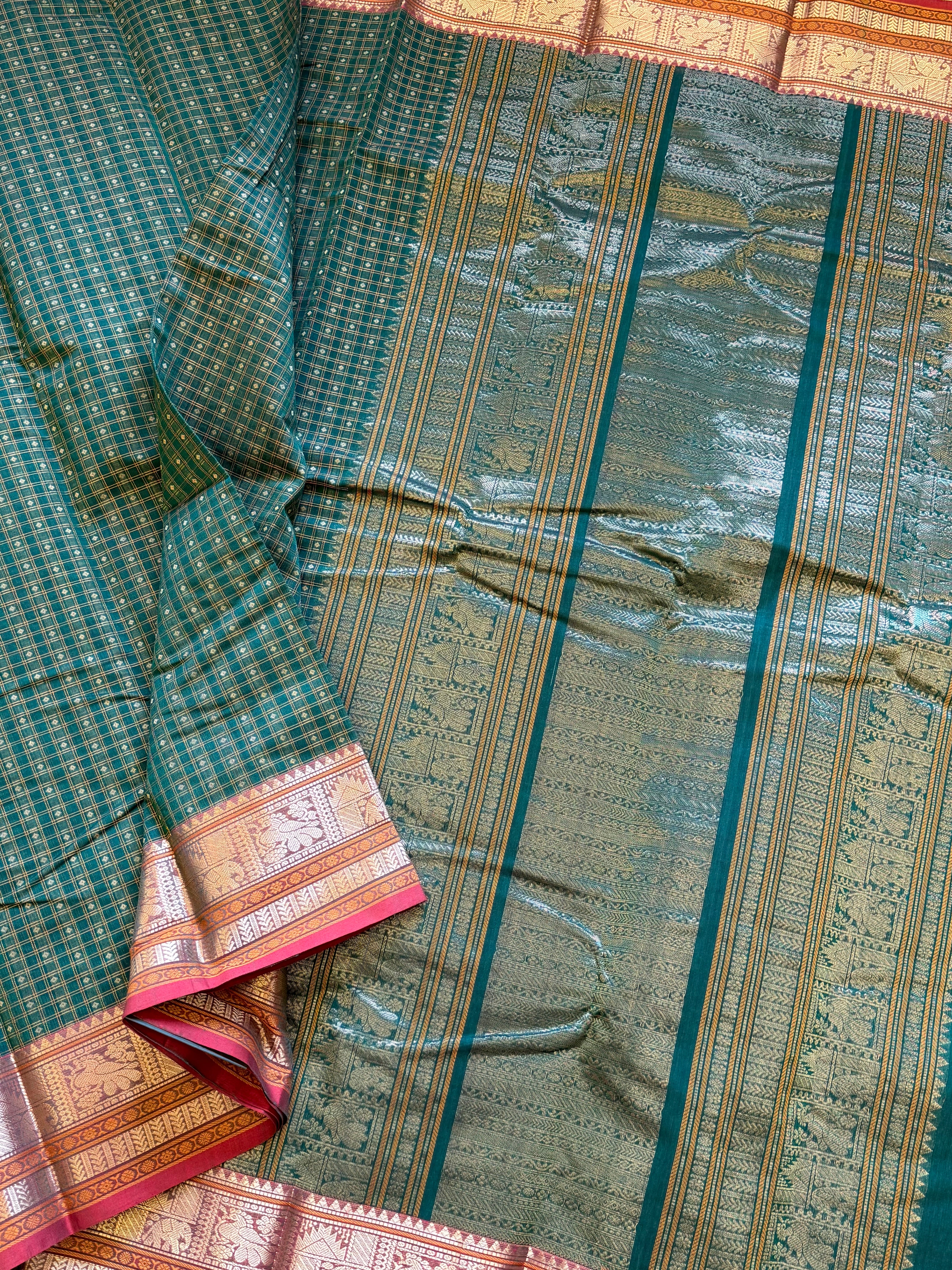 Green shot rust kolam butta /Silk Cotton