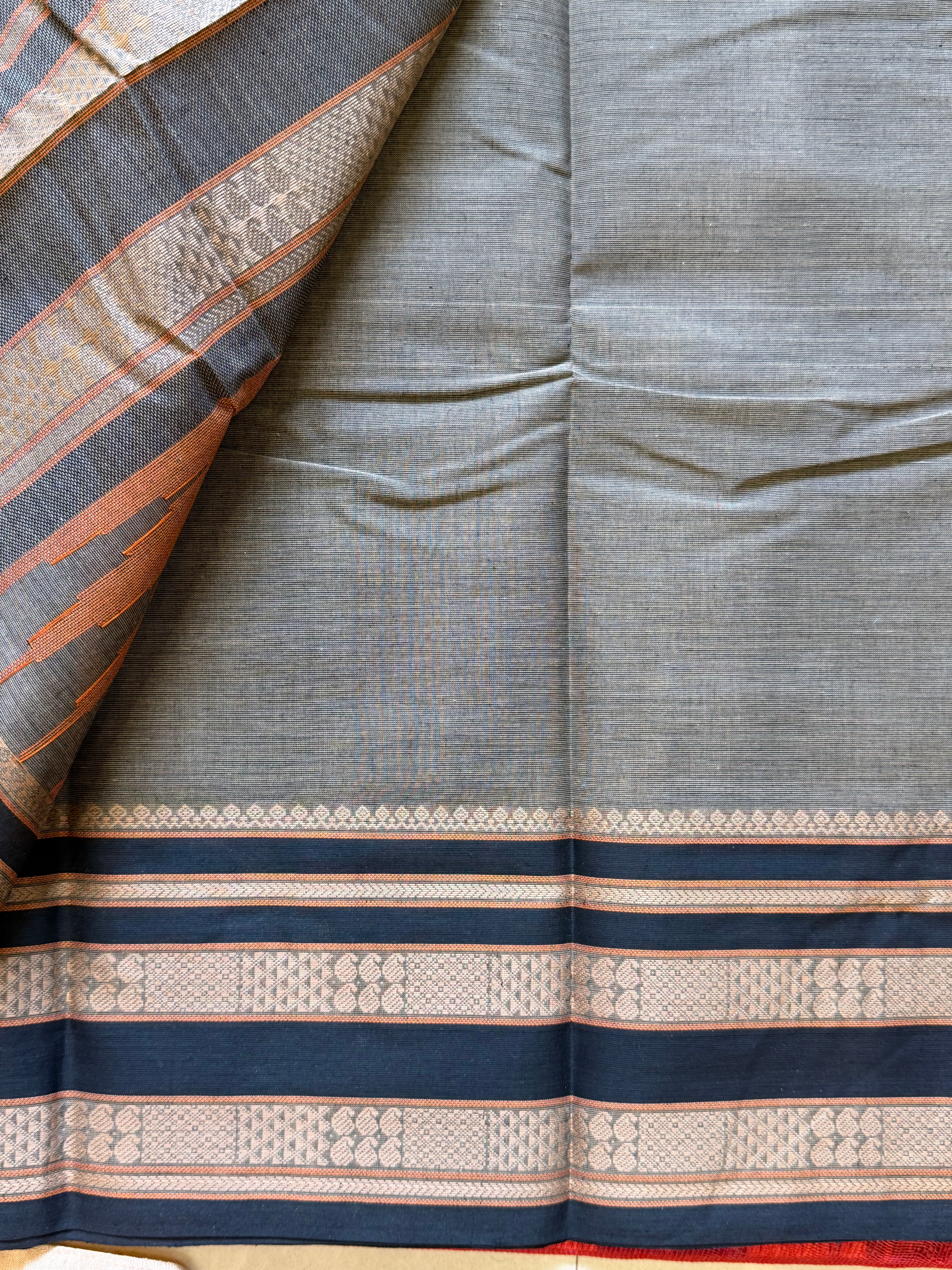 Grey Long border / Kanchi cotton