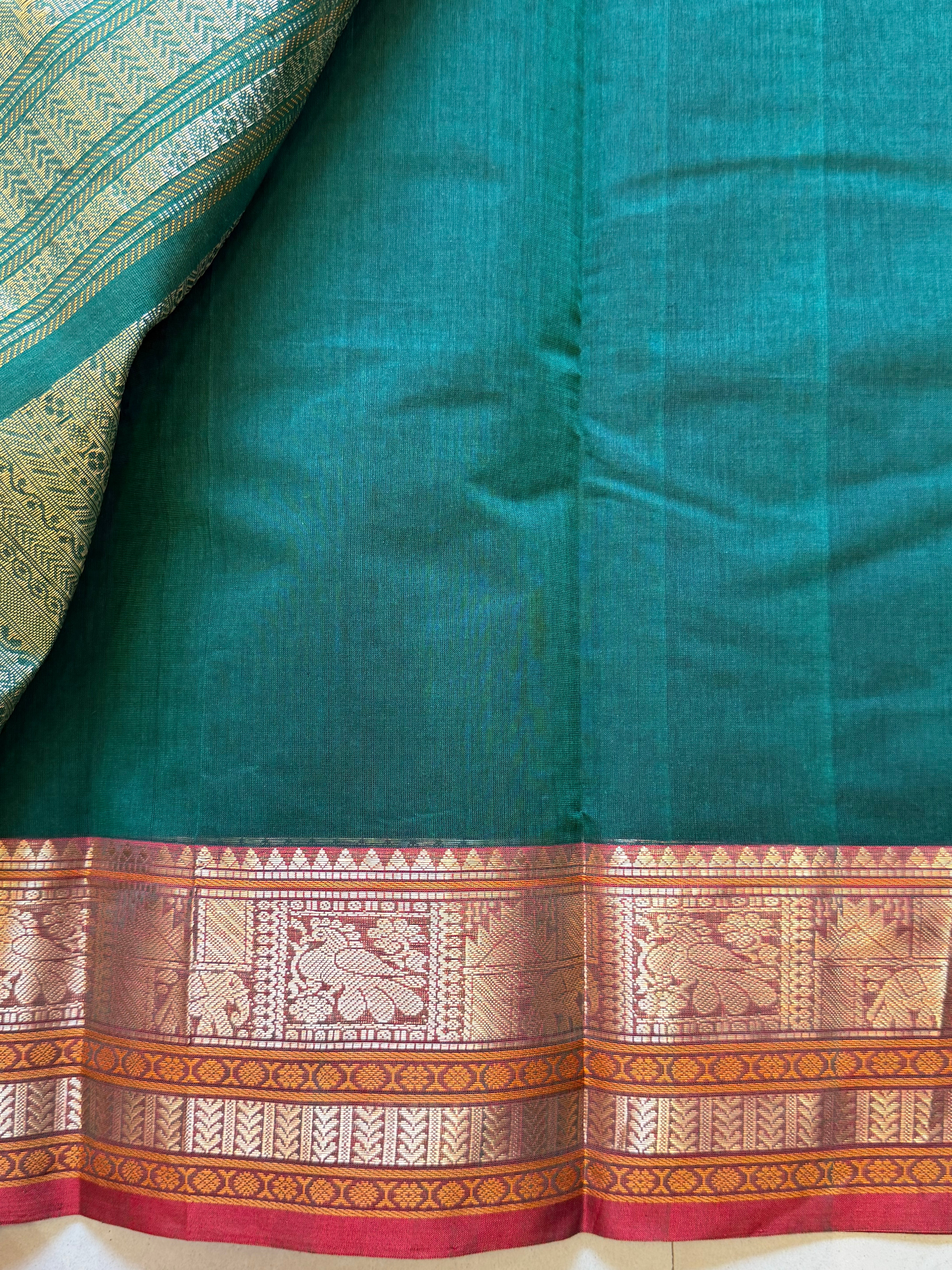Green shot red rettapet border/ kanjipuram silk