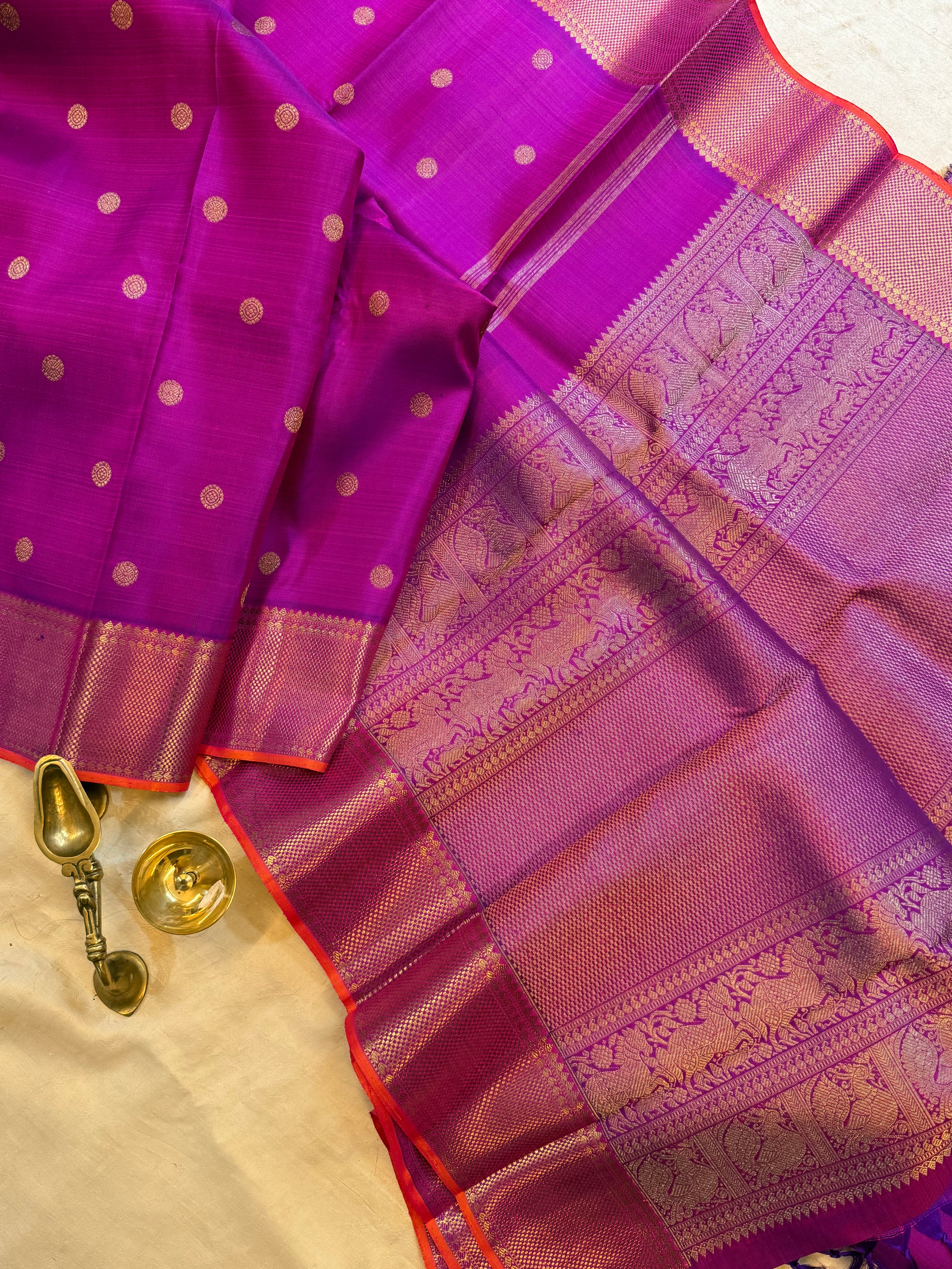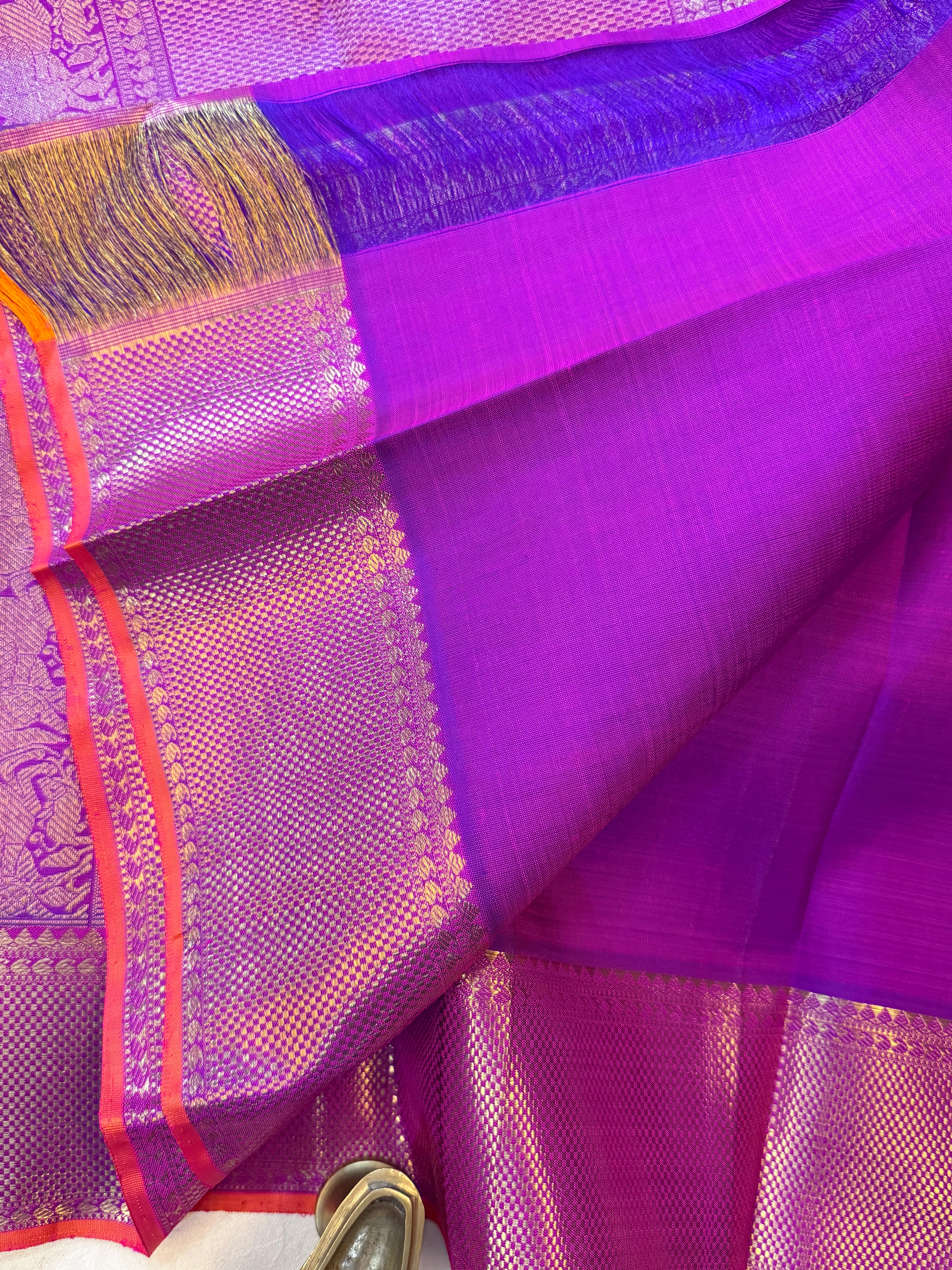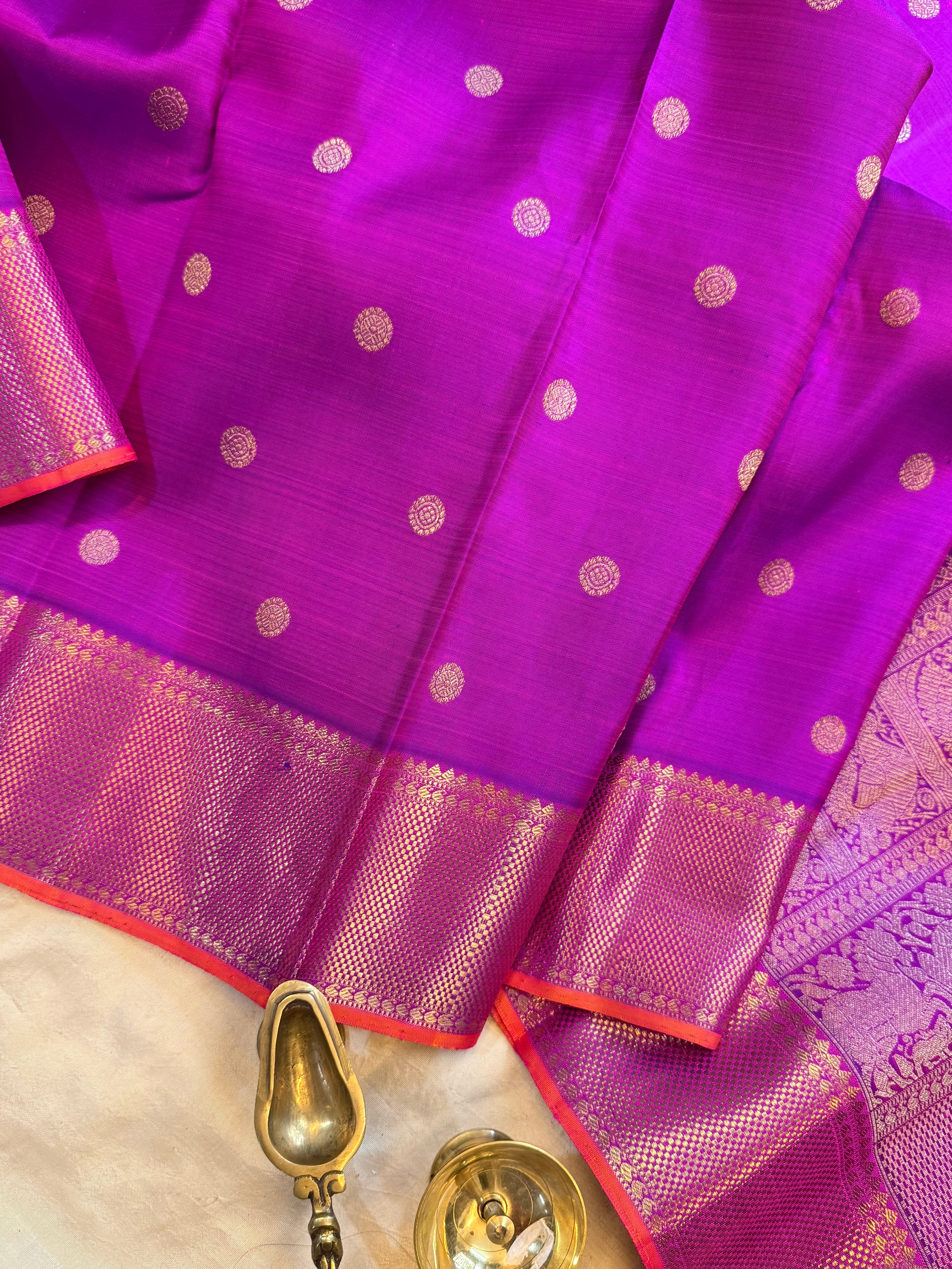 Purple watch pet border / kanjipuram silk