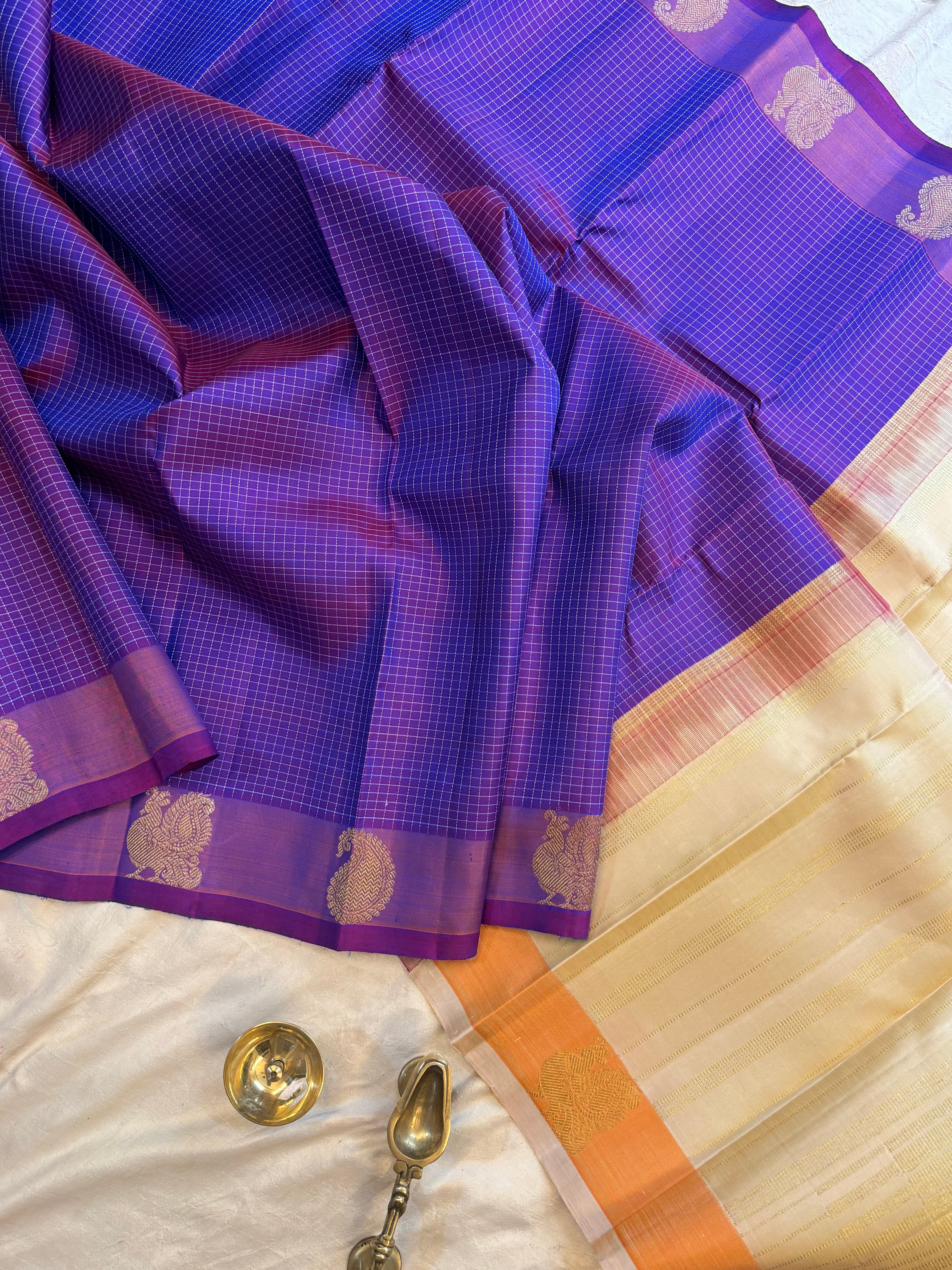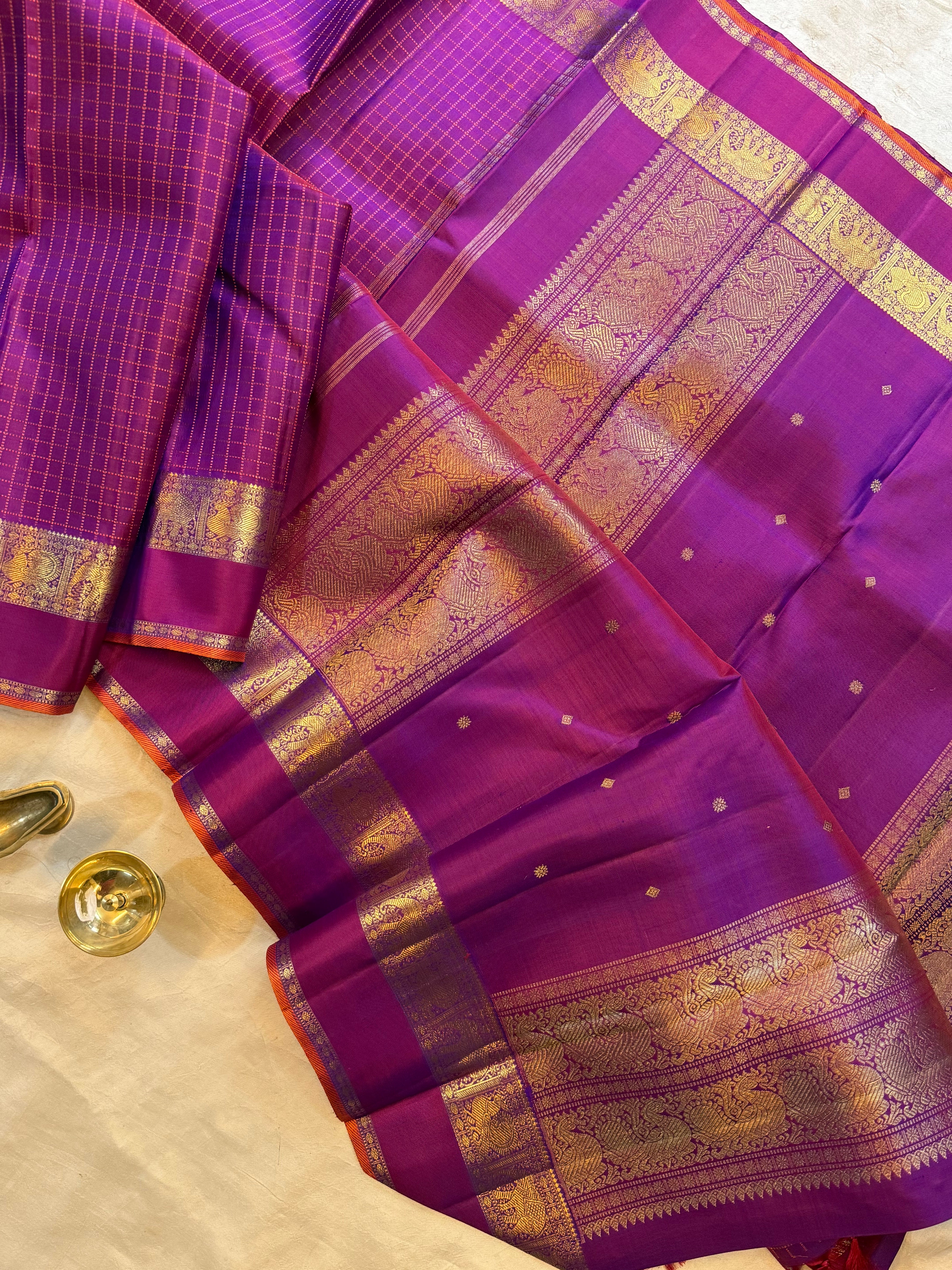 Purple Kattam pet Butta / kanjipuram silk