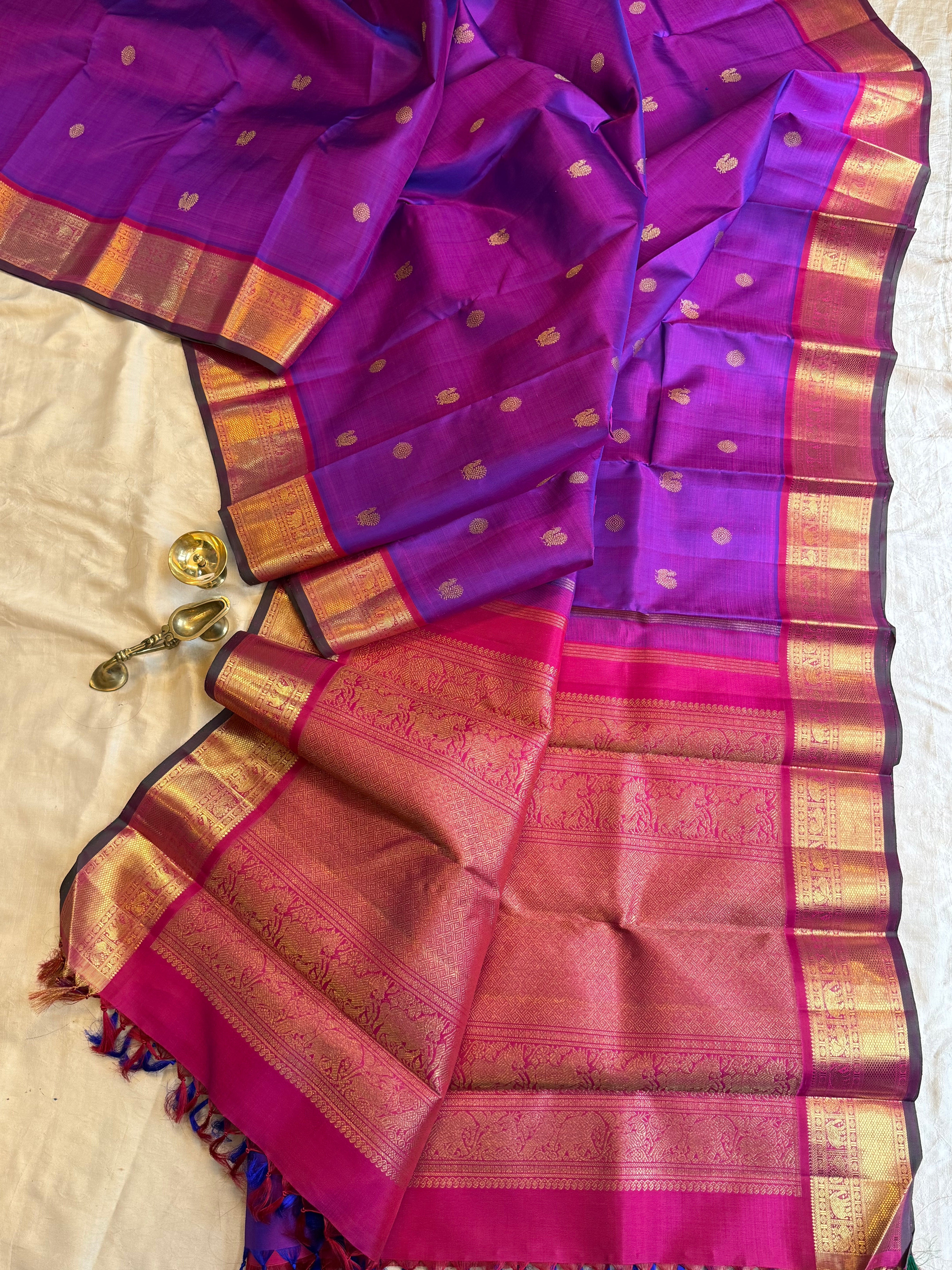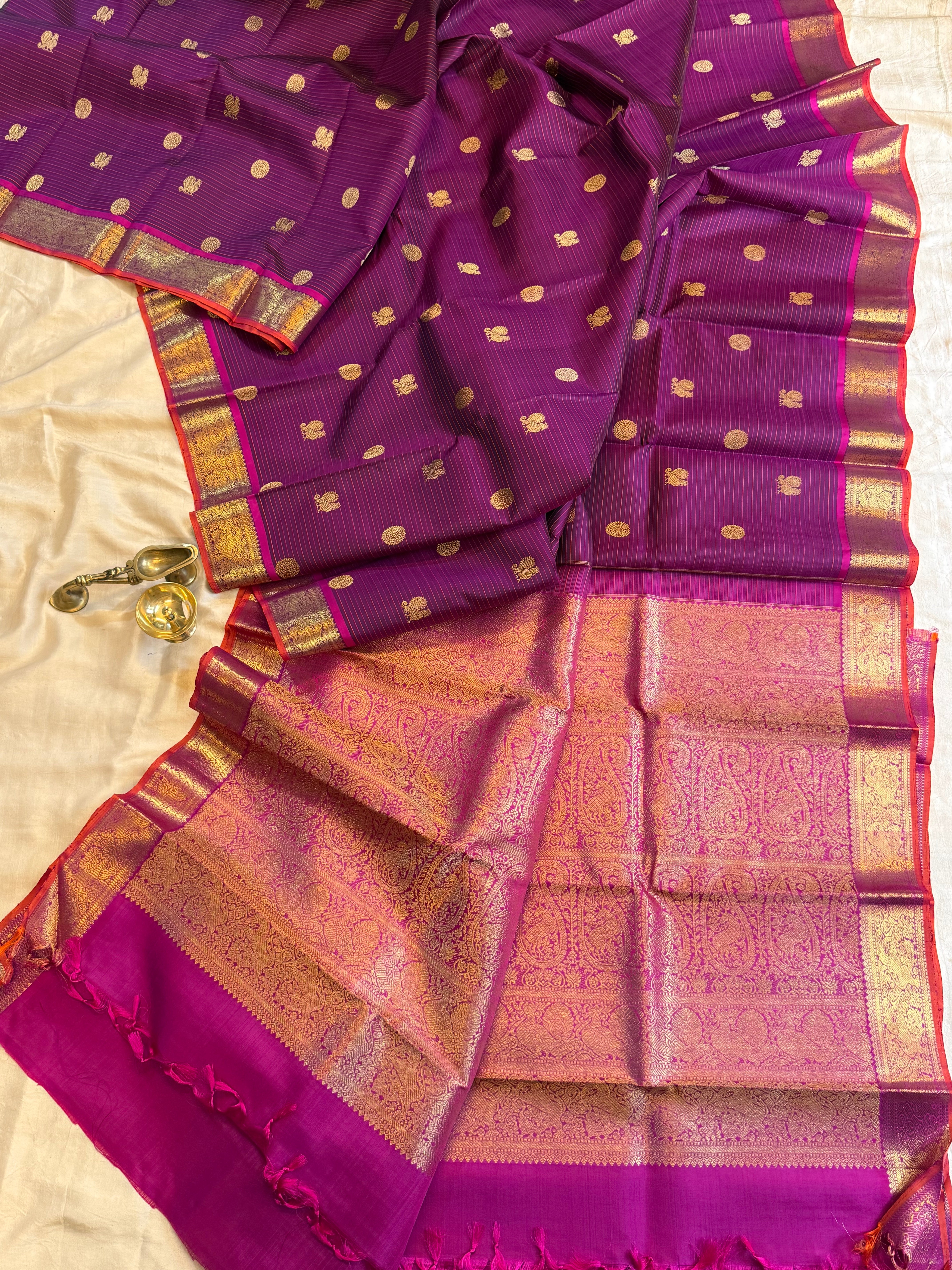 Purple thread Oosi Butta / kanjipuram silk