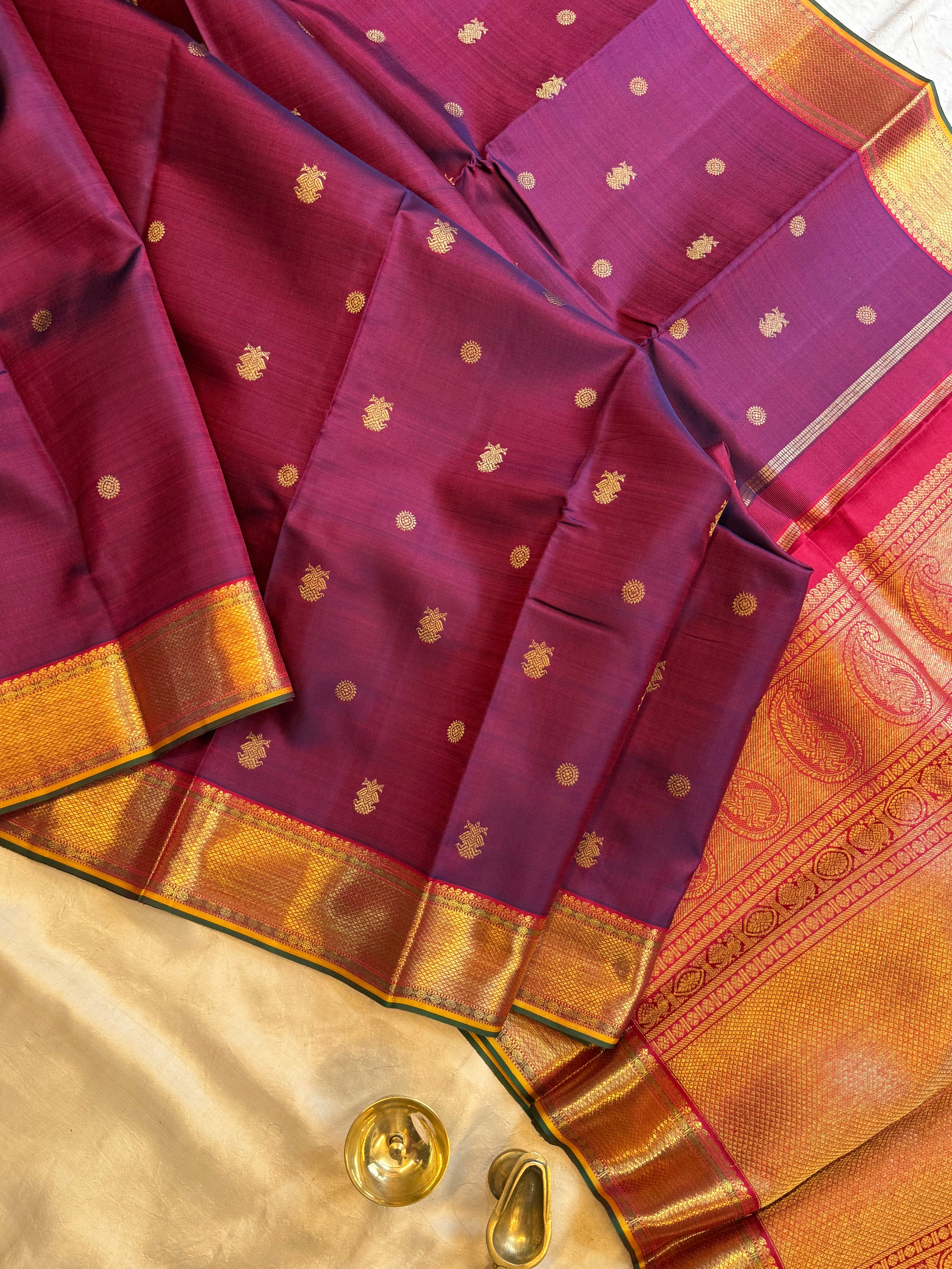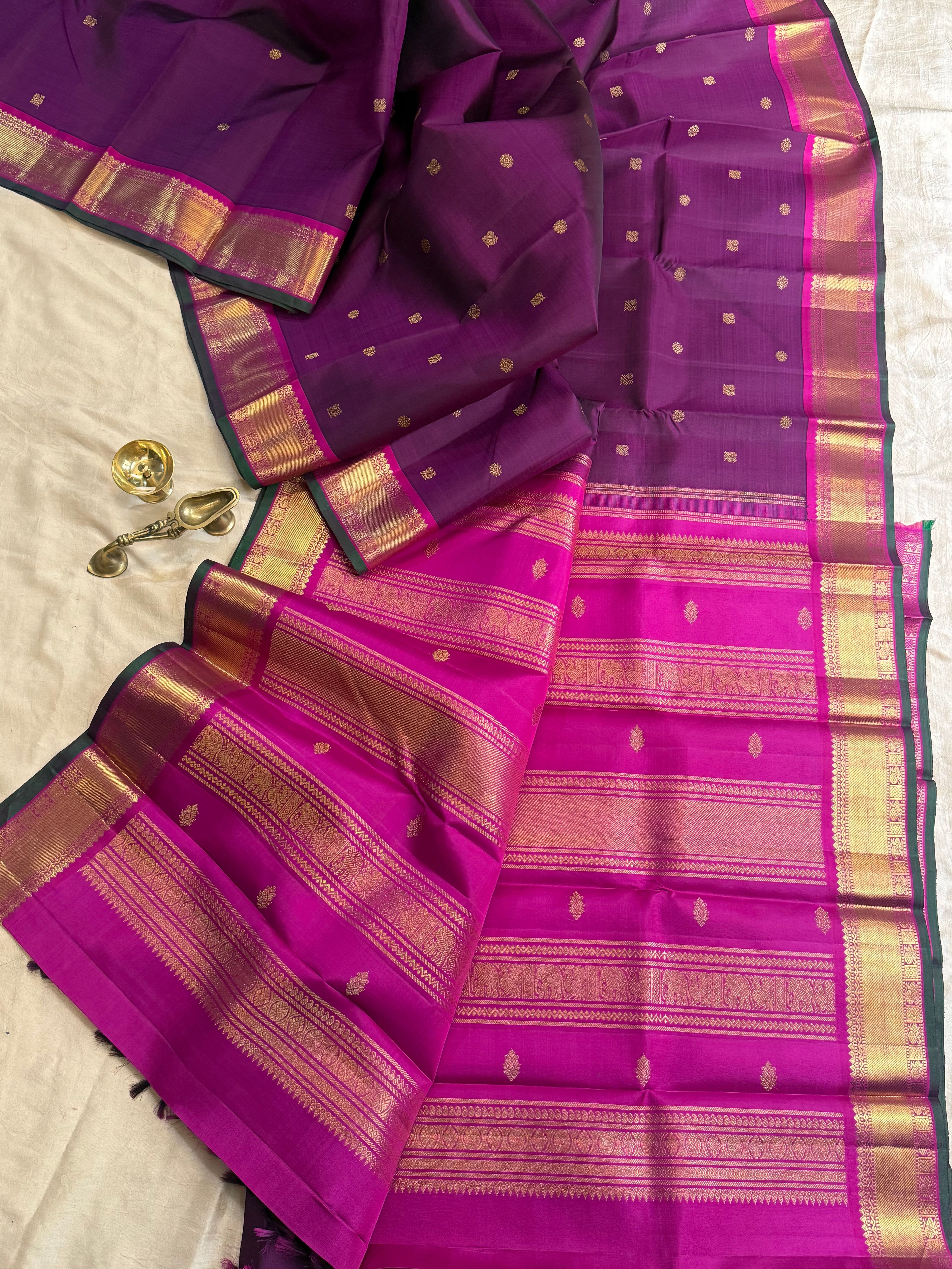 Aubergine Butta pink border / kanjipuram silk