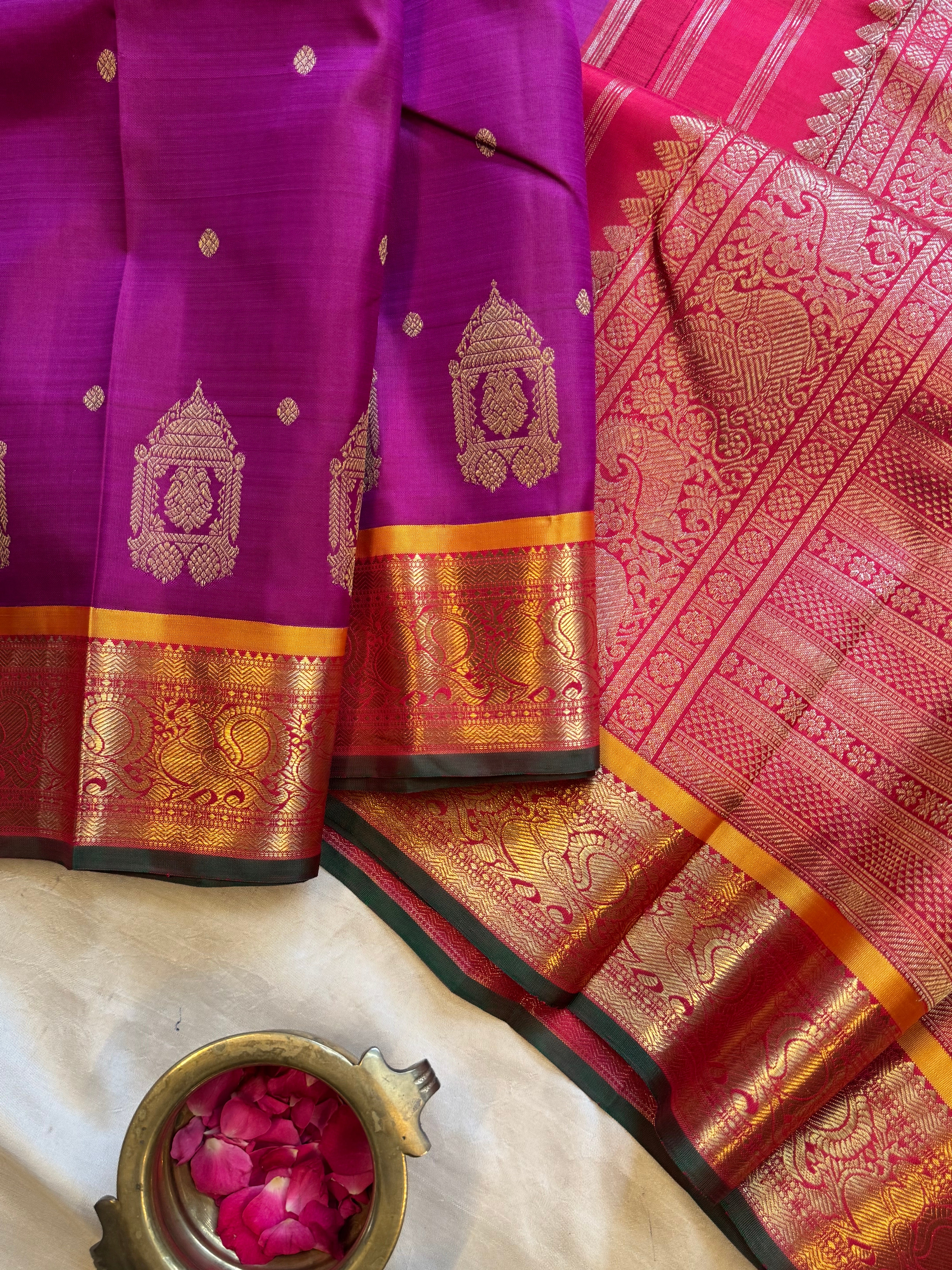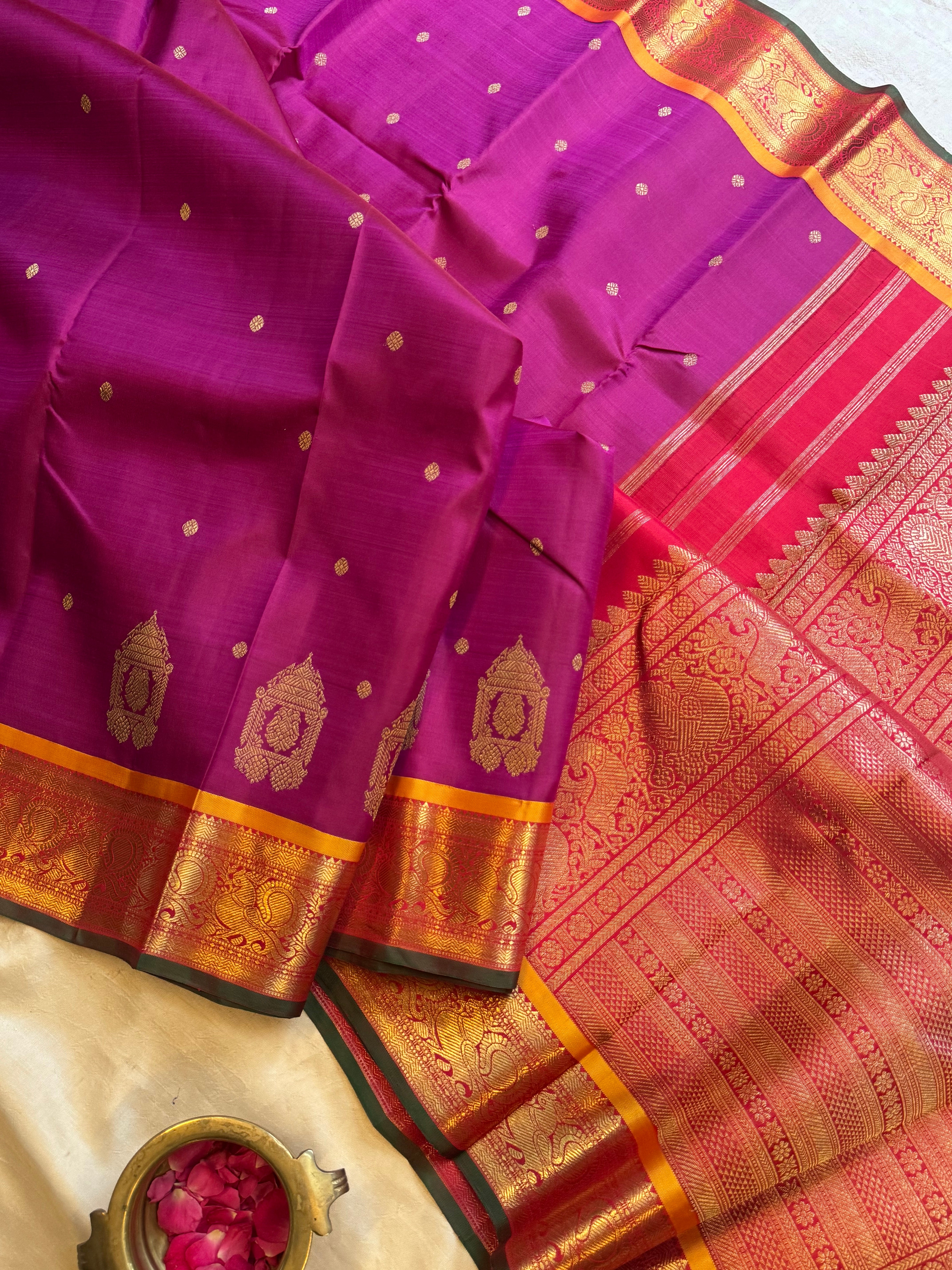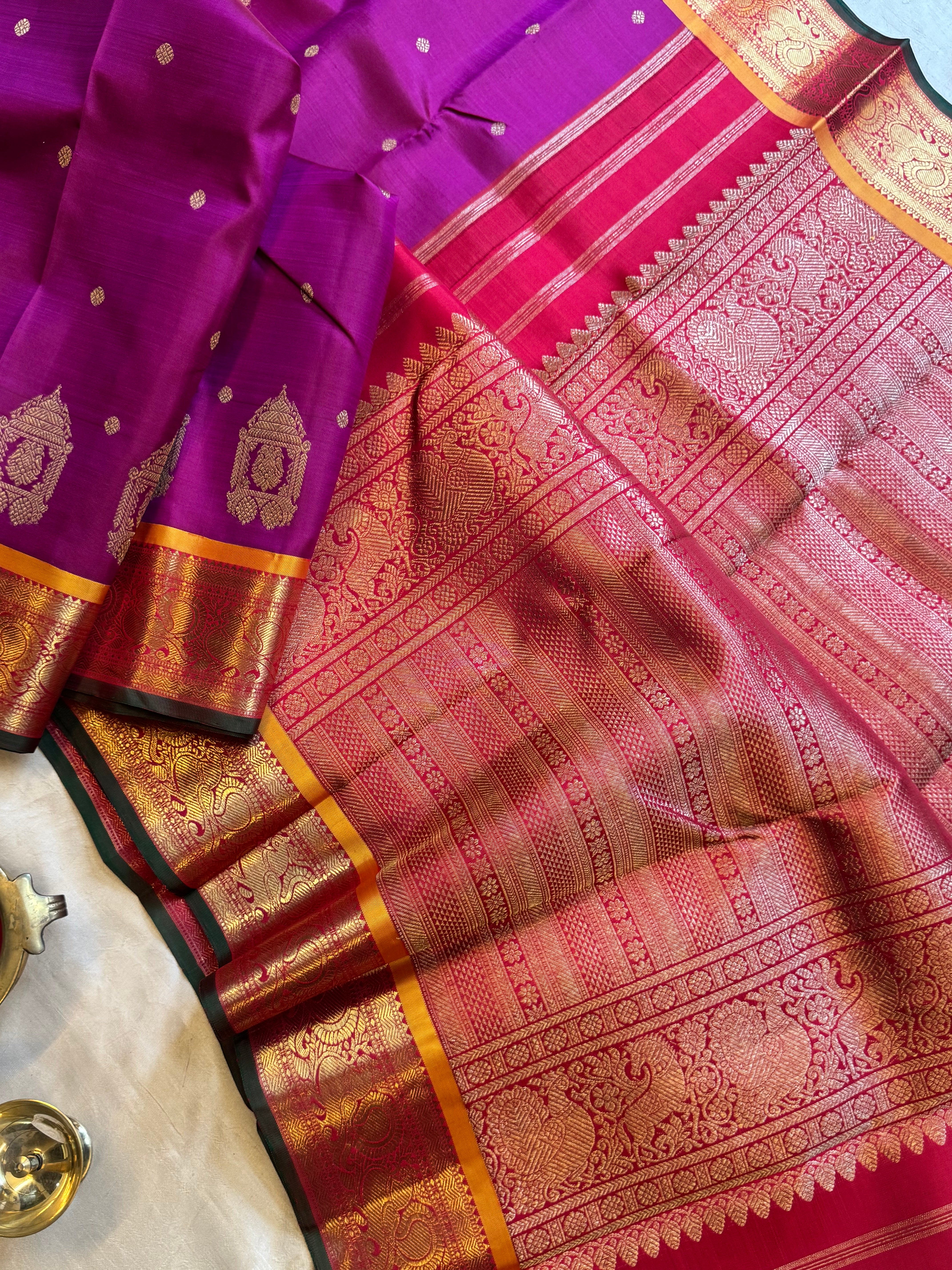 Red checks and pinkish red border annam butta / kanjipuram silk