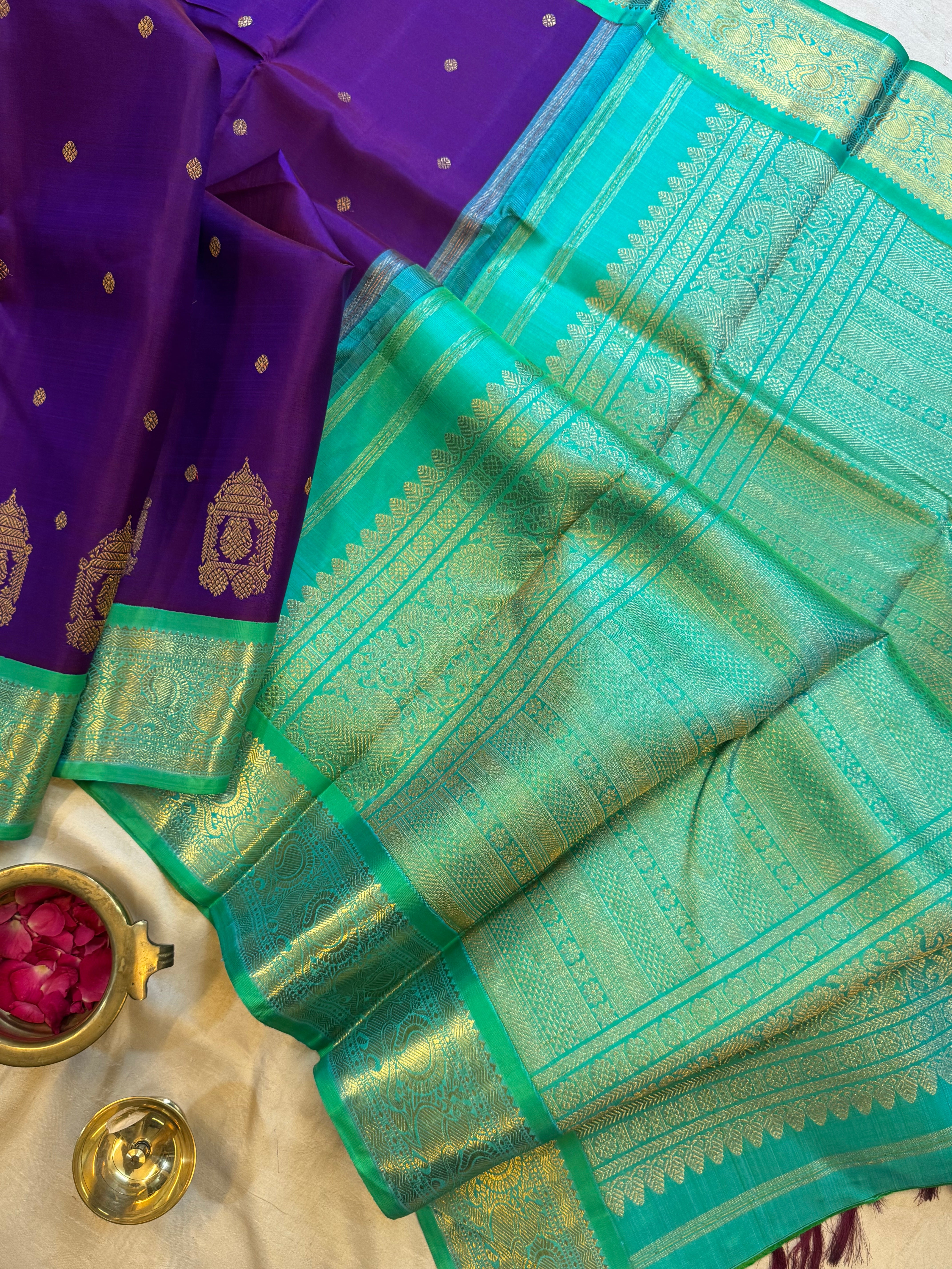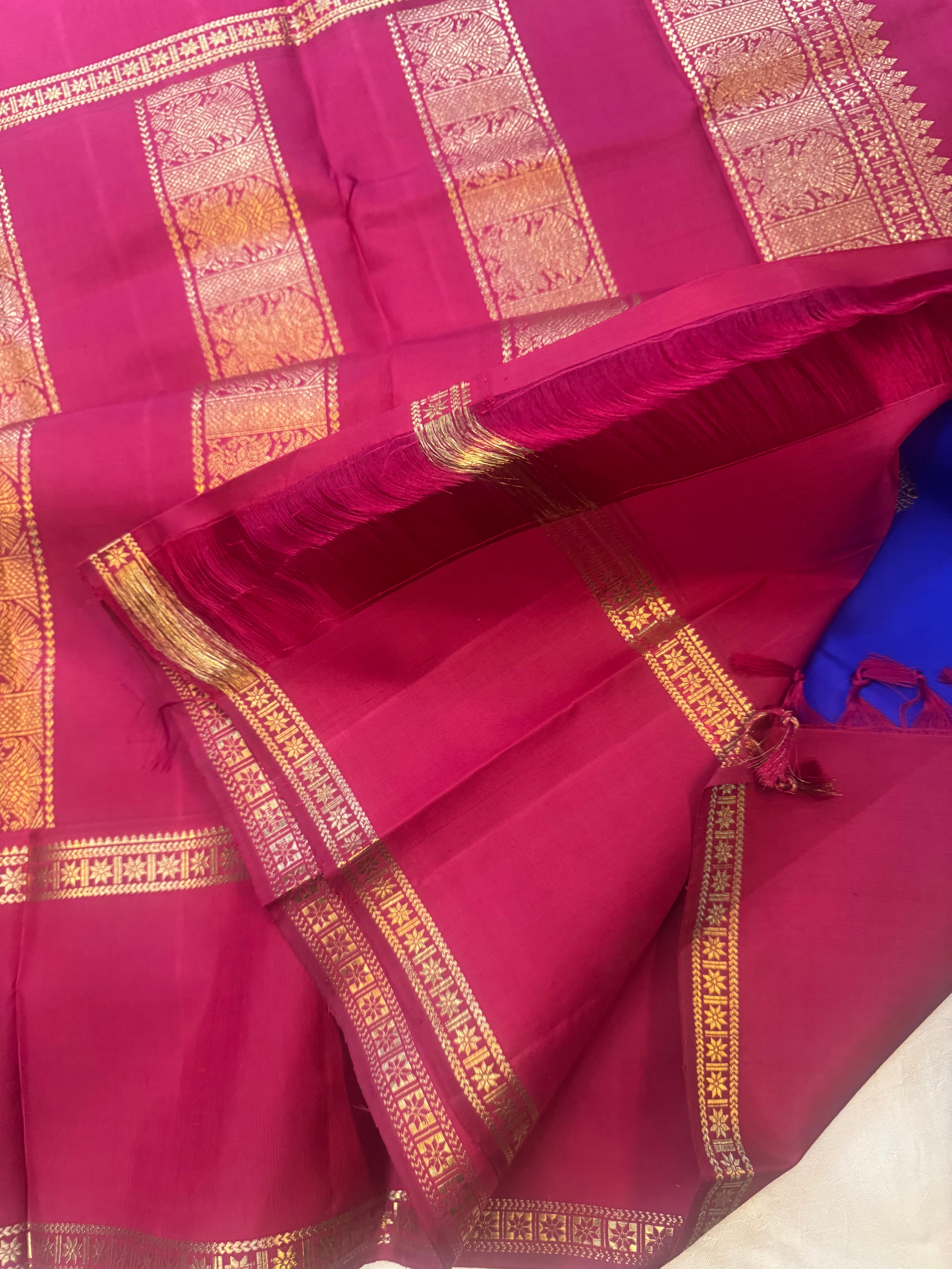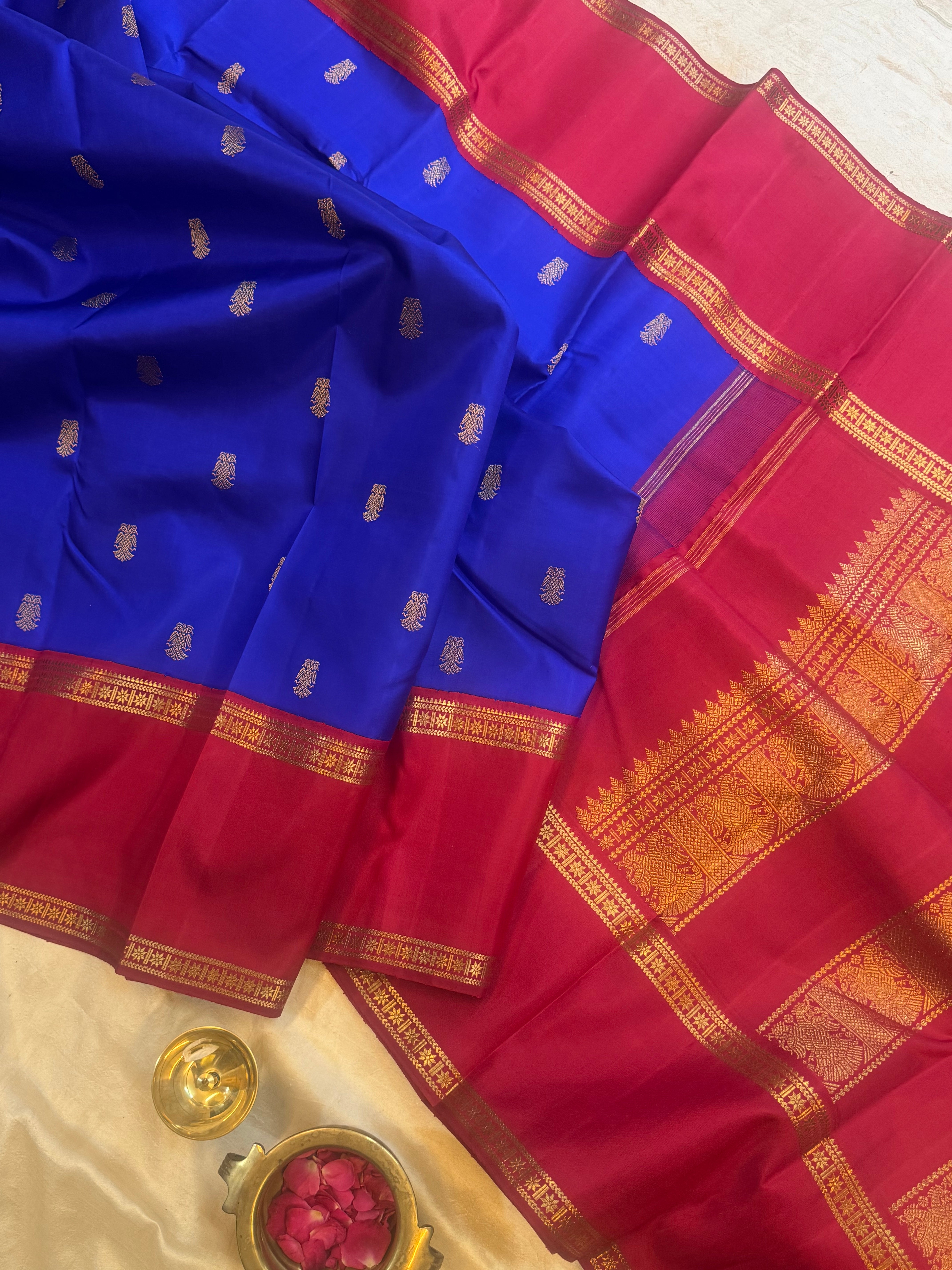 Red checks and pinkish red border annam butta / kanjipuram silk