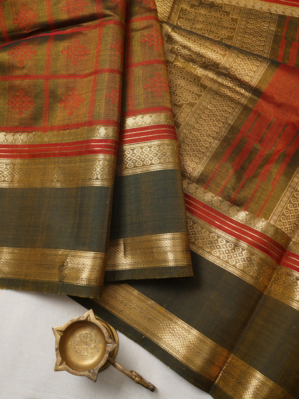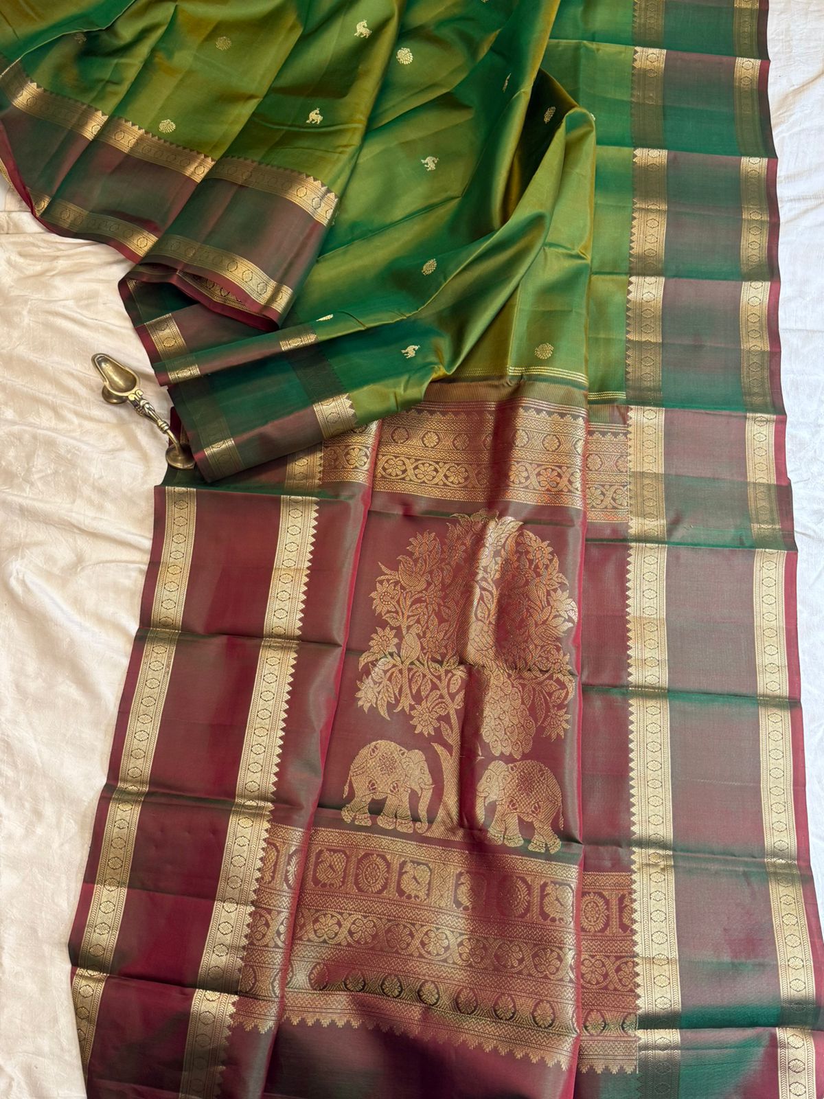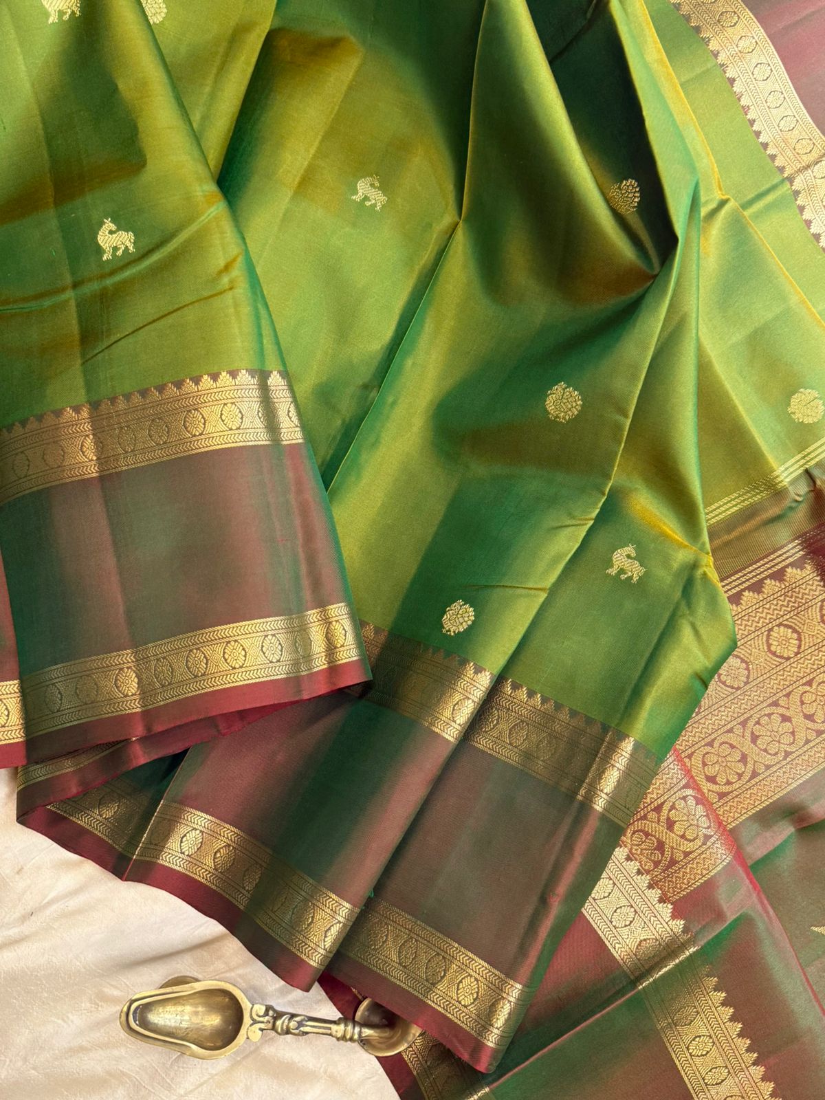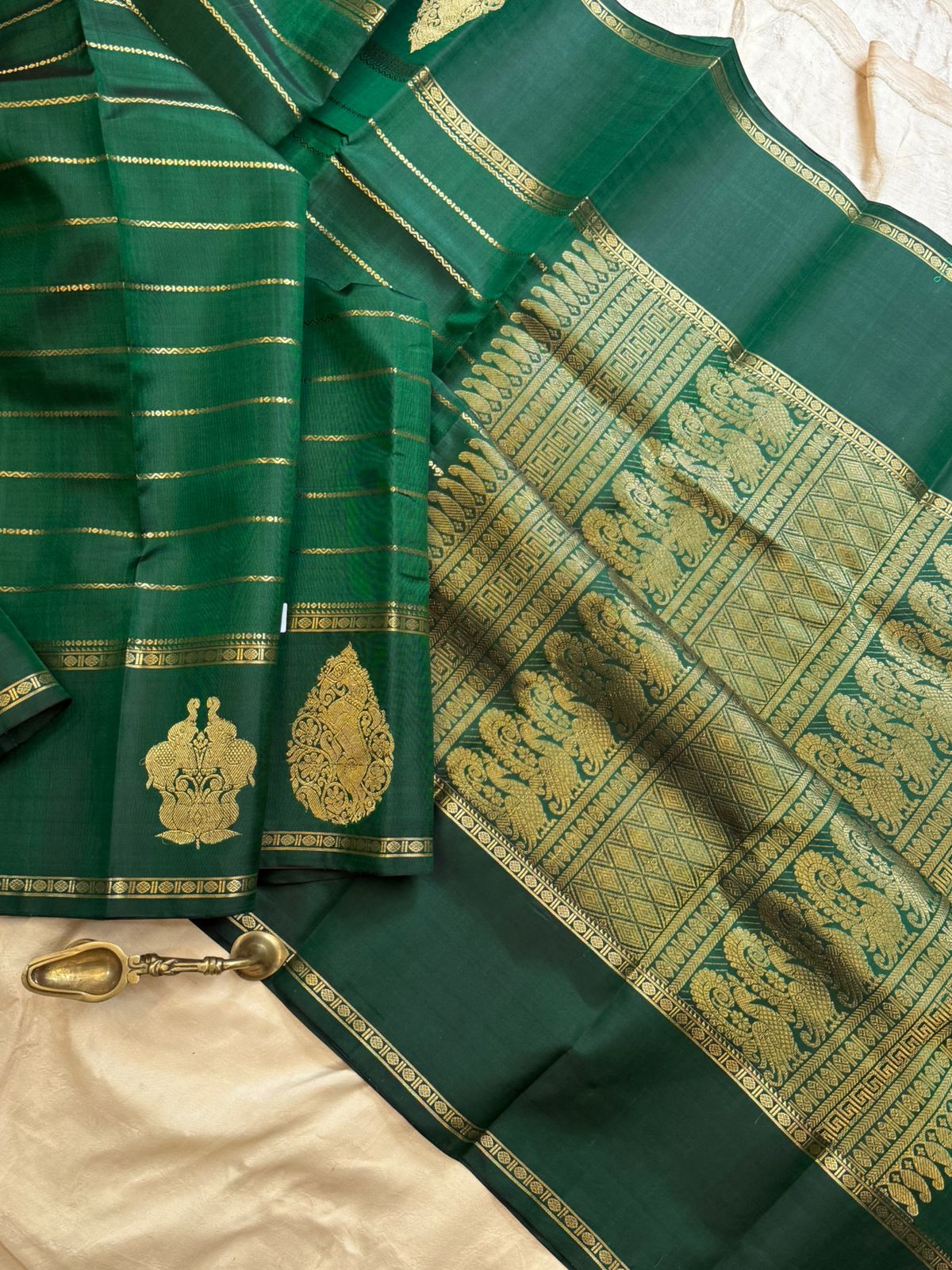 Green and maanthulir rettapet border / special edition kanjipuram silk