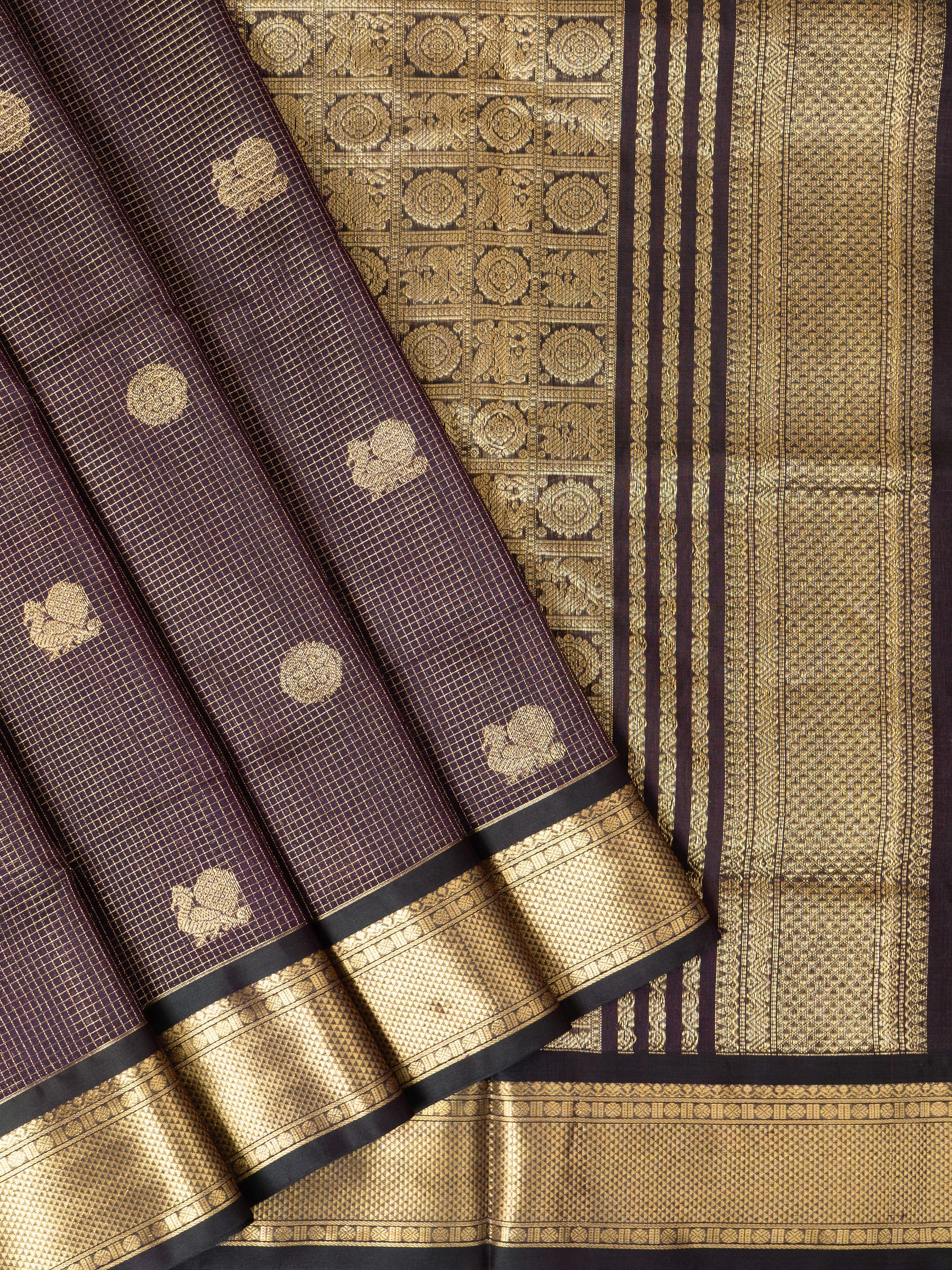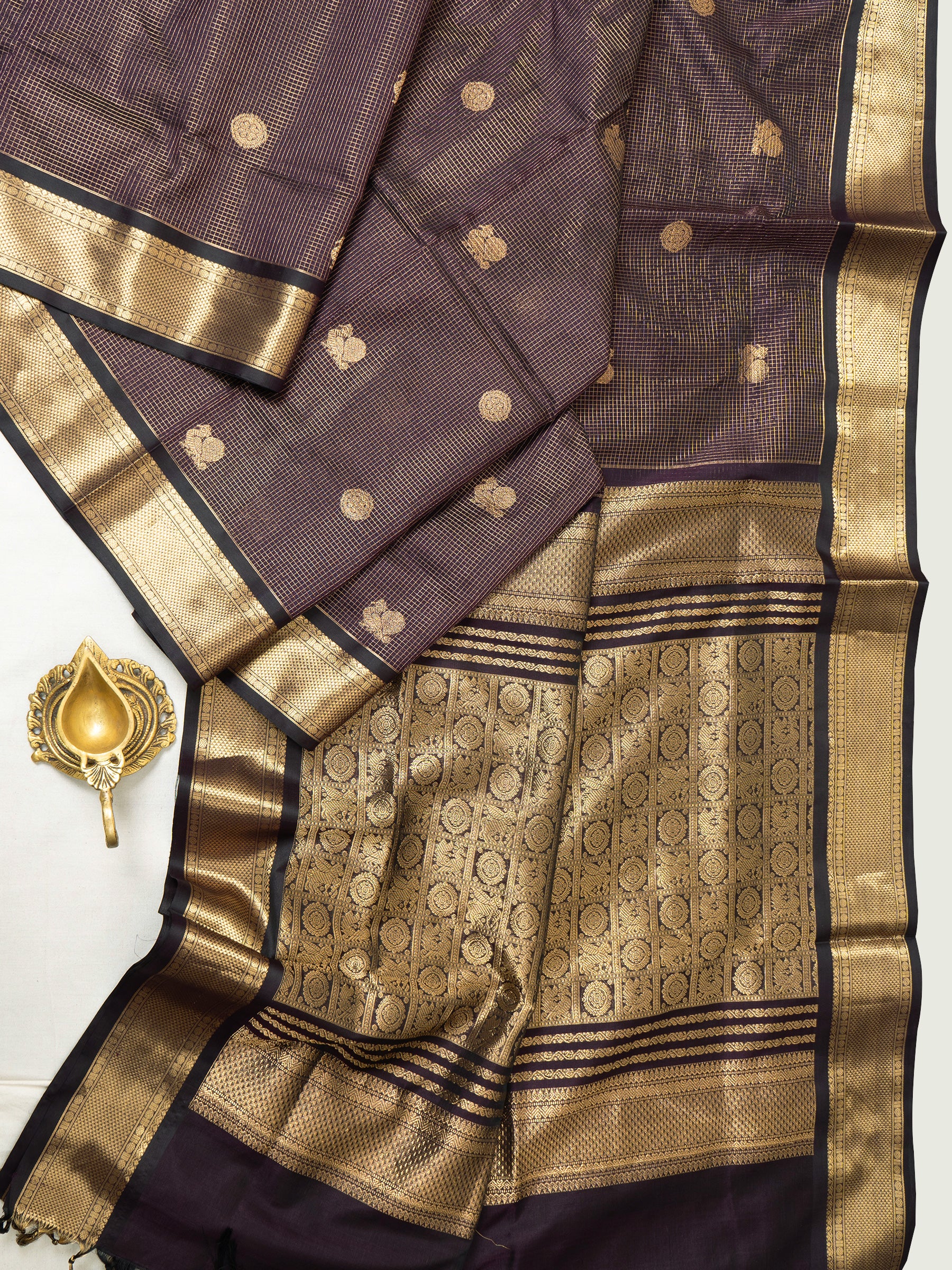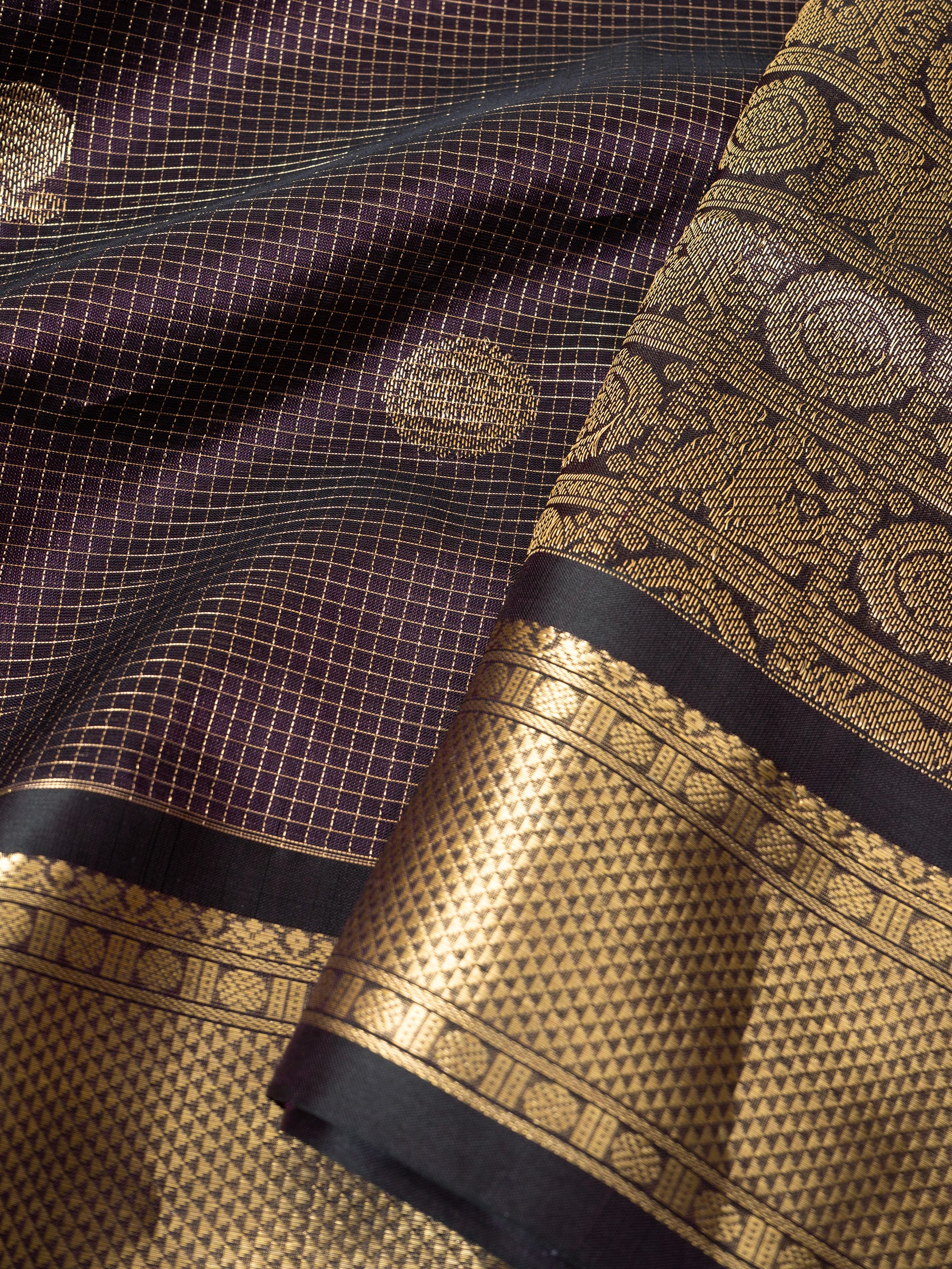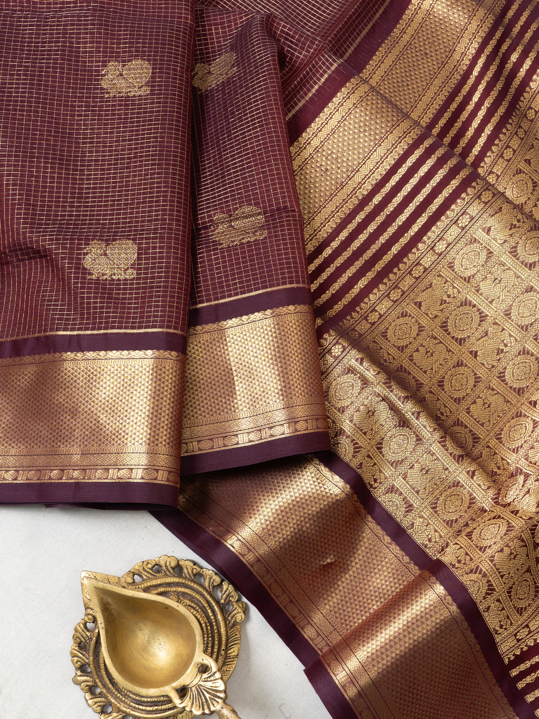 Dark purple zari checks annam and chakram butta/ Silk Cotton