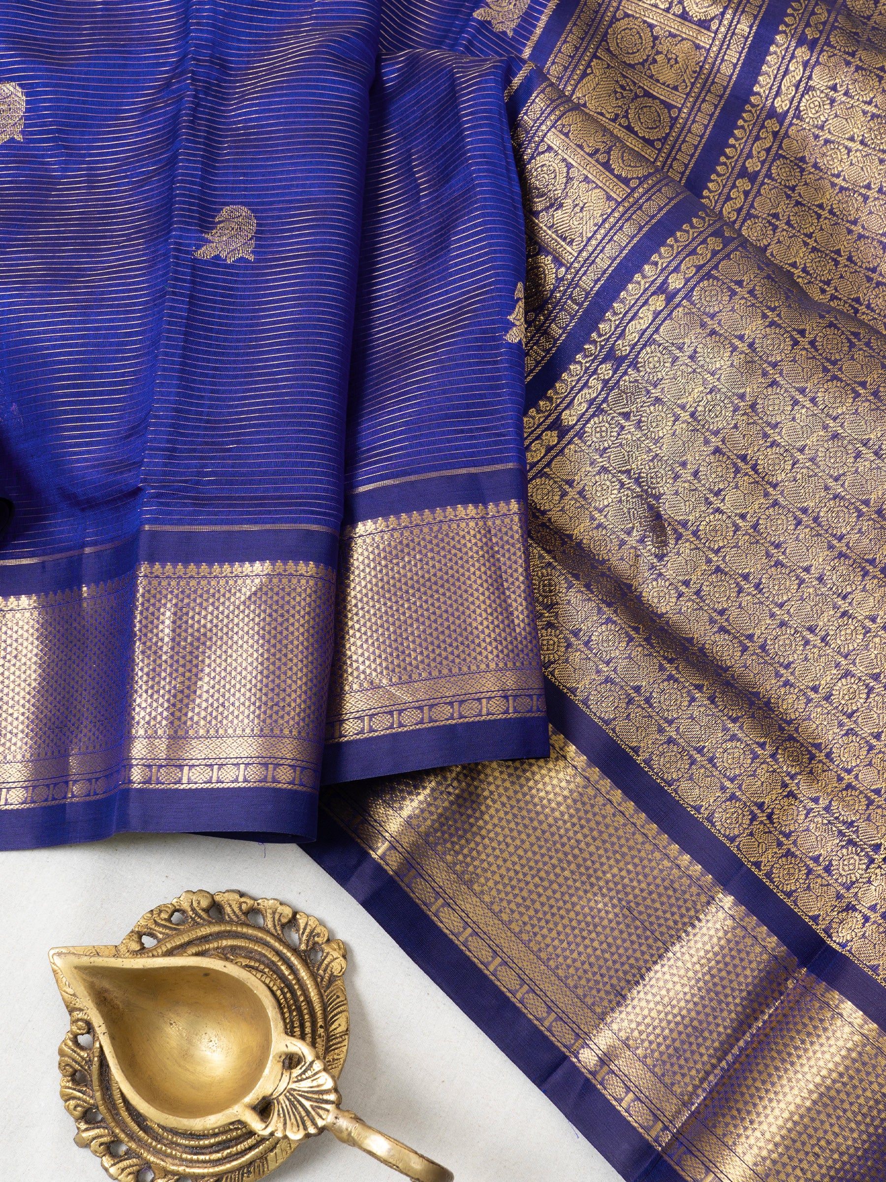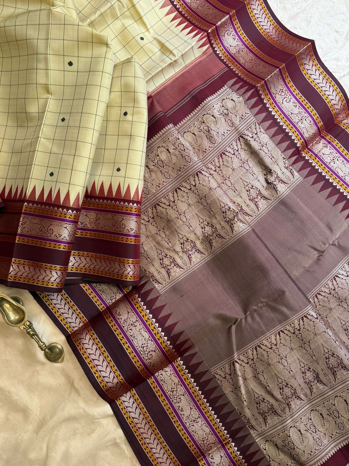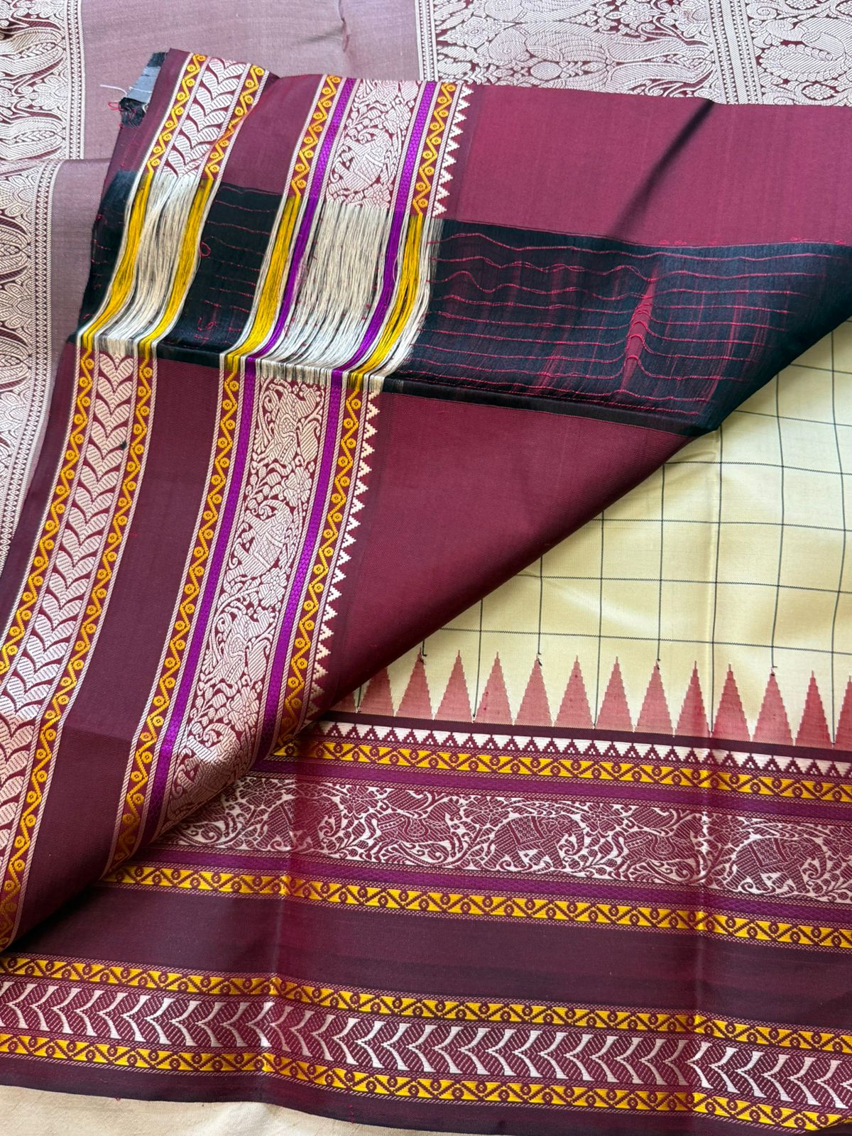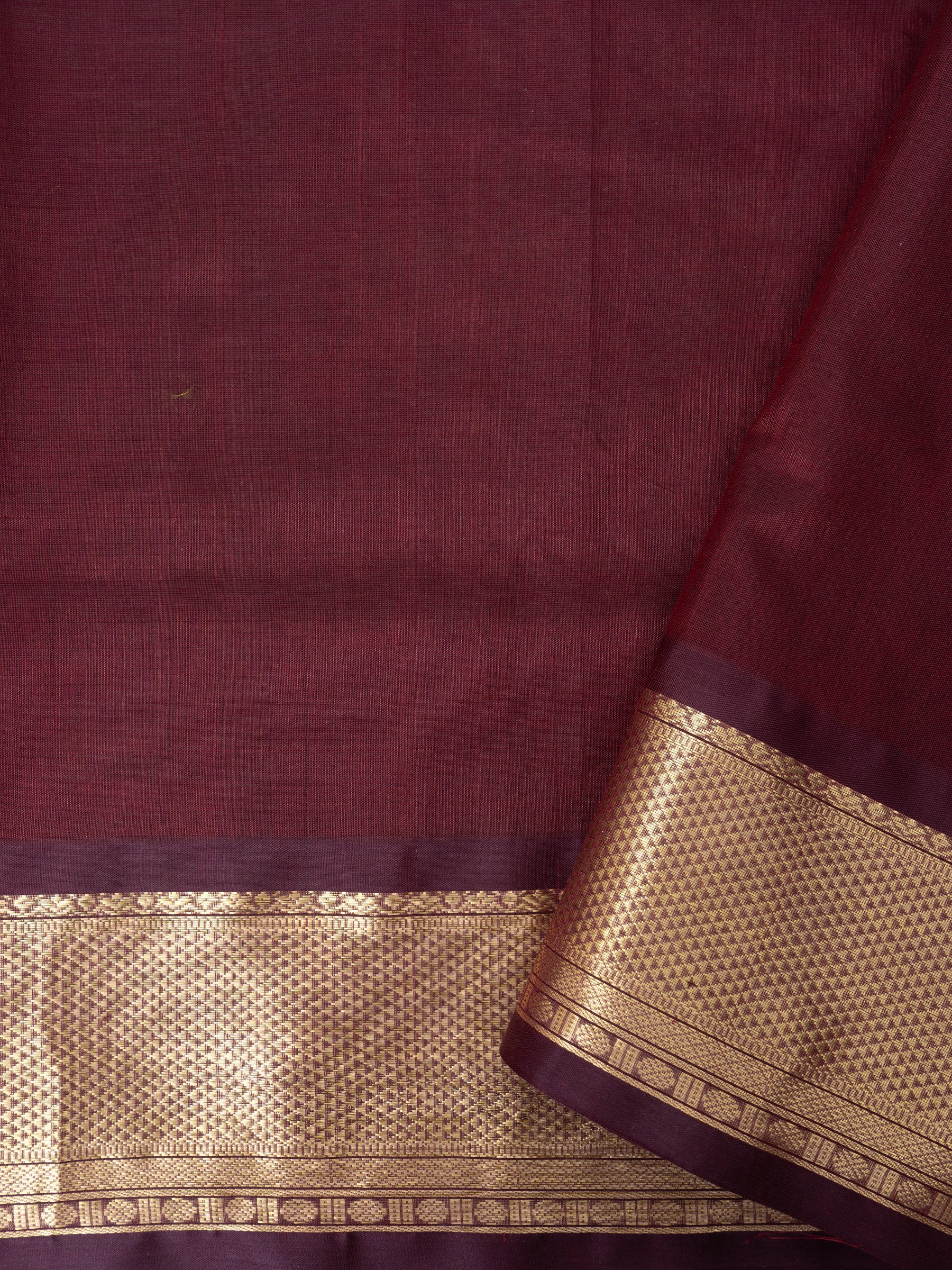 Dark purple zari checks annam and chakram butta/ Silk Cotton