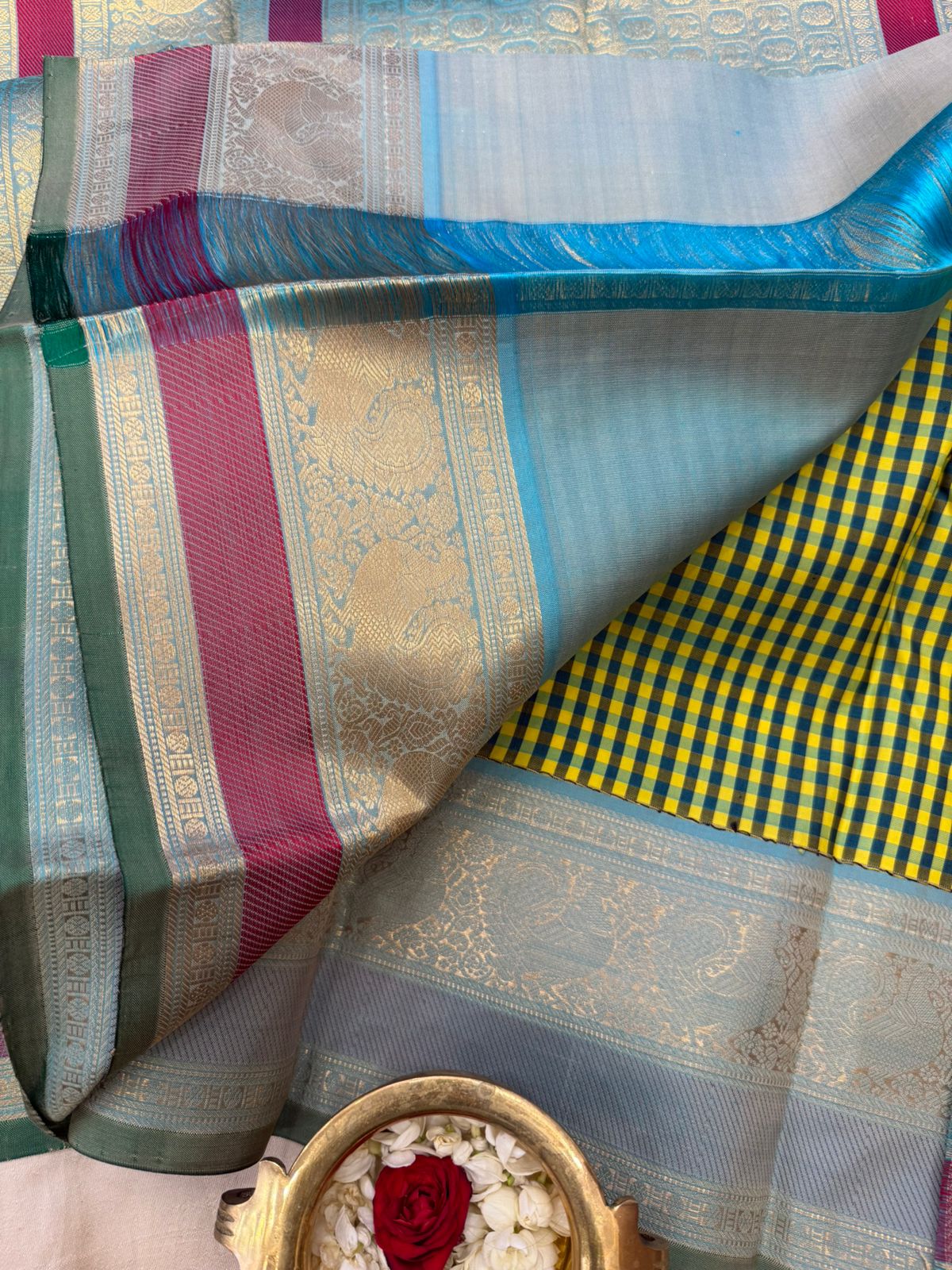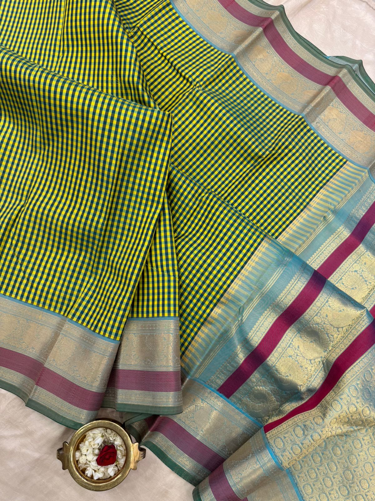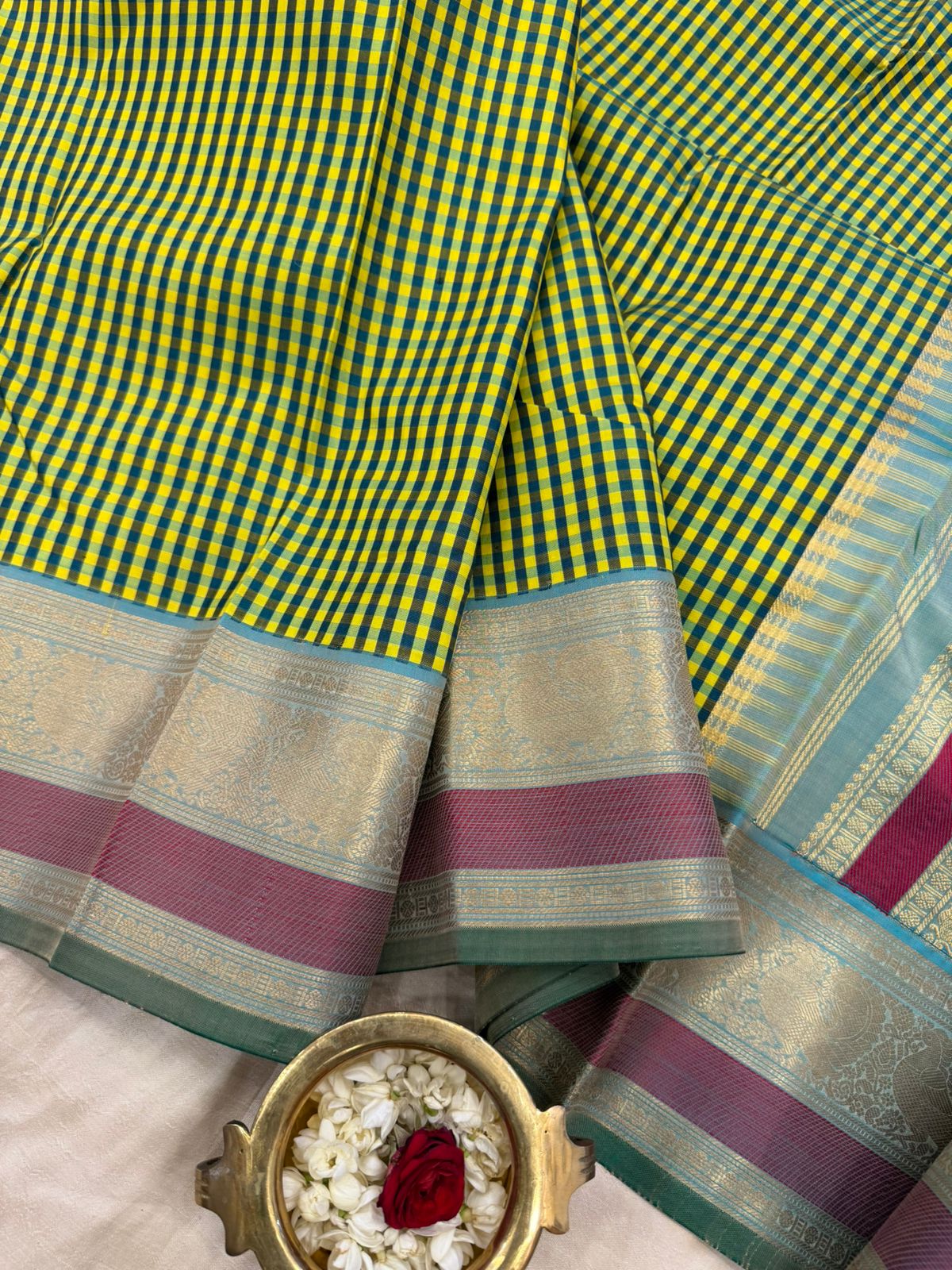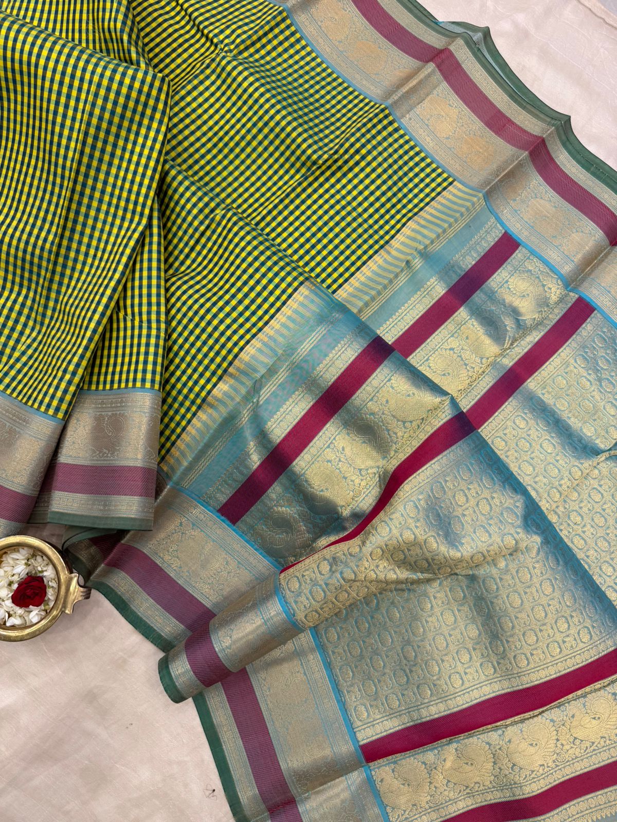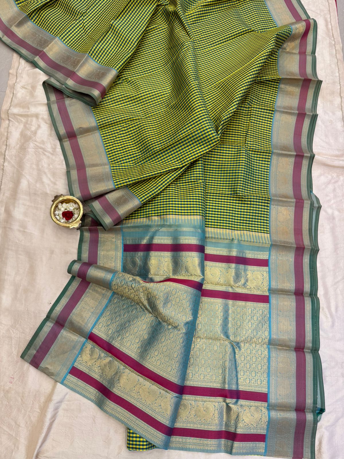 Paalum pazhamum checks kai korvai rettapet border/ kanjipuram silk
