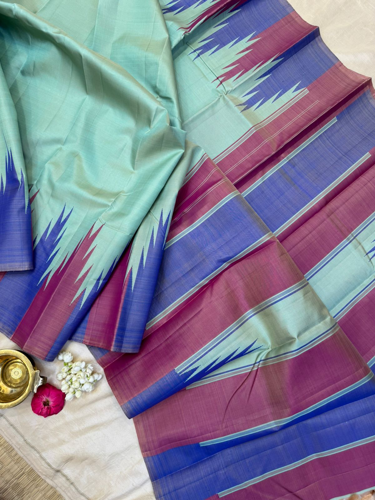Pastel - grey and onion pink kai korvai / kanjipuram silk