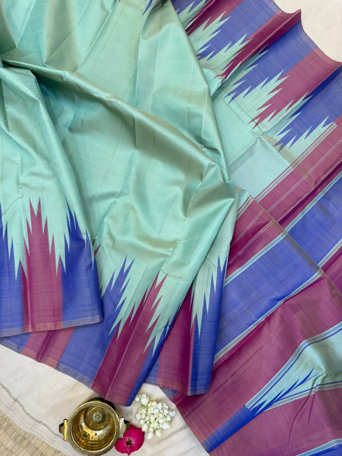 Panner roja pink borderless with green pallu / kanjipuram silk