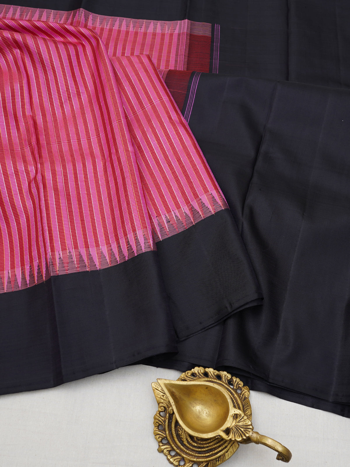 Pink and black kai korvai/ kanjipuram silk