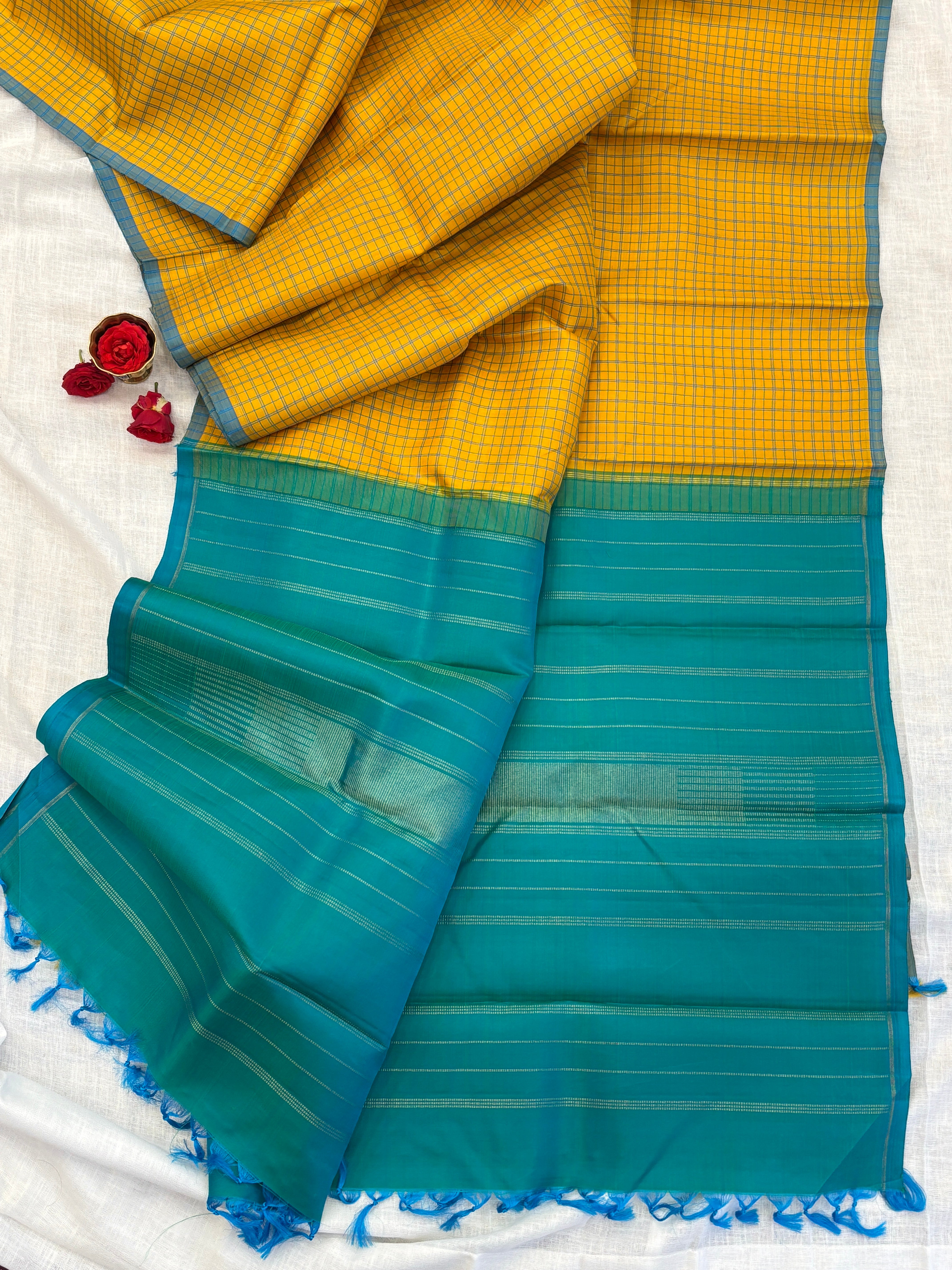 We usually use 2 ply muruku Pattu in warp and 4 to 5 ply in weft , incase of tissue sarees we use 3 ply in weft
