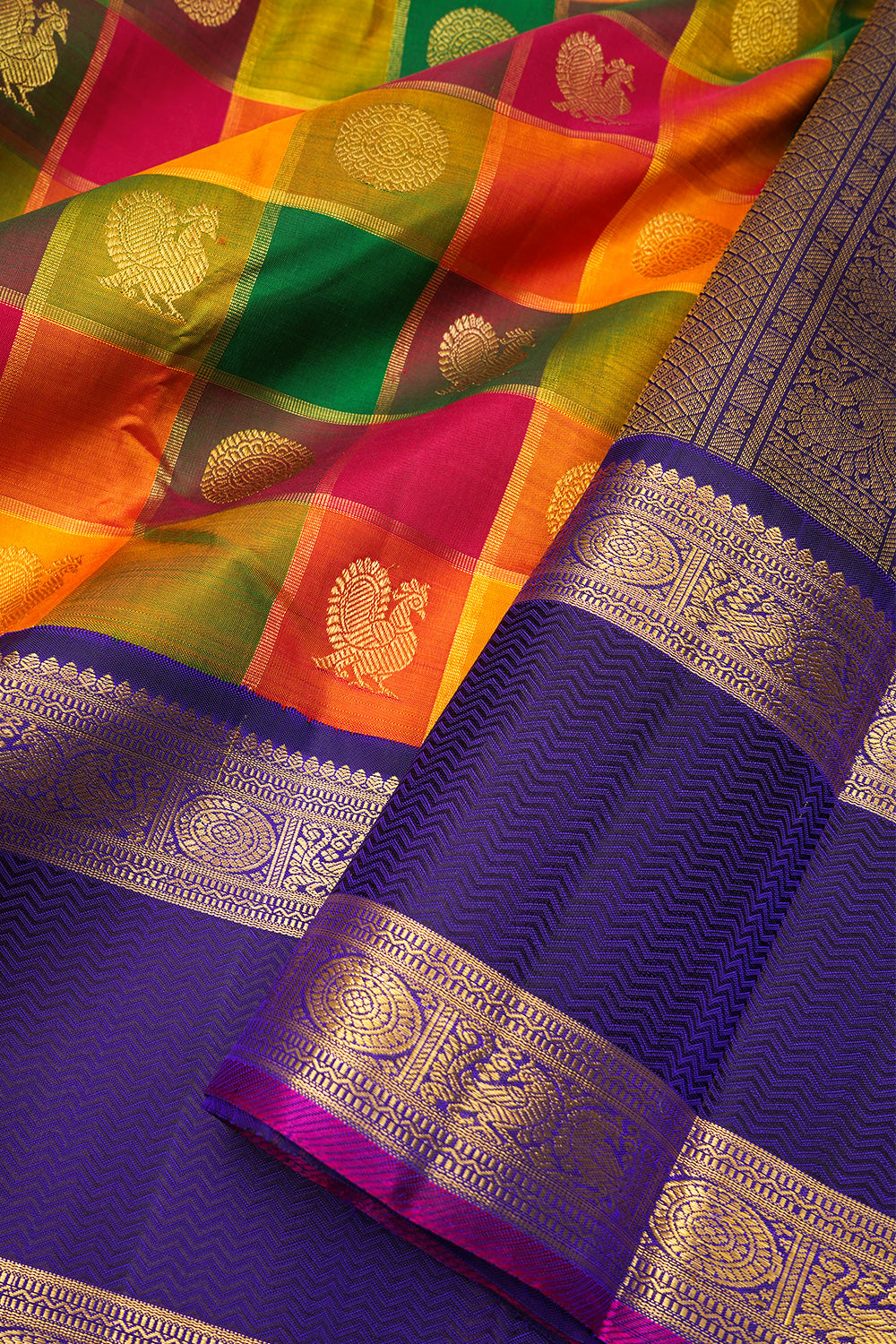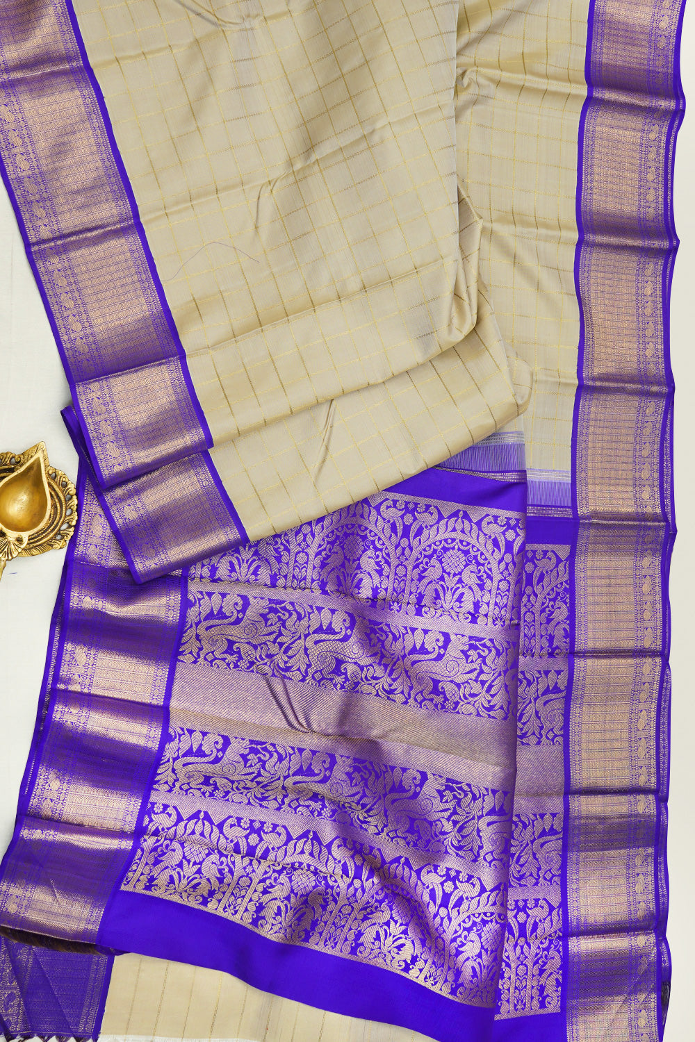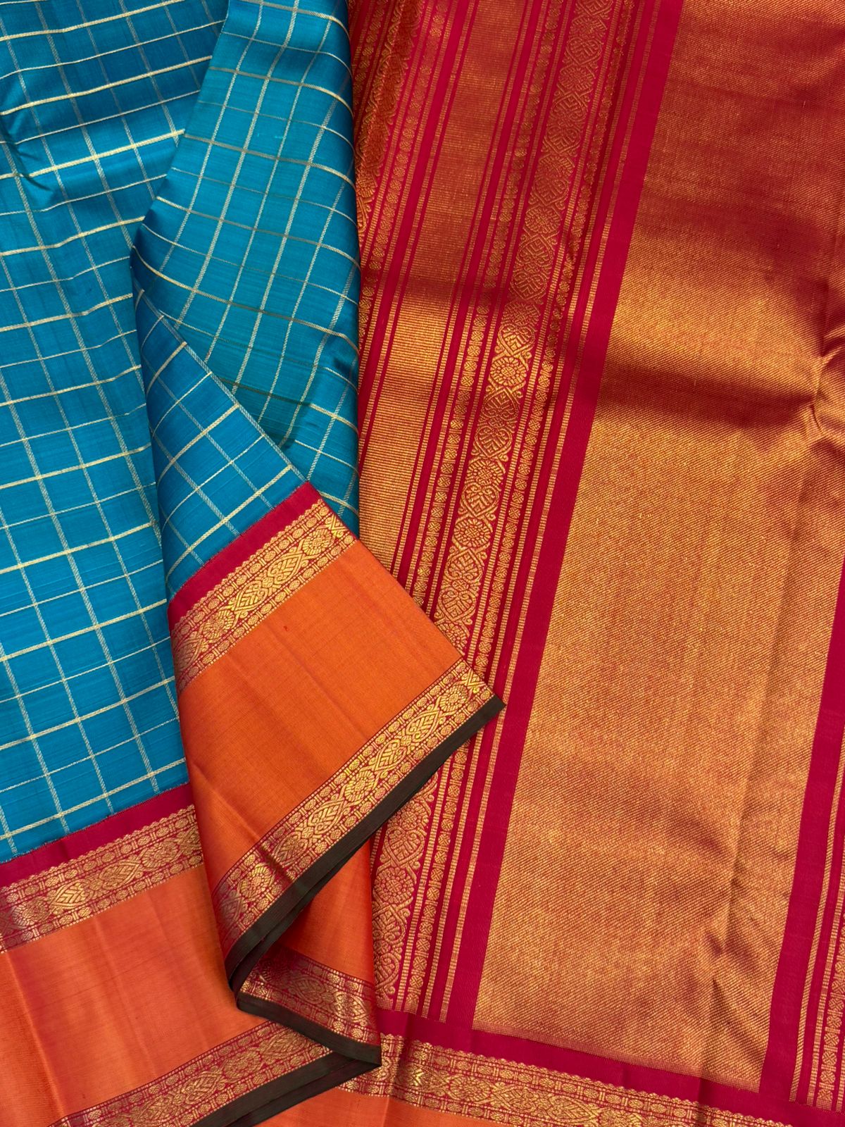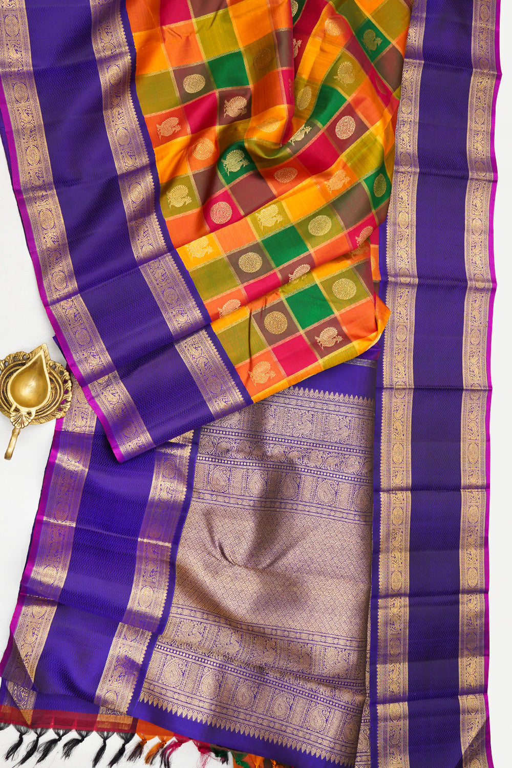 Paalum pazhamum checks kai korvai rettapet border/ kanjipuram silk
