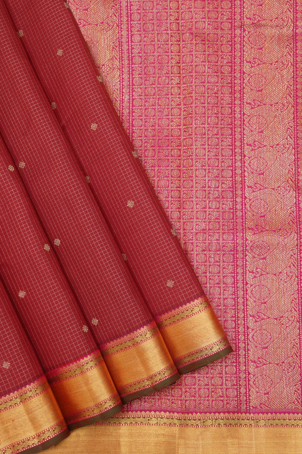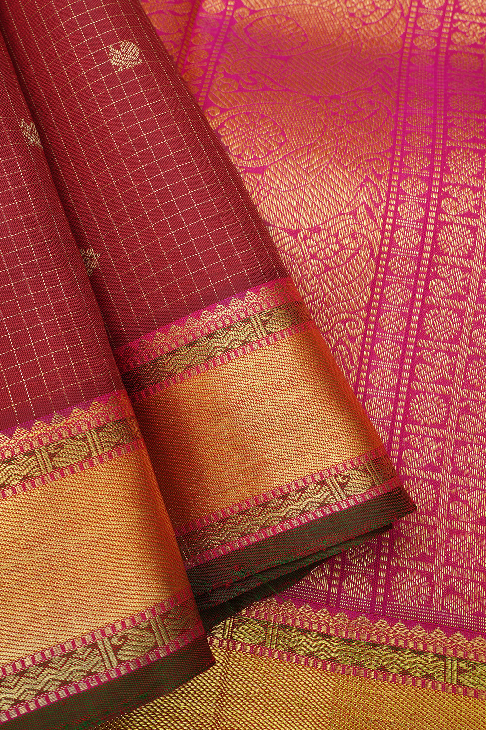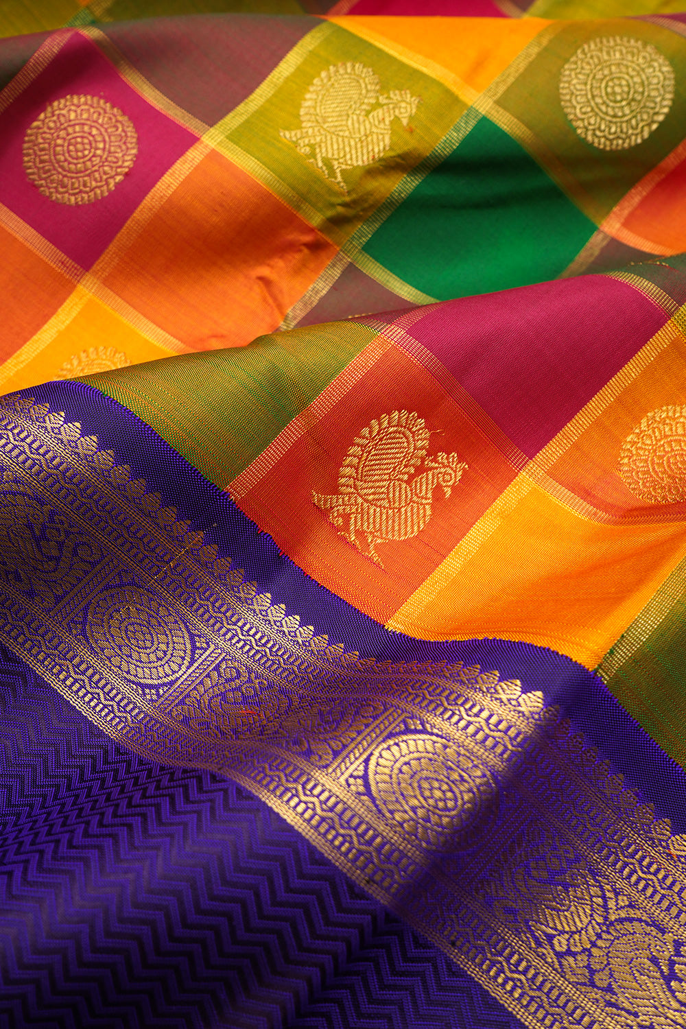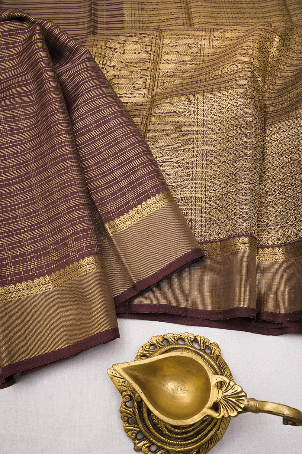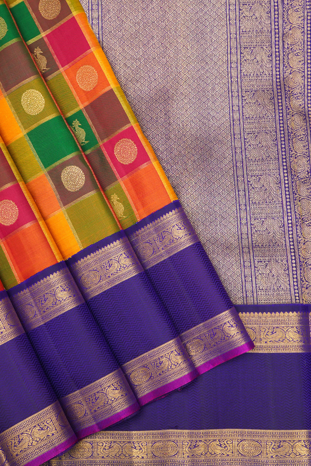 Paalum pazhamum checks kai korvai rettapet border/ kanjipuram silk
