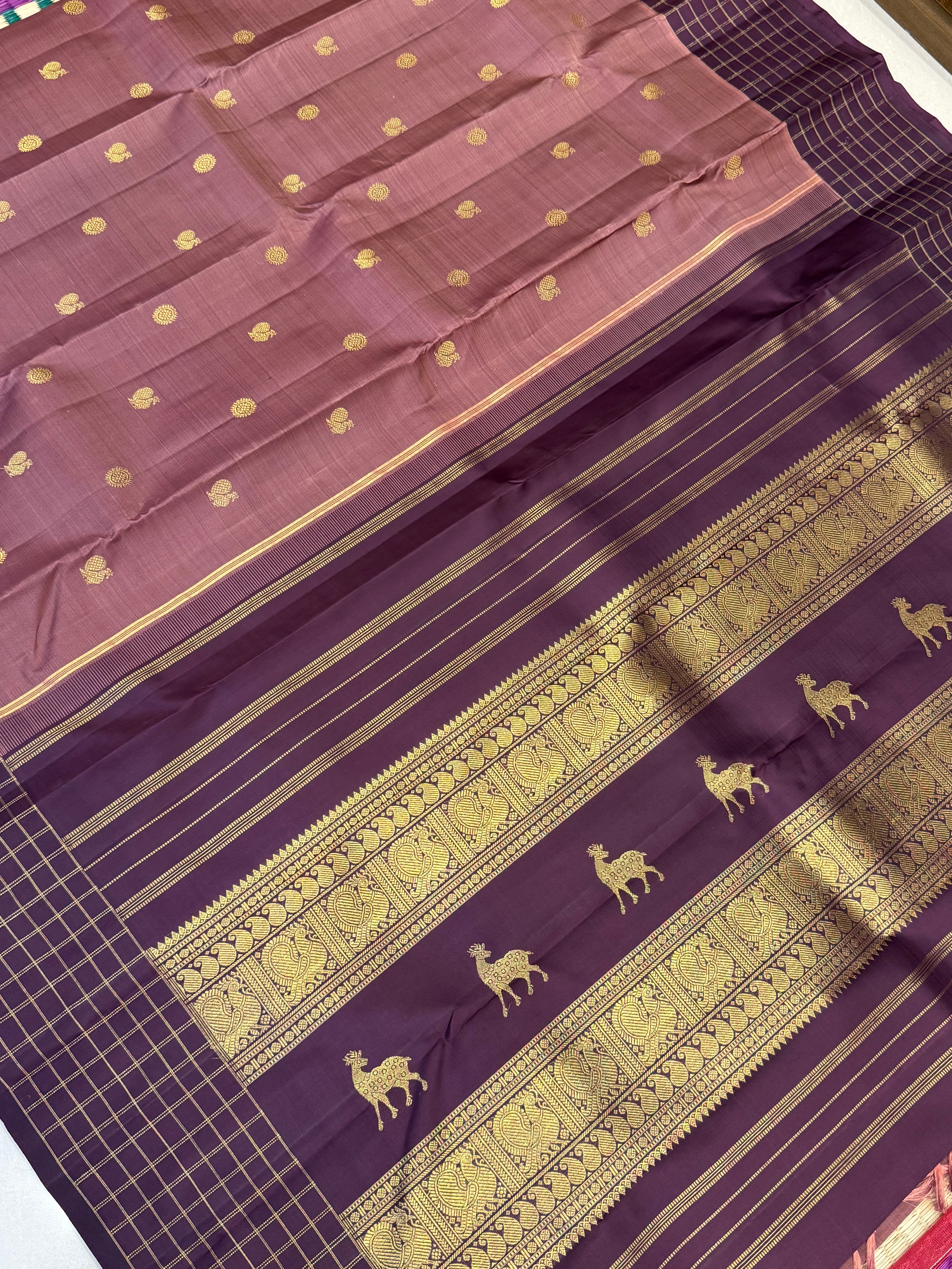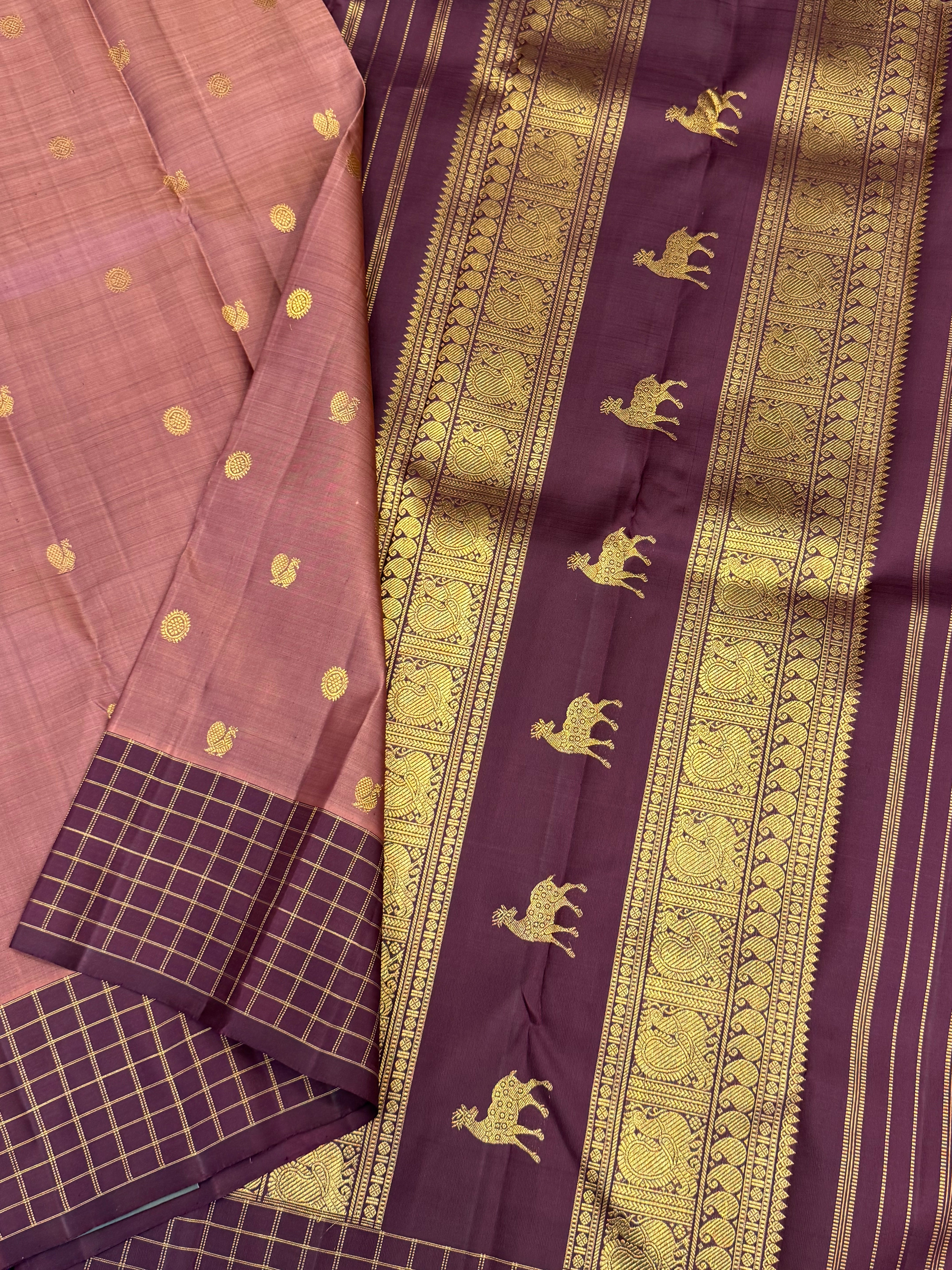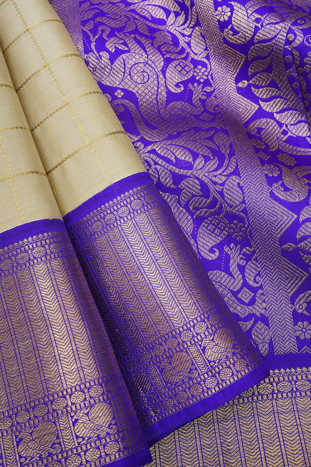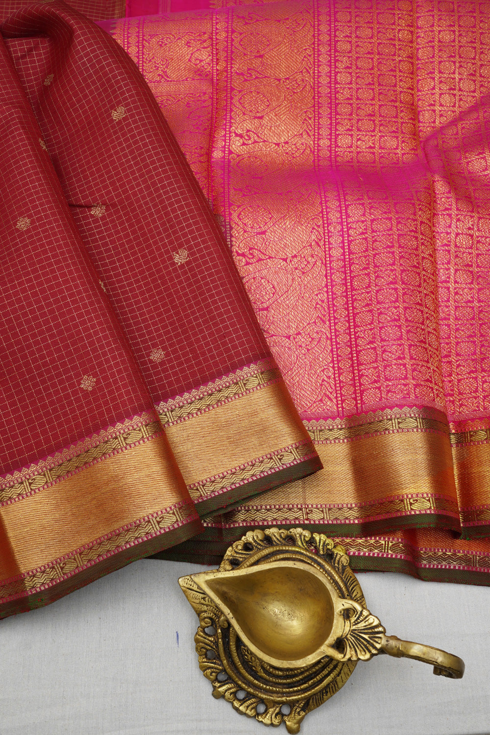 Paalum pazhamum checks kai korvai rettapet border/ kanjipuram silk
