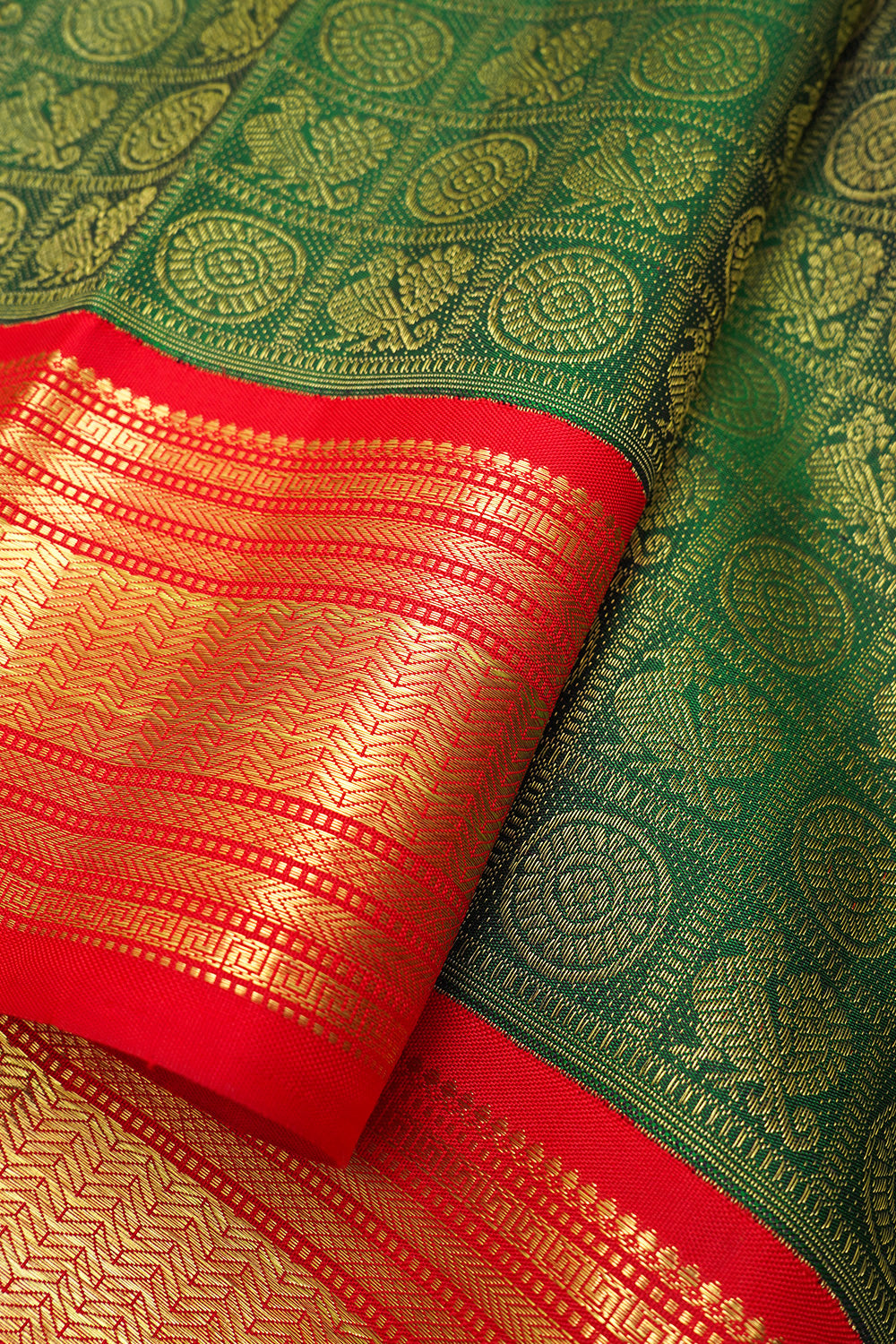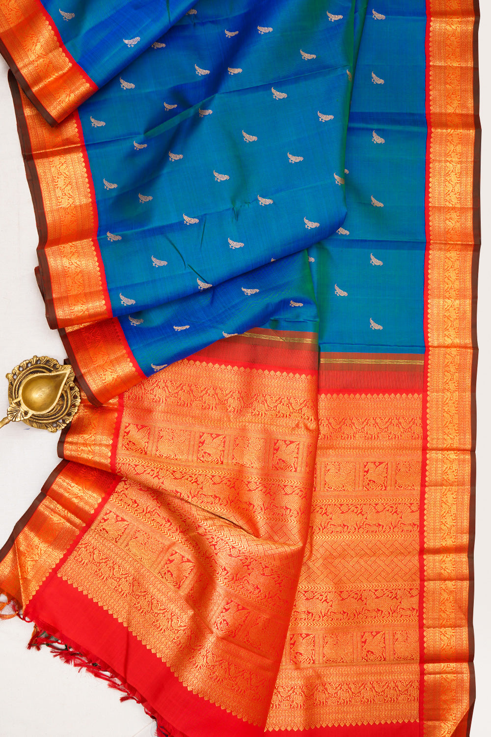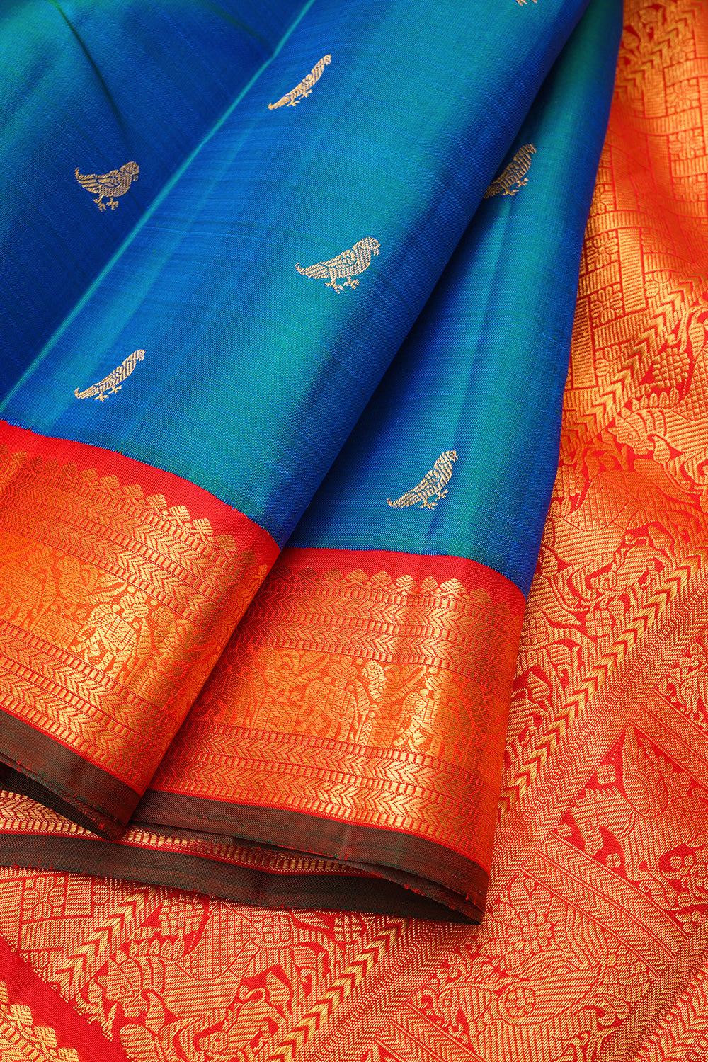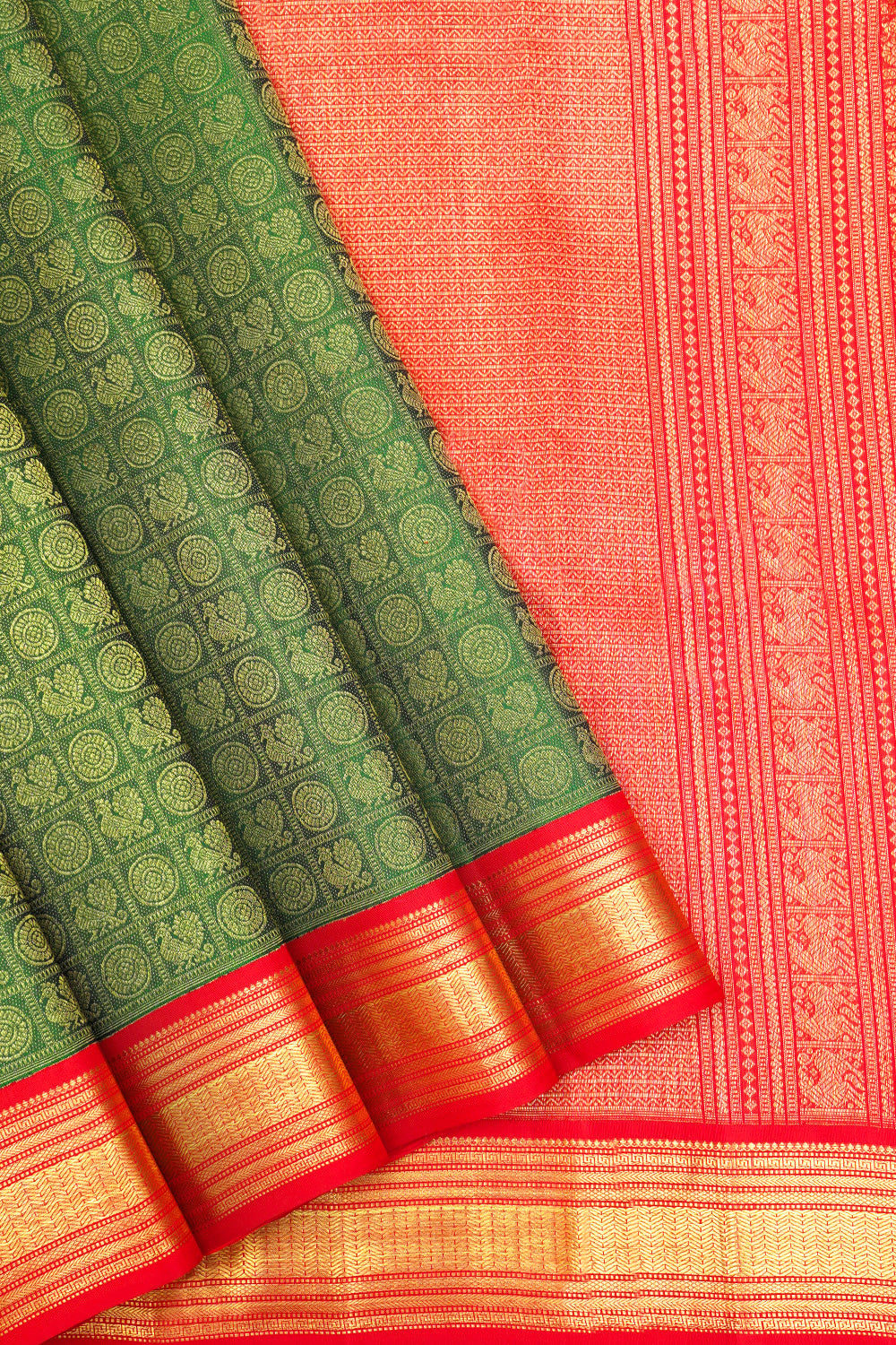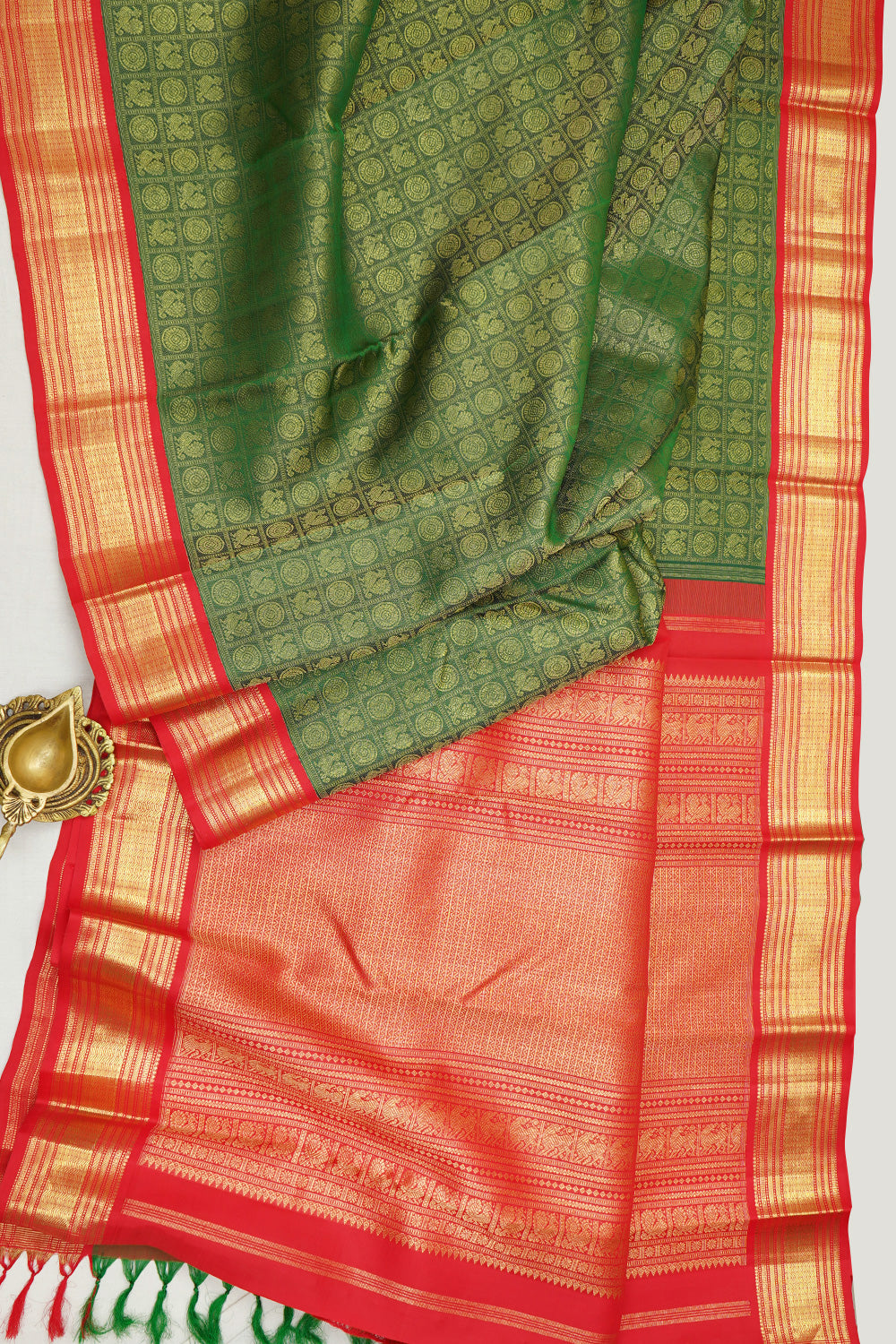 Mayilkazhuthu kili korvai and red kai korvai/ kanjipuram silk