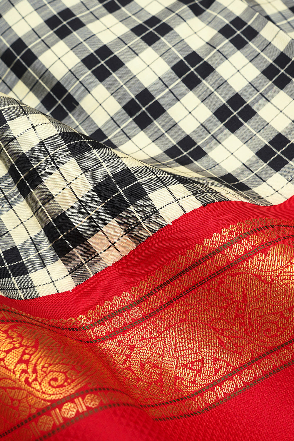 Black and white checks kai korvai rettapet border/ kanjipuram silk