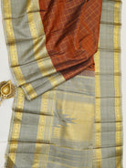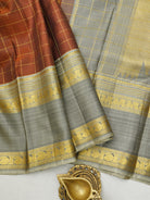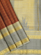 The body is rust Zari Kattam with grey retta pet border and dense Palla and the Zari is not pure