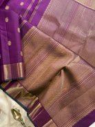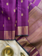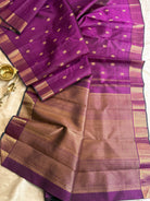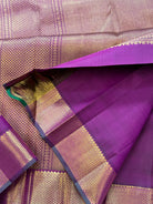 The body is aubergine color with irutalaipakshi Butta and the border is araimadam pet and dense pure Zari Palla and blouse