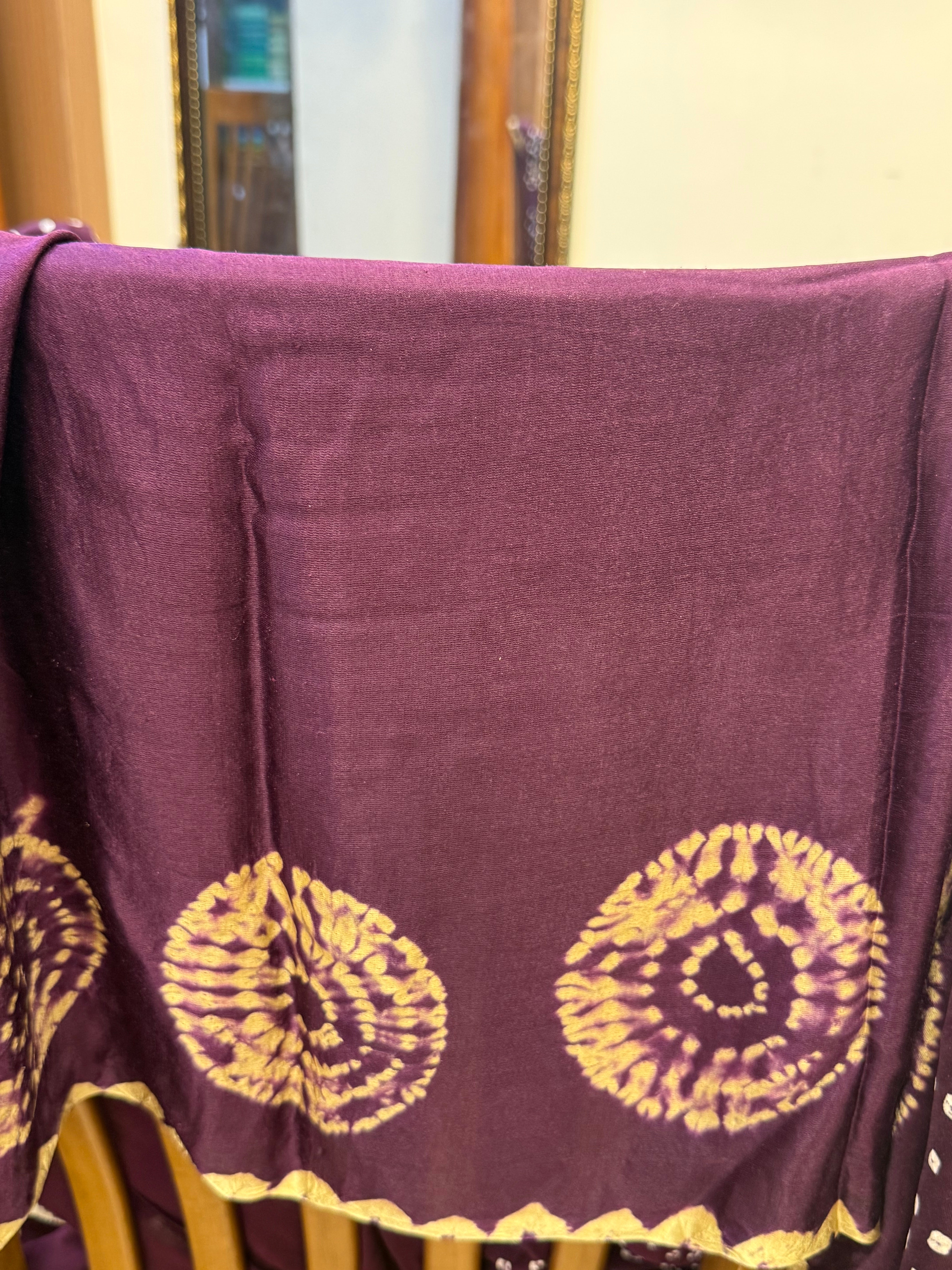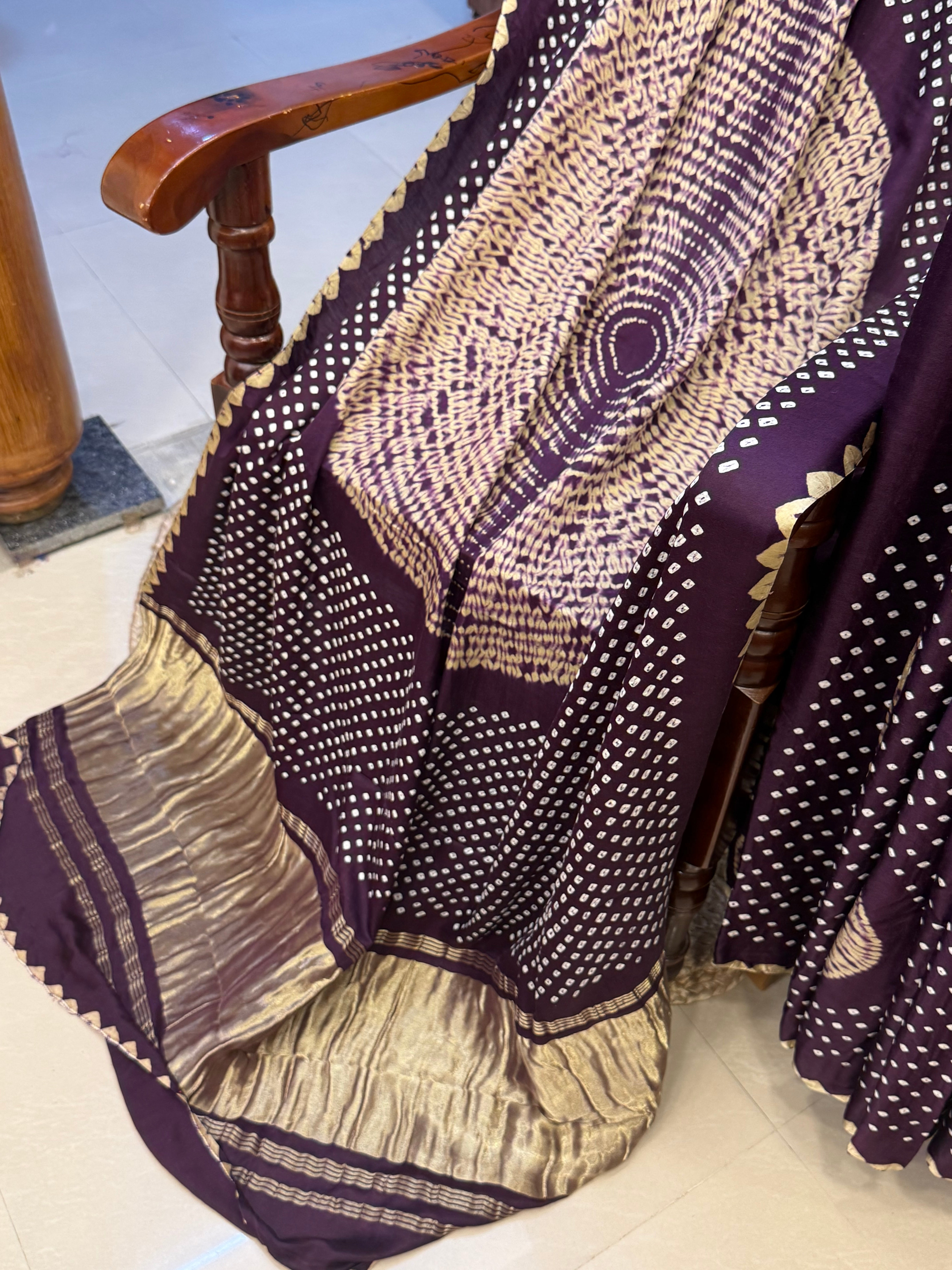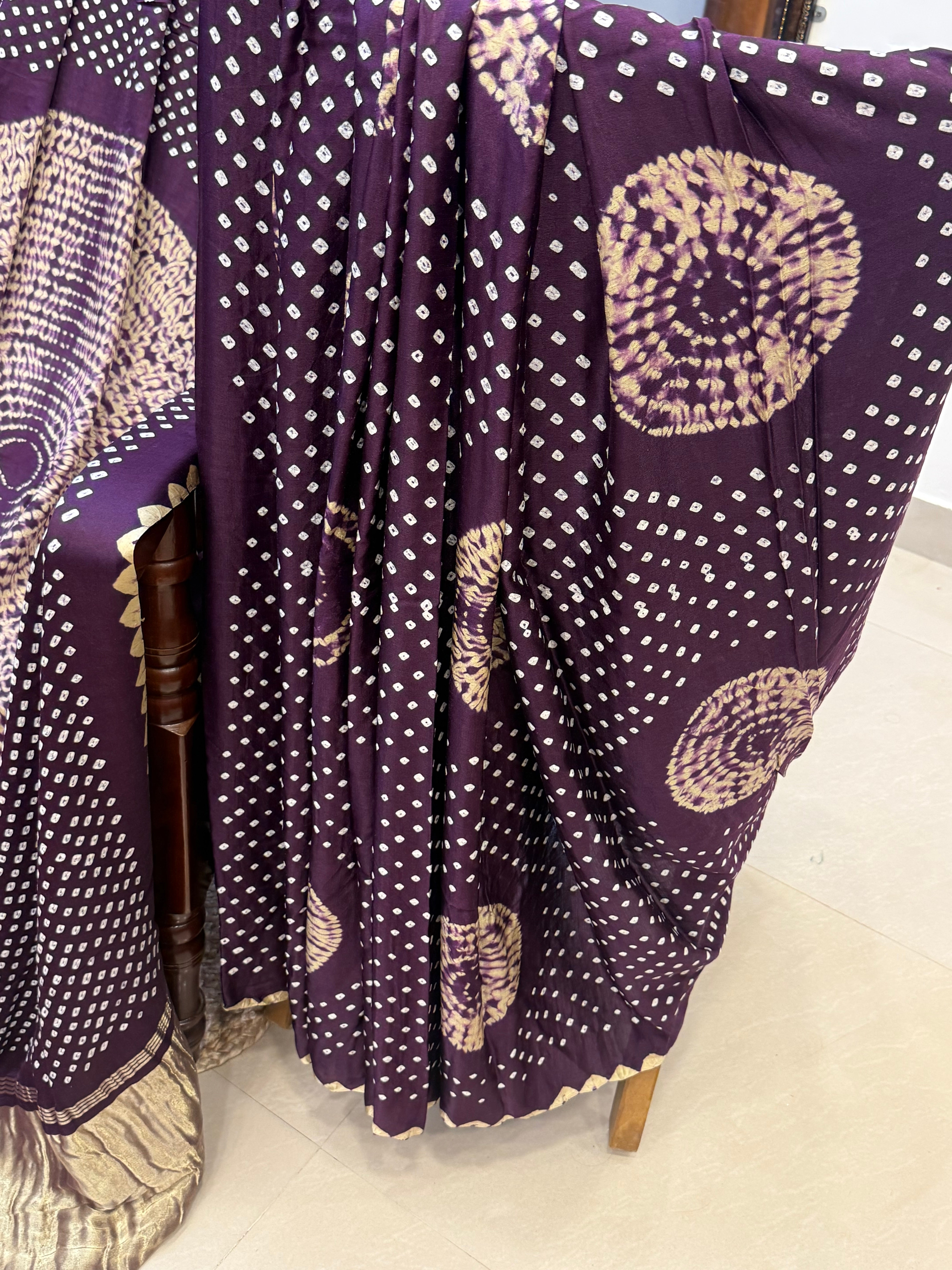 Deep purple and off white bandhini and Shibori gajji silk