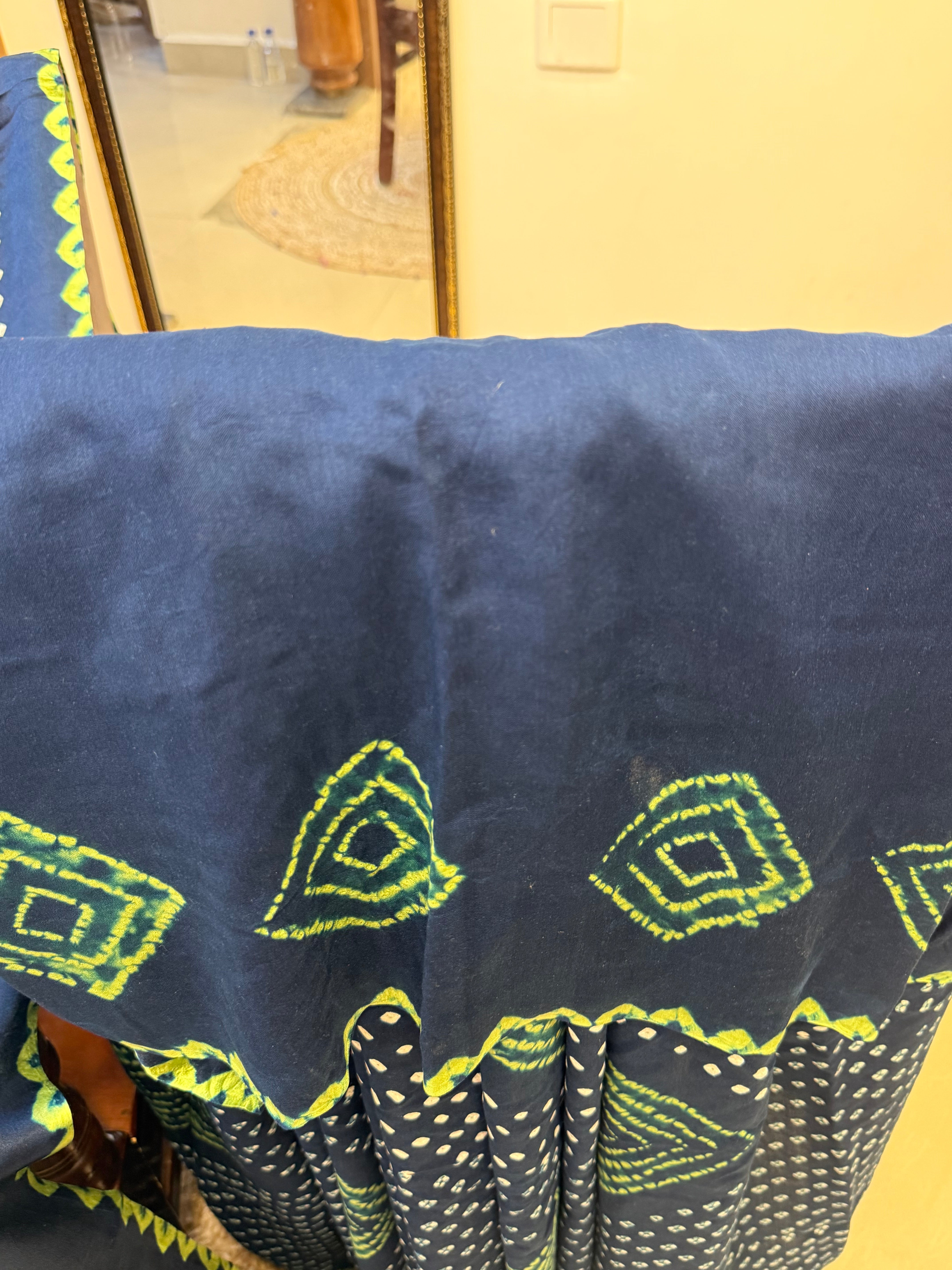 The saree is gajji silk roll pressed , attached blouse , the bandhini in the saree is hand knotted