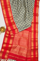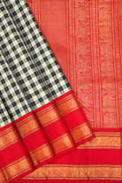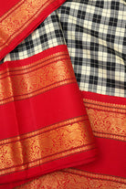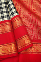 Black and white checks kai korvai rettapet border/ kanjipuram silk