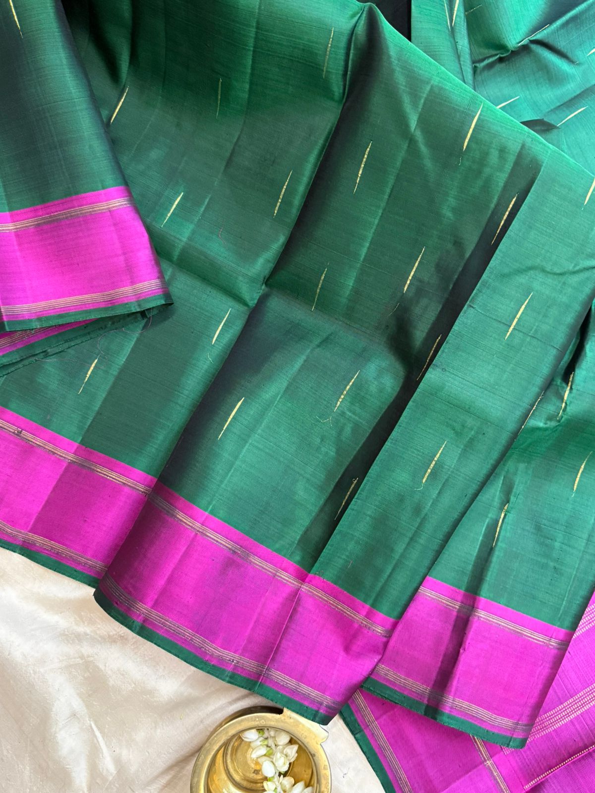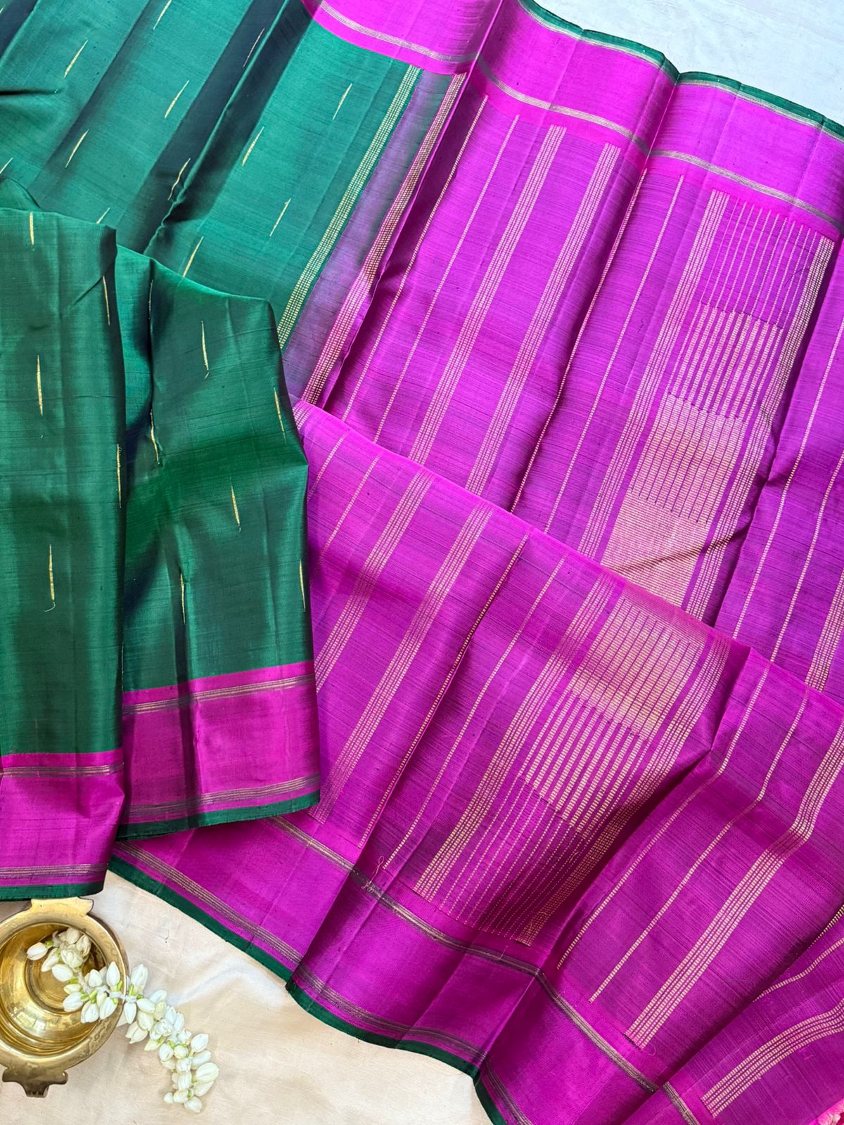 Bottle green malli moggu / kanjipuram silk - No blouse