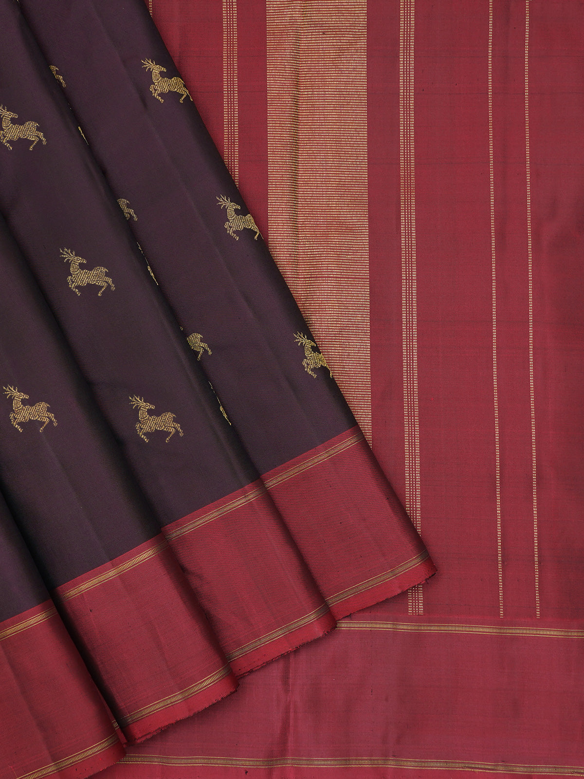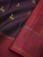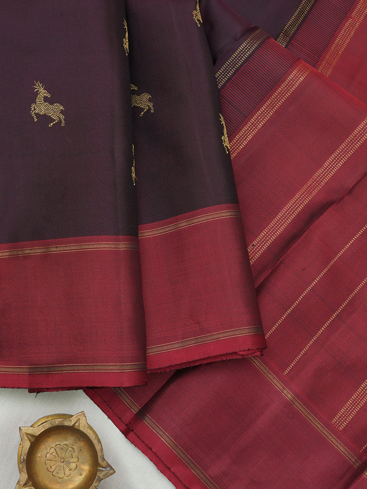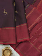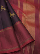 The body is deep brown with maan Butta and araku border and Zari rekku Palla and blouse