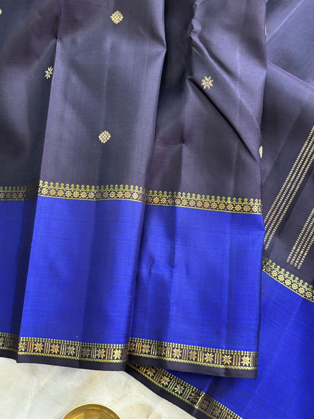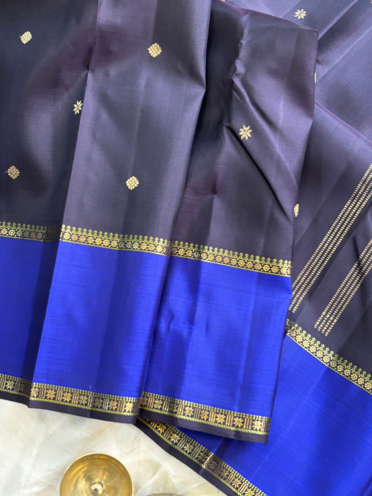 Deep nagapazham and blue rettapet border/ kanjipuram silk
