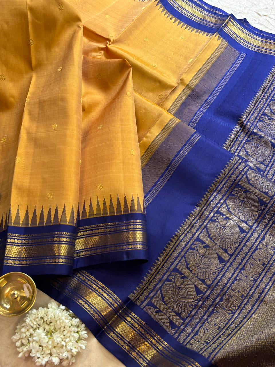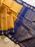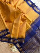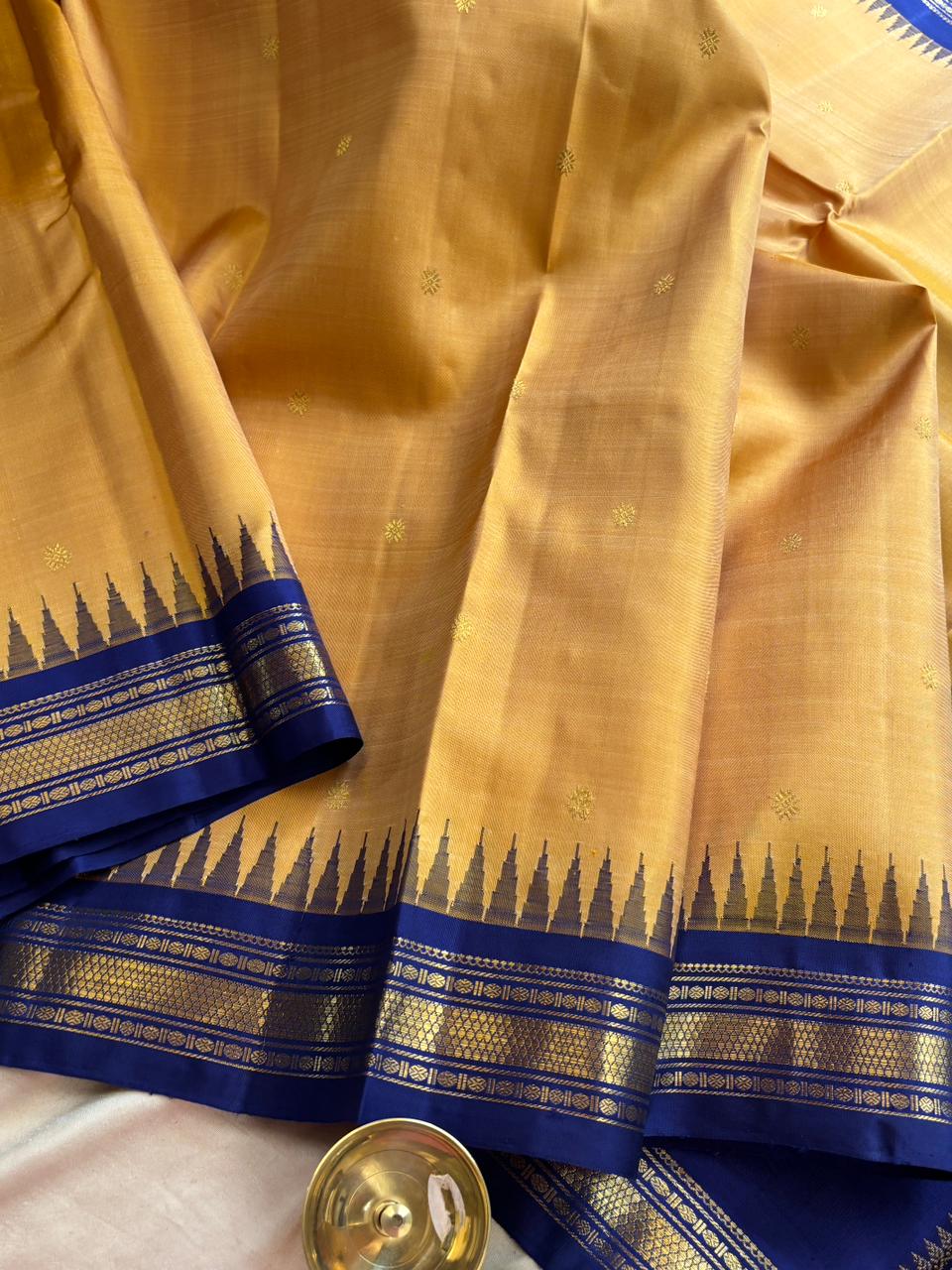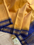 Golden mustard and blue kai korvai/ kanjipuram silk