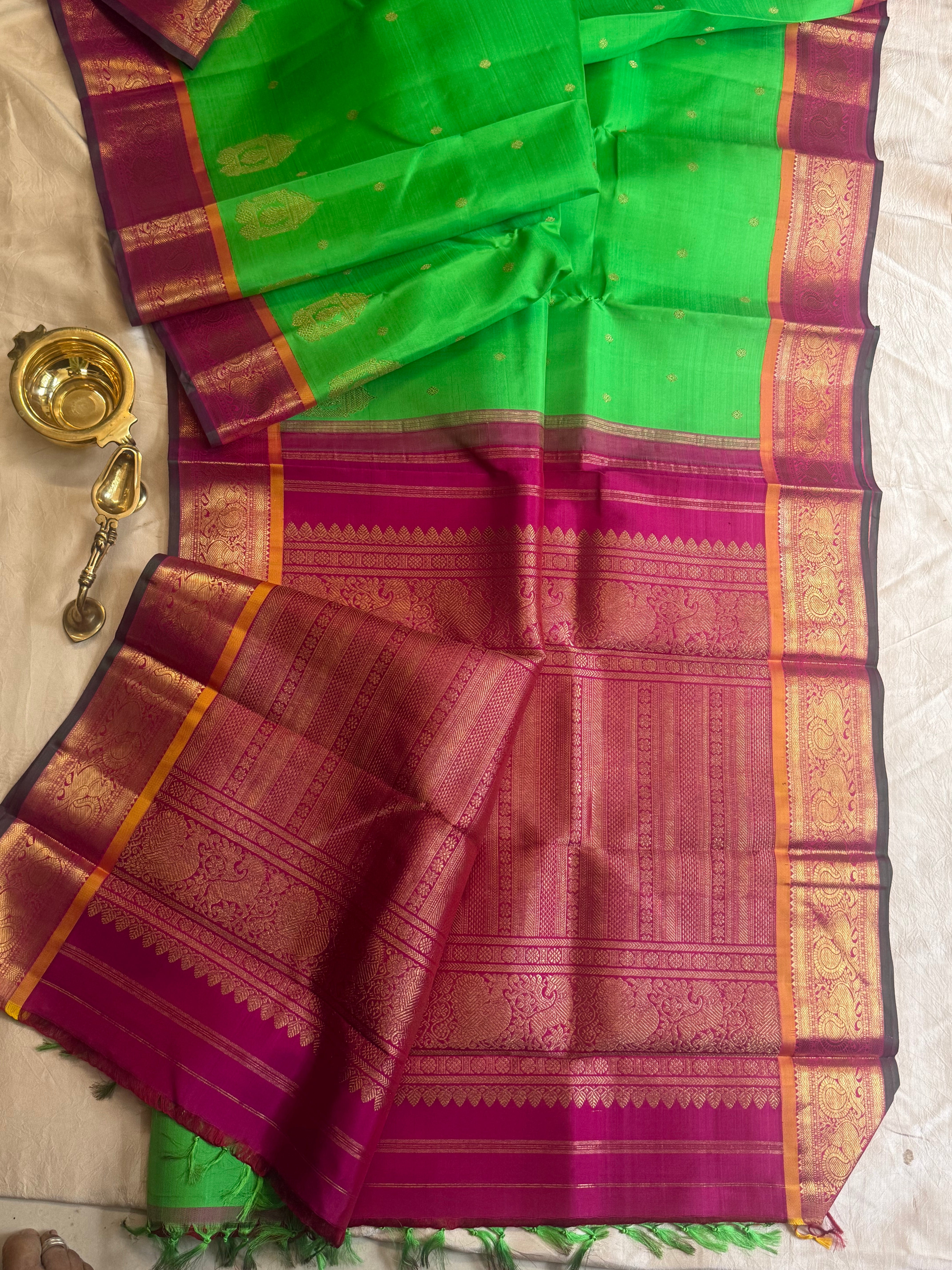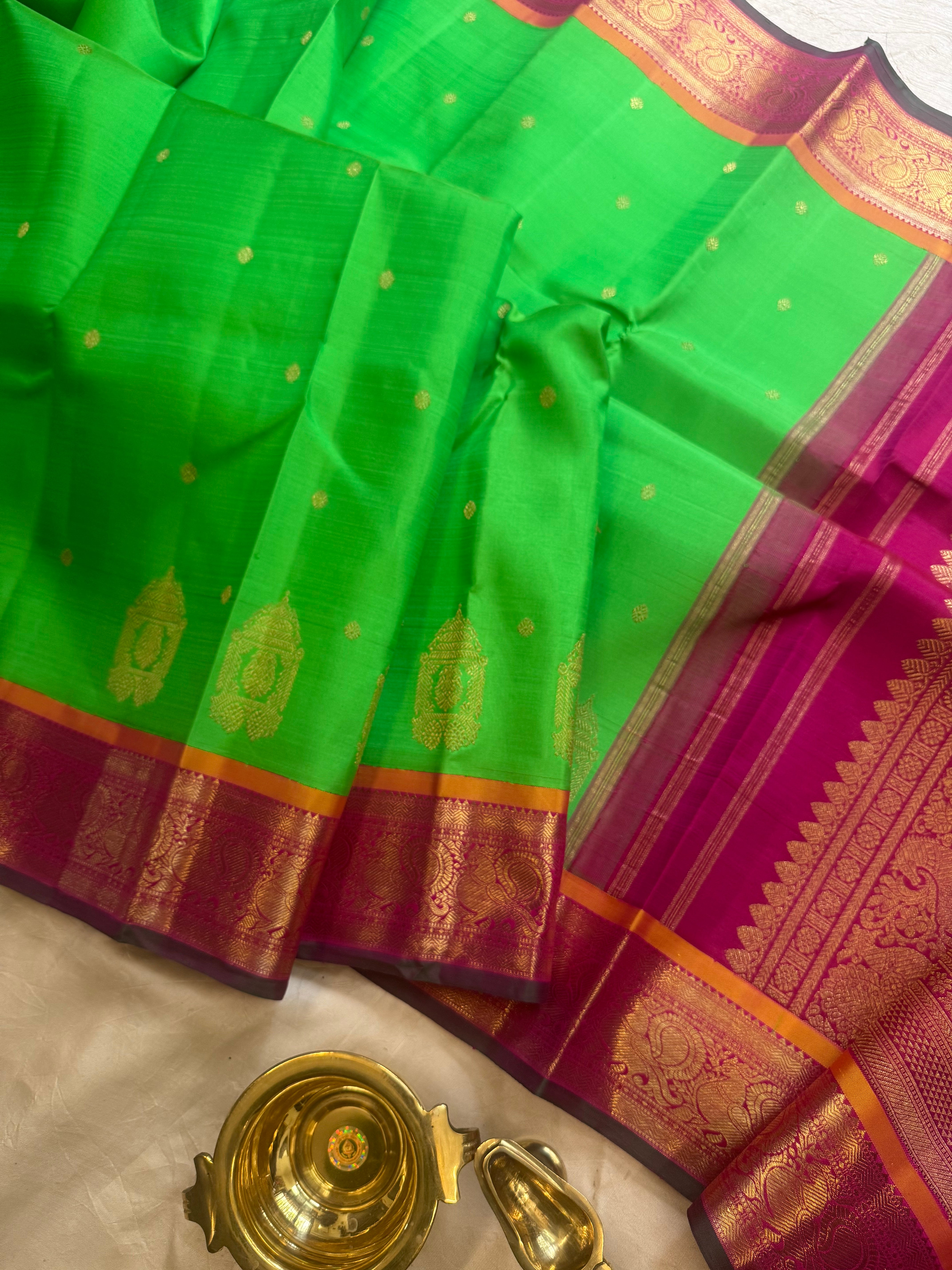 Parrot green Kai Korvai : kanjipuram silk