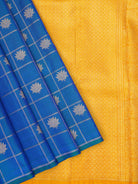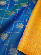 The body is mayilkazhuthu colour with body Zari Kattam with lotus Butta and the Palla is yellow dense pure Zari Palla and blouse
