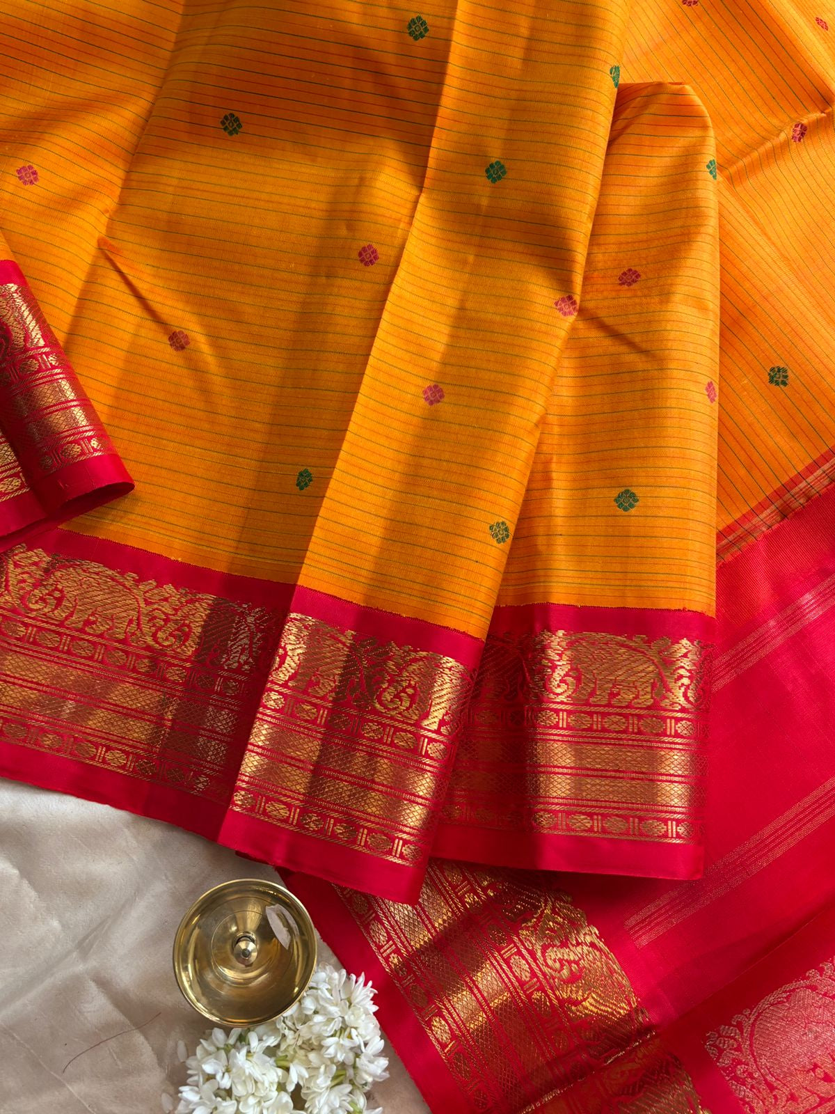 Mambazham manjal and chilli red kai korvai/ kanjipuram silk