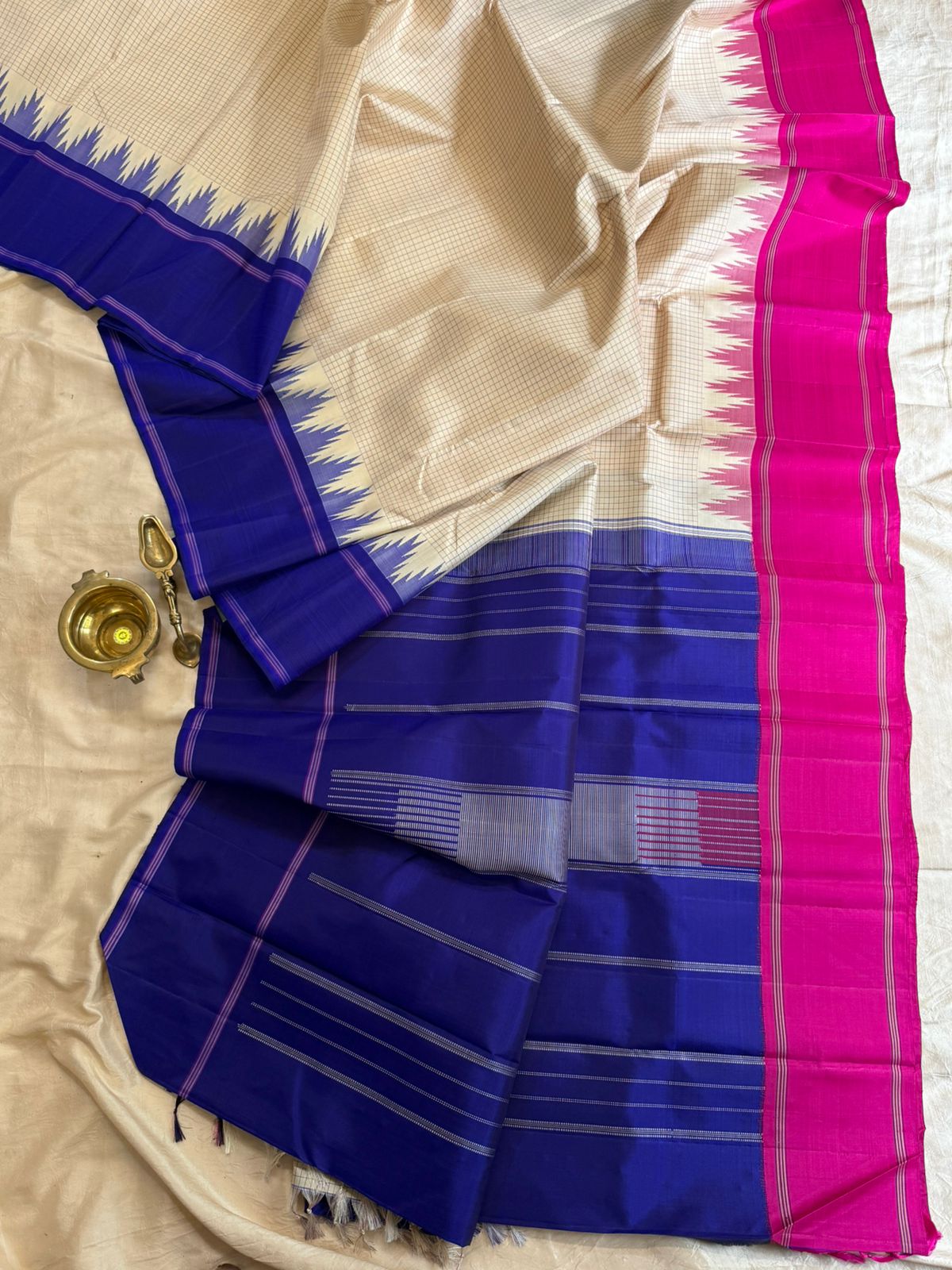 Offwhite checks Ganga Jamuna border/ Arani silk