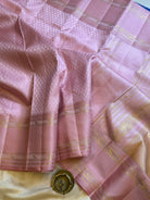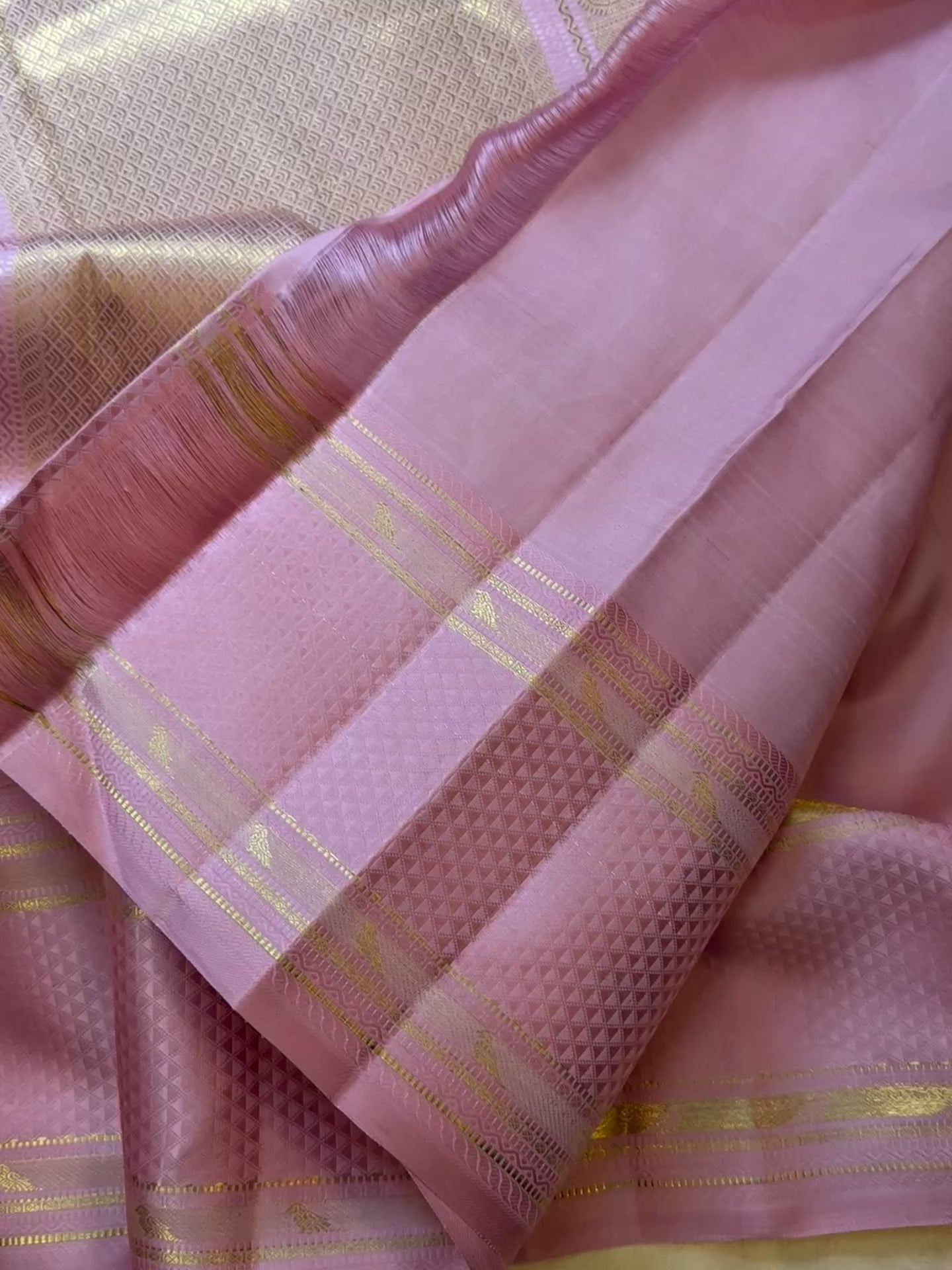 The saree is pastel pink with Kathir Butta all over jacquard , the border has parrot Butta and the Palla is rich dense pure Zari Palla and blouse