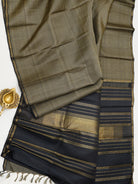 The saree is old style kaaki black podi Kattam and Zari rekku Palla and blouse